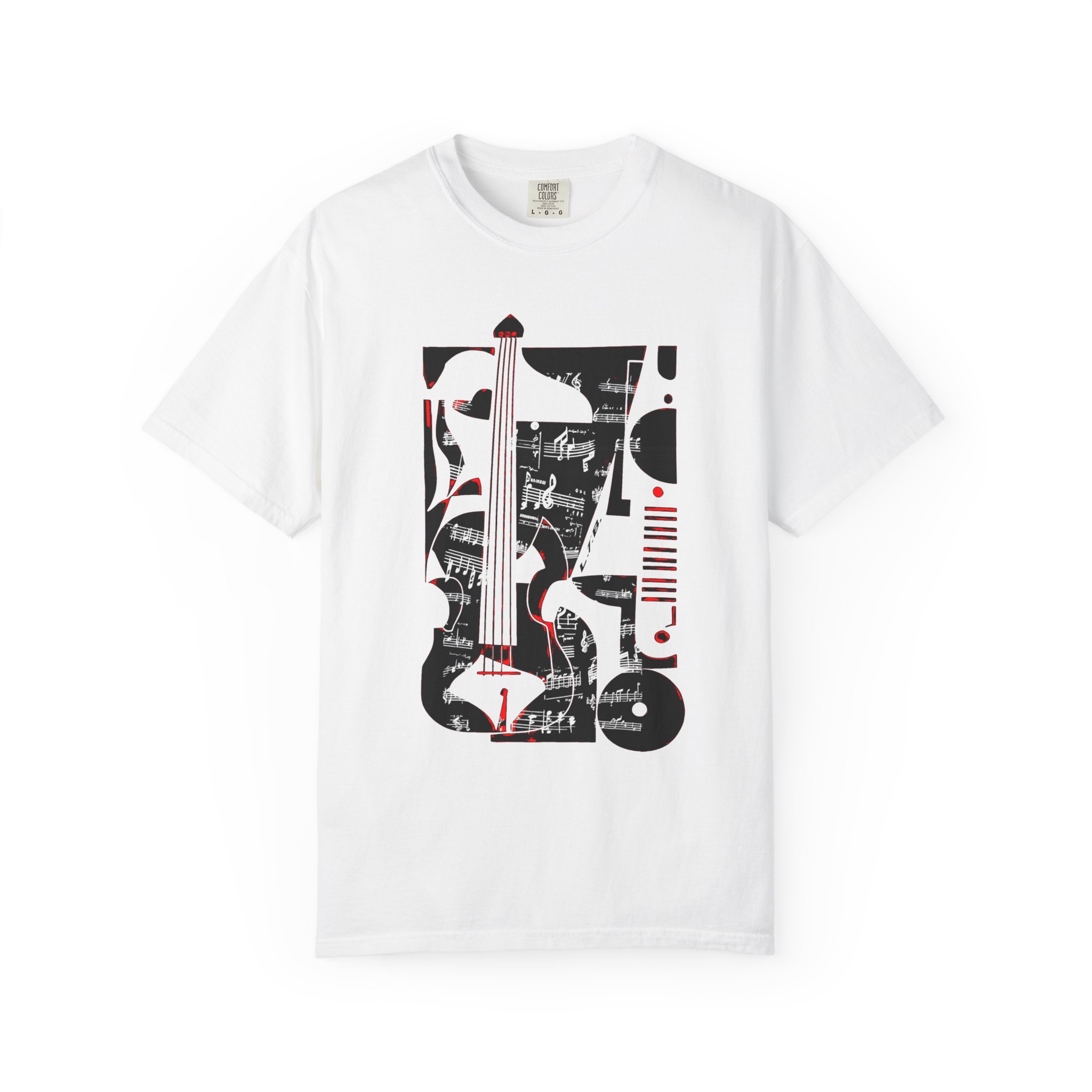 Express your love for music with this bold abstract bass T-shirt from Lil Tokyo Beat. Featuring a stylized upright bass surrounded by flowing shapes and layered musical notes, this design blends jazz energy with modern graphic art. The high-contrast black, white, and red palette creates a striking, gallery-inspired look that feels both timeless and contemporary. Perfect for bass players, musicians, music teachers, and fans of creative streetwear, this tee brings rhythm, movement, and artistic expression into everyday style. Whether worn to rehearsals, concerts, jam sessions, or as a statement piece, this shirt reflects Lil Tokyo Beat’s K.A.T. identity — Kool, Artful, Timeless — and represents a new voice in tee culture through instrument-inspired wearable art.