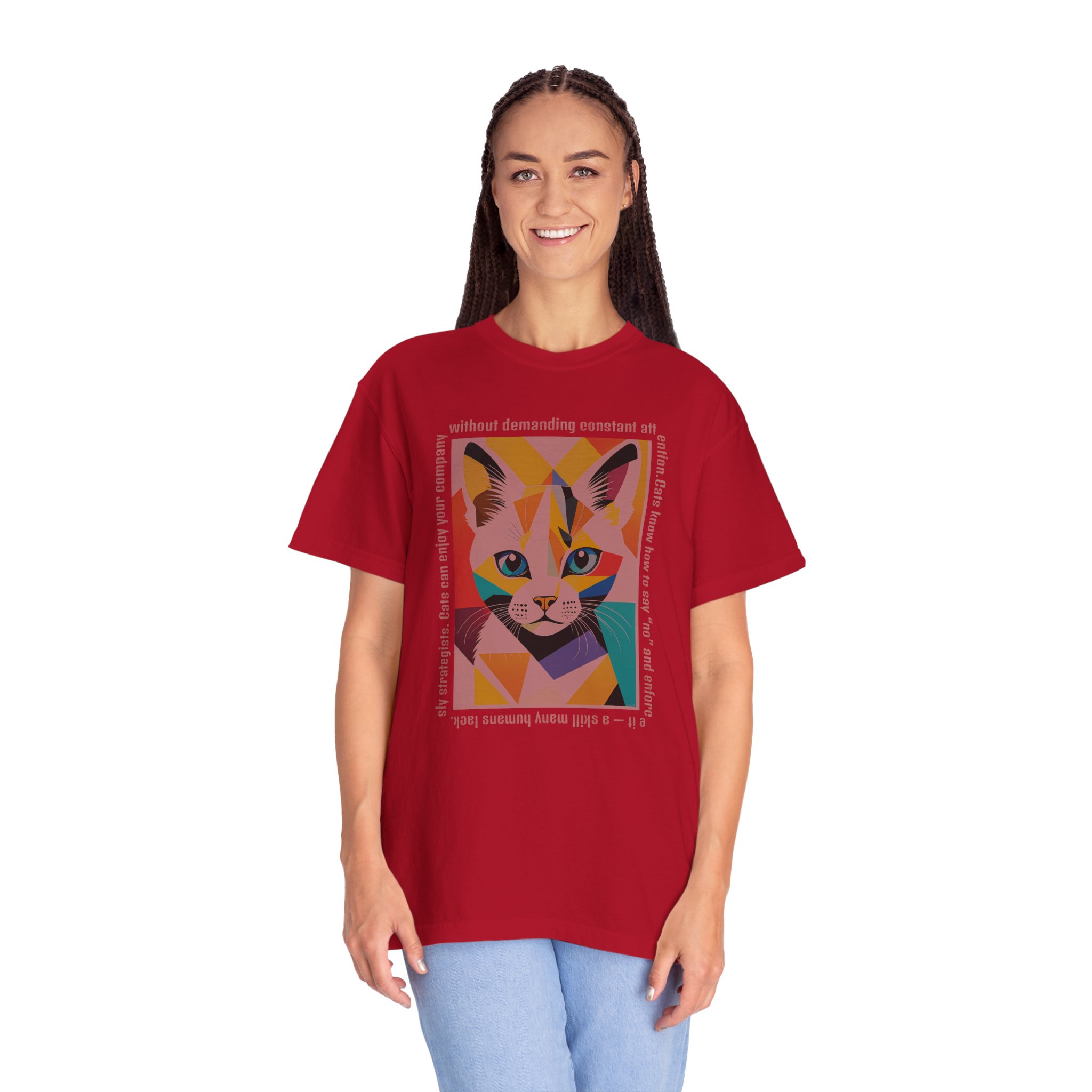 This abstract cat T-shirt features a “Emotional Systems Rebooted” graphic design, giving off a fun and quirky vibe. Perfect for cat lovers or those who appreciate unique graphic tees. Ideal for casual wear or a statement piece for semi-formal settings. Relevant for holidays, birthdays, and everyday wear. Product features – Available in sizes S to 4XL for the perfect fit – Double-needle stitching for durability – Garment-dyed fabric for a soft texture – Made with 100% ring-spun US cotton for comfort – Pre-shrunk fabric for consistent fit Care instructions – Machine wash: cold (max 30C or 90F) – Do not bleach – Tumble dry: low heat – Iron, steam or dry: low heat – Do not dryclean