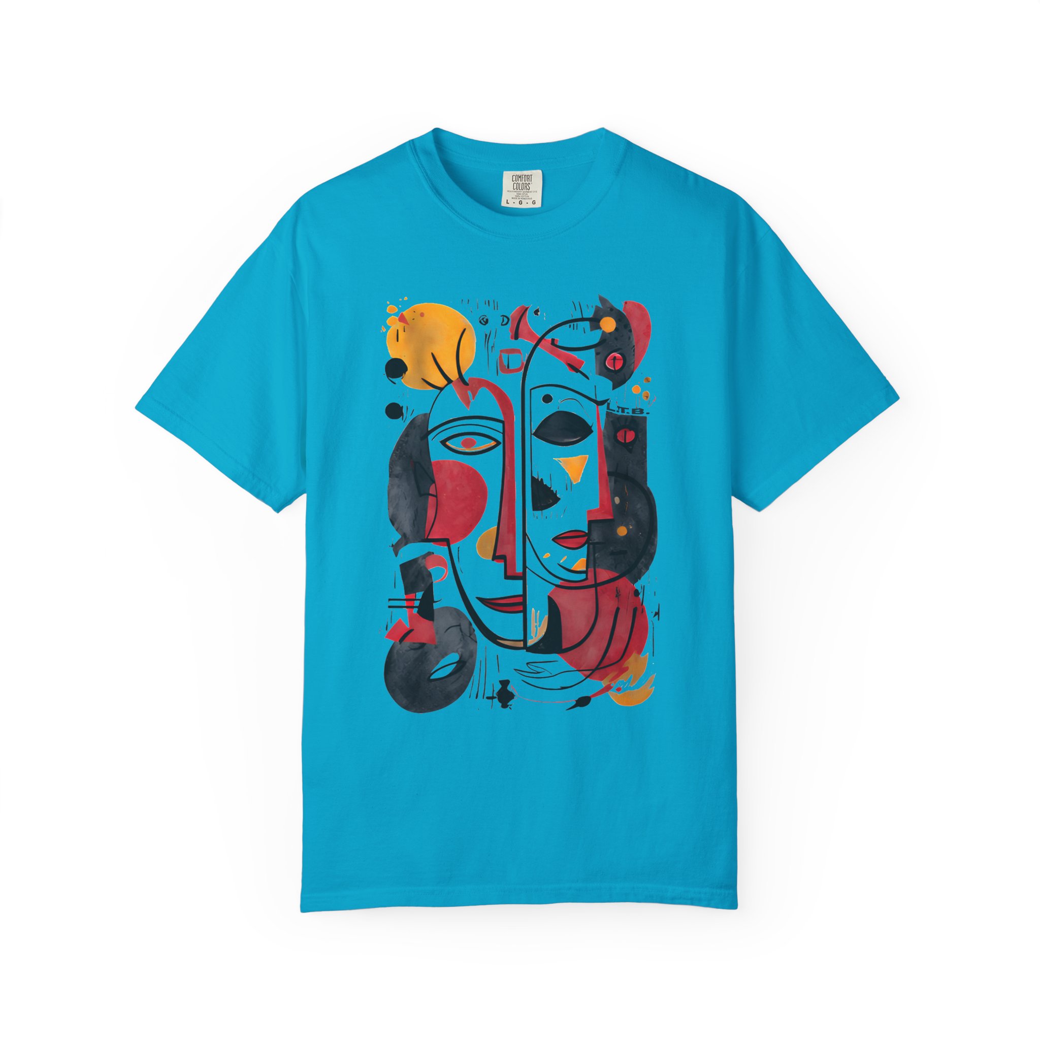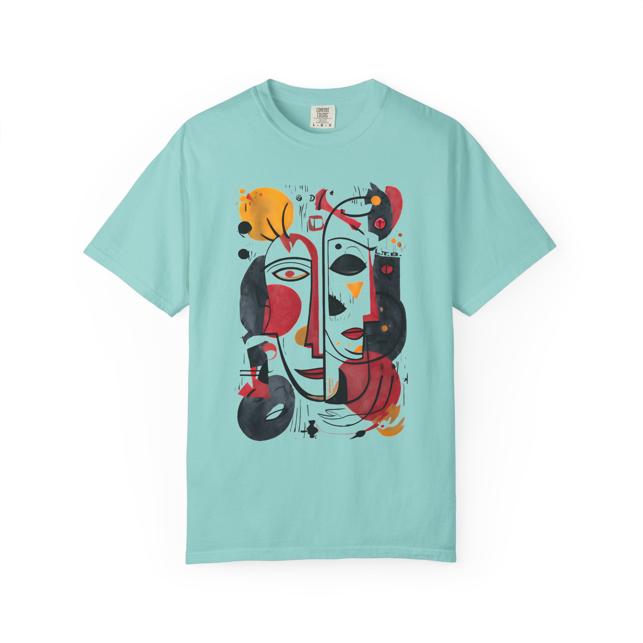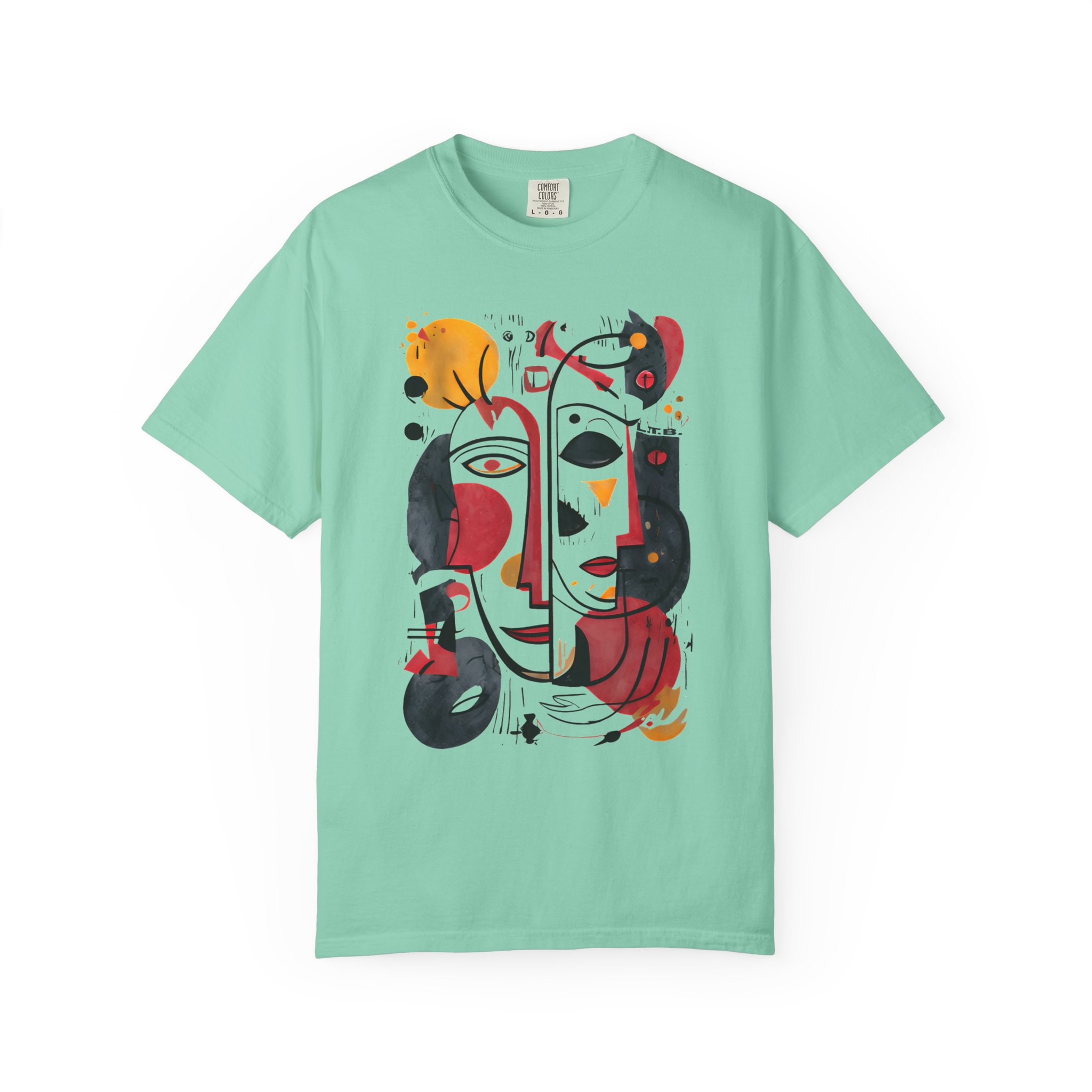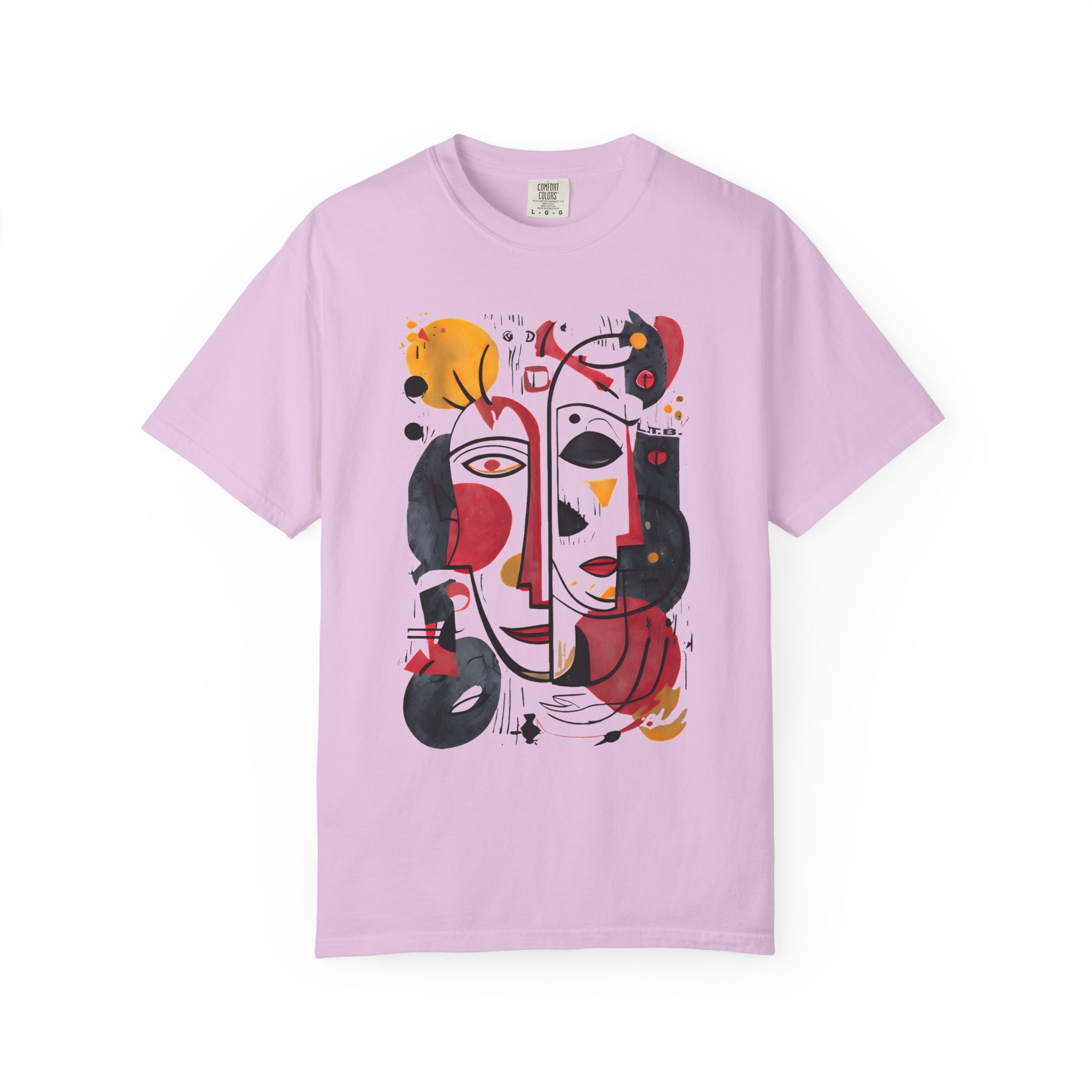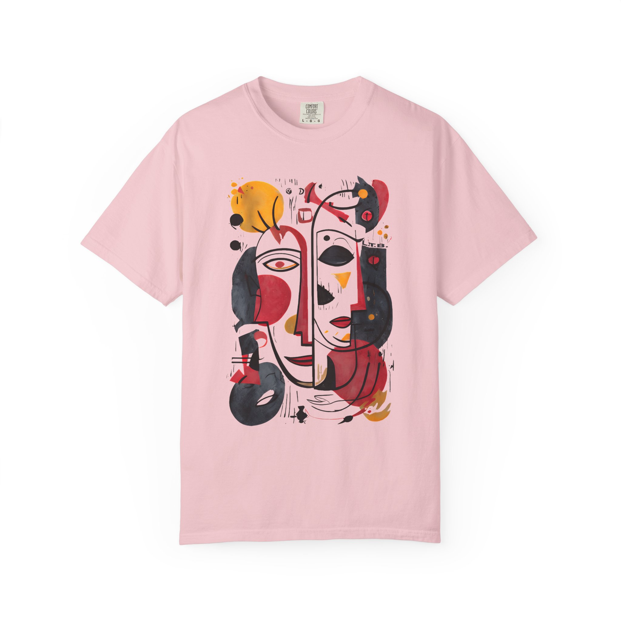 This heavyweight garment-dyed tee brings art-forward style to everyday wear. The oversized abstract face print—rendered in warm reds, deep blacks, and golden ochres—feels like a small, wearable painting. The soft, garment-dyed cotton drapes with a relaxed fit and a lived-in hand, so the shirt looks and feels comfortable from the first wear. It layers easily under a denim jacket or stands alone as the focal point of a minimalist outfit. Wear it to gallery openings, coffee dates, or weekend city wanderings when you want clothing that speaks with personality and subtle texture. The thoughtful construction—double-needle seams, tubular knit with no side seams, and a sewn-in label—keeps the silhouette clean and durable, while the pre-shrunk ring-spun cotton and broad size range make finding the right fit straightforward.