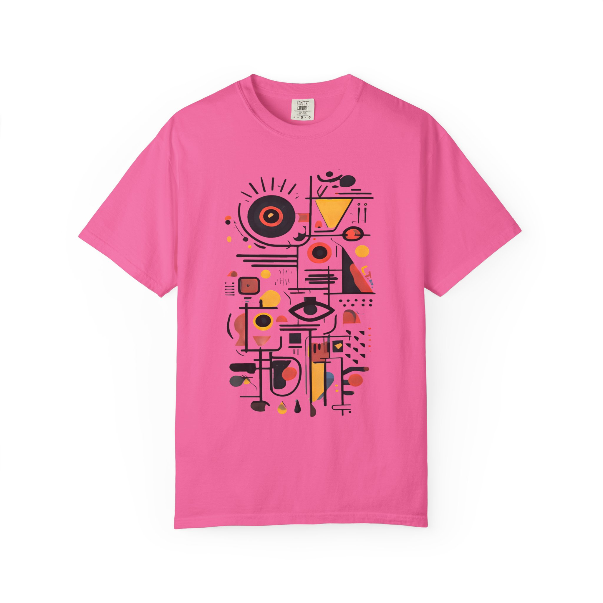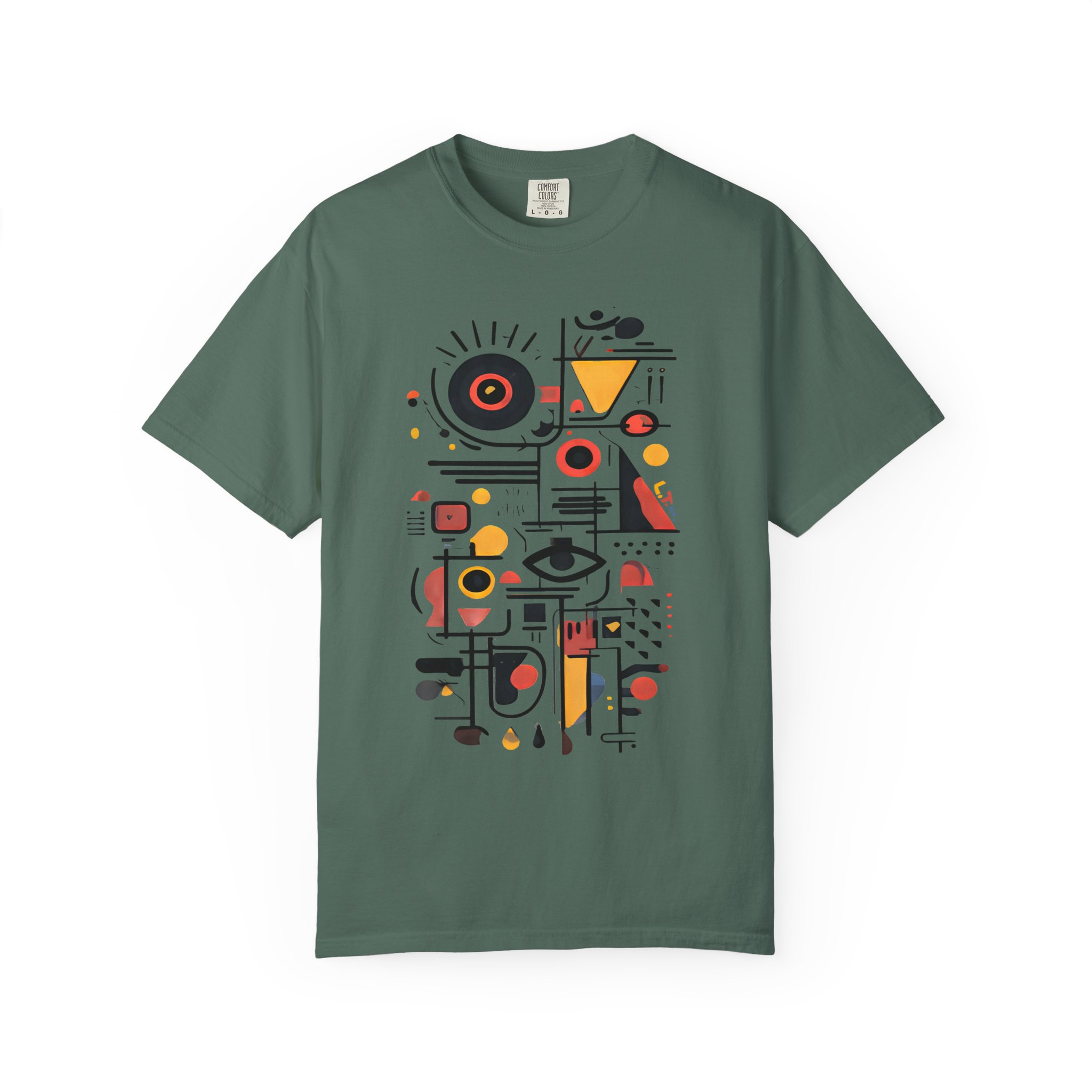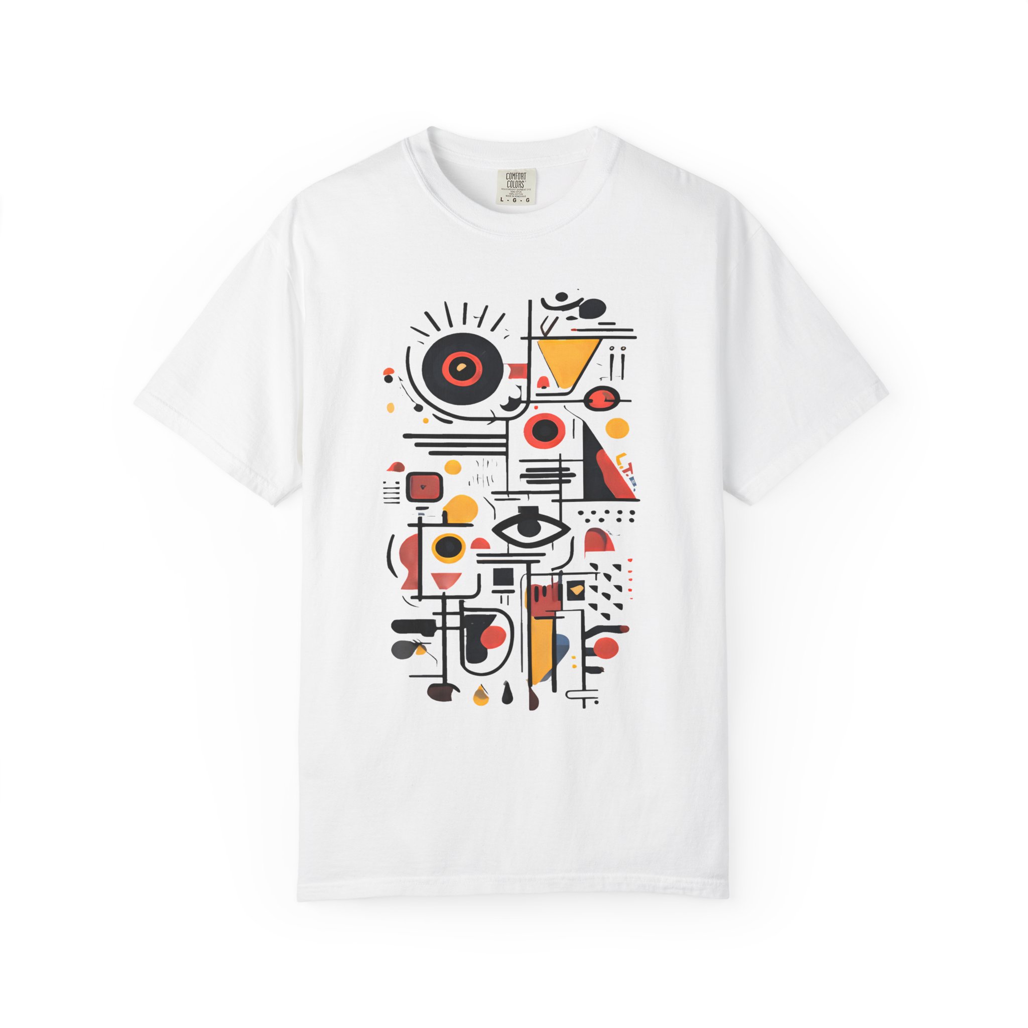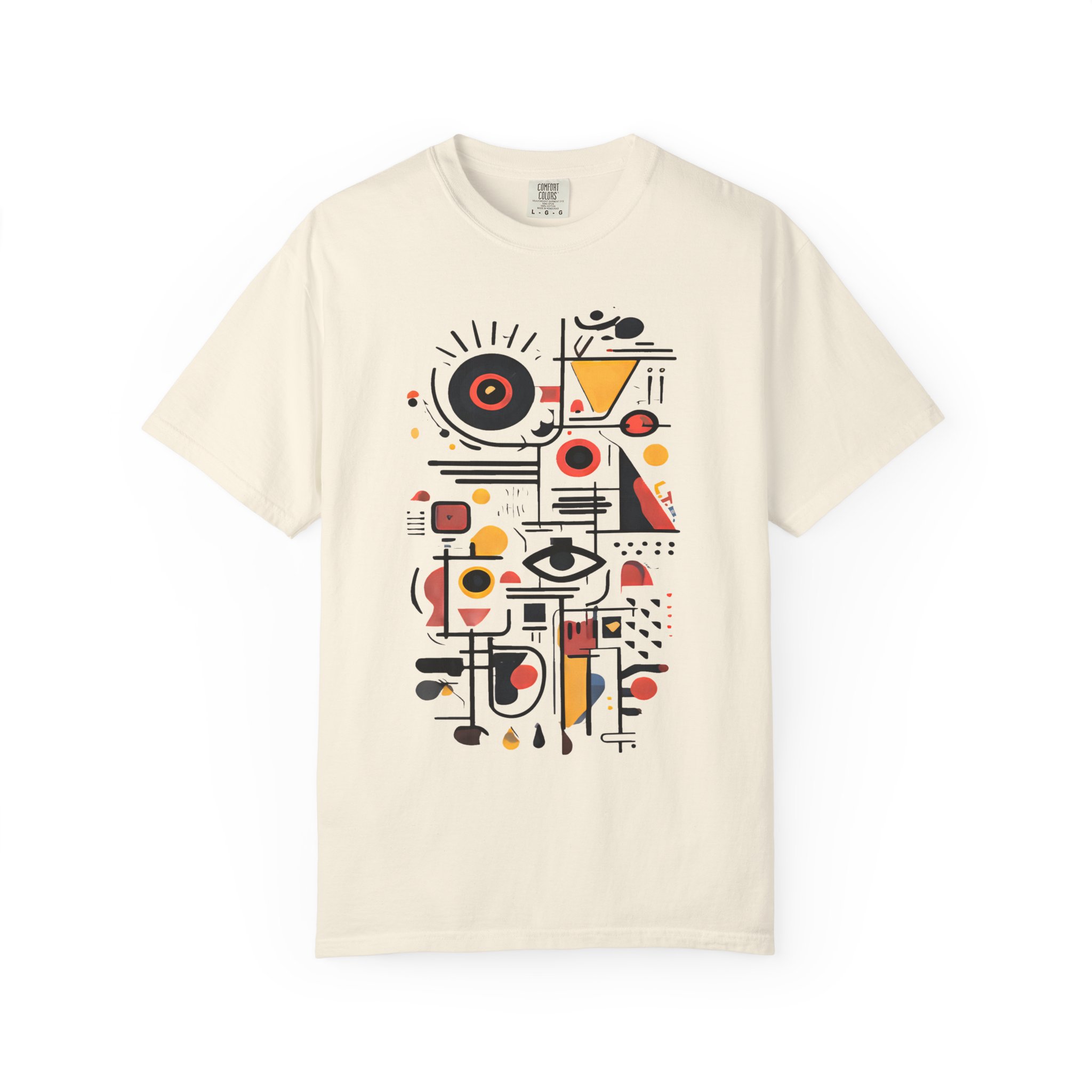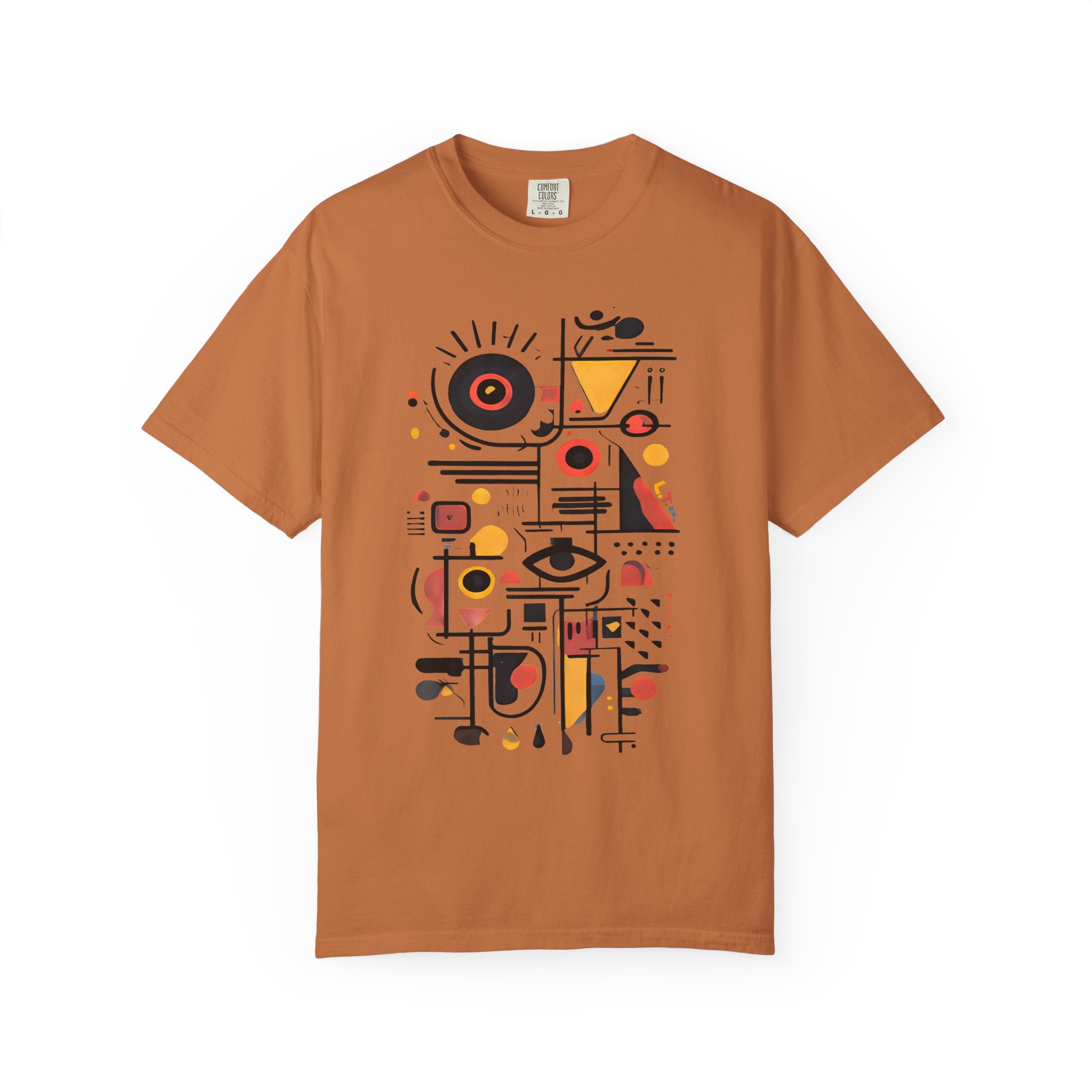 This heavyweight garment-dyed tee wears like a lived-in favorite. The relaxed fit and soft, post-dye texture invite slow mornings, gallery strolls, and easy conversations. The front features a bold, abstract composition—geometrics, line work, and pops of warm color—that reads like modern art you can move in. It pairs with worn denim, a city jacket, or curated loungewear, slipping naturally into days when style is quiet but unmistakable. Thoughtful details—double-needle seams, tubular knit without side seams, and a sewn-in label—mean the shirt looks clean and holds up through washes and weekends. Available in a wide range of colors and sizes, it’s for people who appreciate craft-forward design and the comfort of quality cotton.