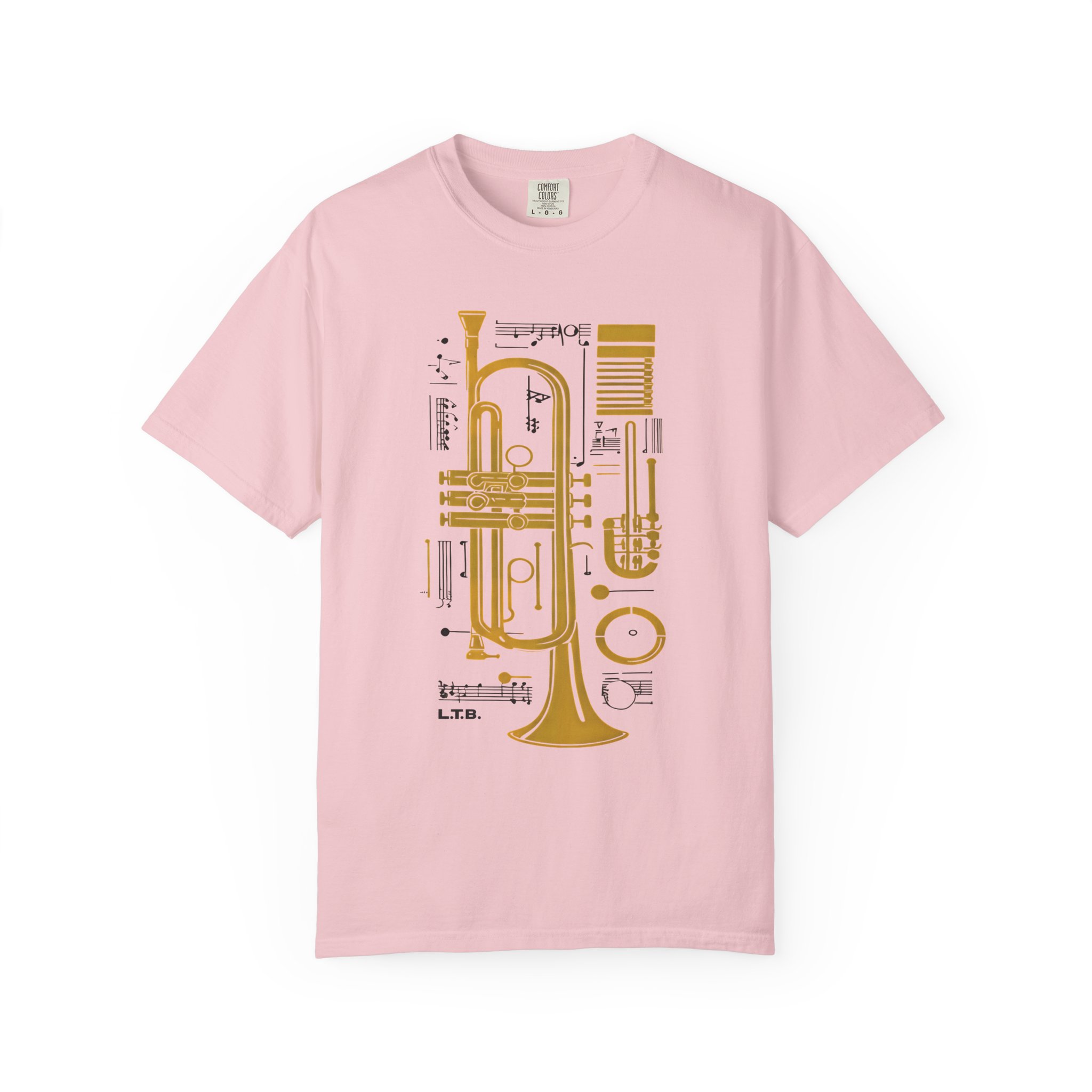 This tee carries the slow-breath rhythm of a late-night jazz club — warm, textured, and quietly confident. The abstract trumpet artwork nods to improvisation: bold shapes and negative space that suggest a brass bell, a bent slide, and the sideways grin of a solo. It sits easily in the wardrobe of someone who prefers atmosphere over flash — worn on gallery nights, during vinyl listening sessions, or while scribbling chords in a dim corner of a café. The garment-dyed cotton softens with each wash, taking on the contours of your life and making the art feel like it was always yours. Lightweight yet substantial, it layers under a worn denim jacket or stands alone with tailored trousers for an offbeat evening look. This shirt speaks to listeners, players, and anyone drawn to smoky textures and slow, inventive rhythms.