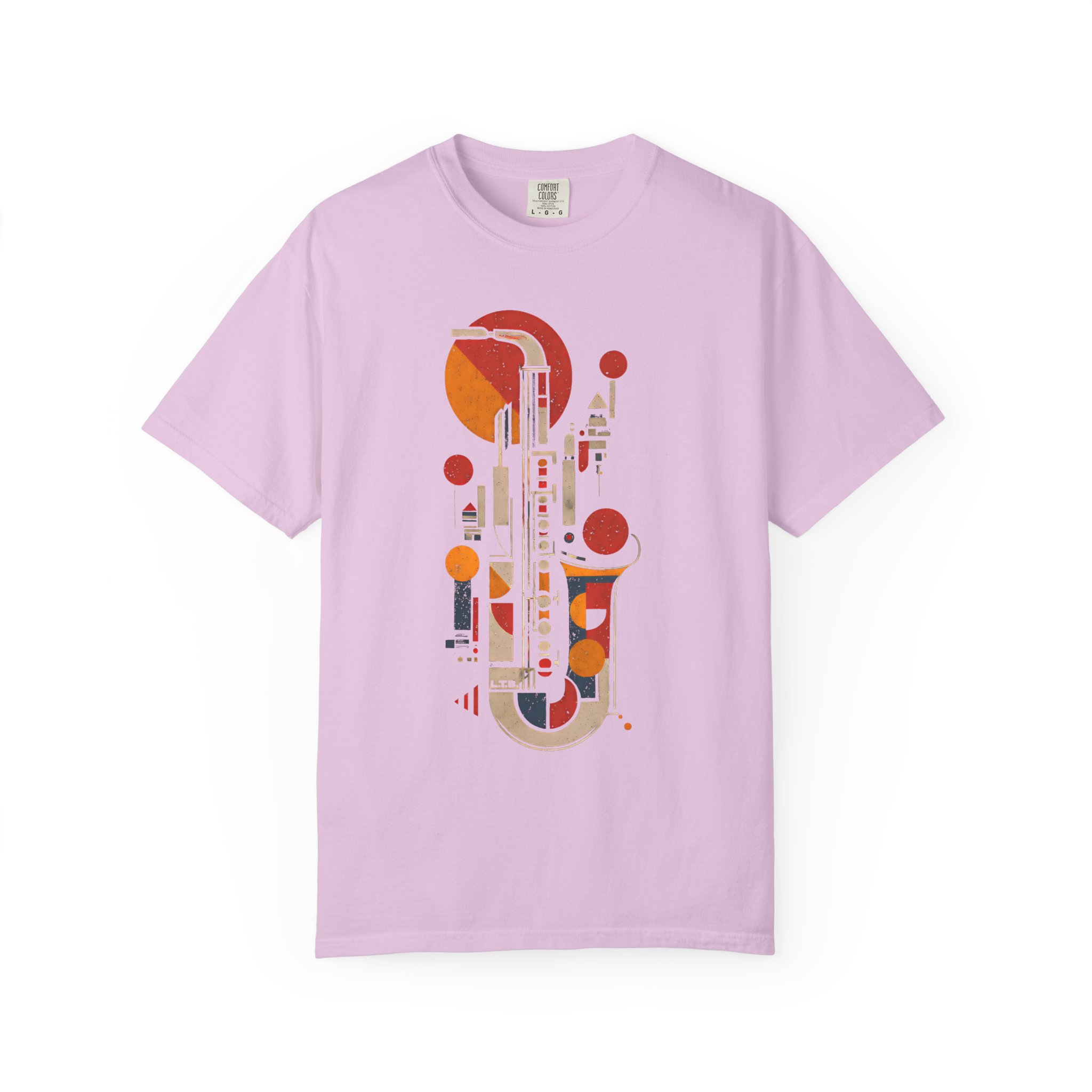Soft, lived-in comfort meets modern graphic art. This heavyweight garment-dyed tee wraps you in a relaxed, broken-in feel—then pops with a warm, geometric print inspired by sunlit cityscapes and vintage posters. Wear it on slow weekend mornings, at record-store dives, or layered under a denim jacket while wandering markets. The shirt moves with you: roomy through the chest and shoulders, with durable double-needle seams that keep the shape after many washes. The subtle texture from garment dyeing gives each color a slightly muted, cozy tone so the art reads like a memory rather than a billboard. It’s the kind of tee you reach for when you want comfort and quiet style that tells a story without shouting.