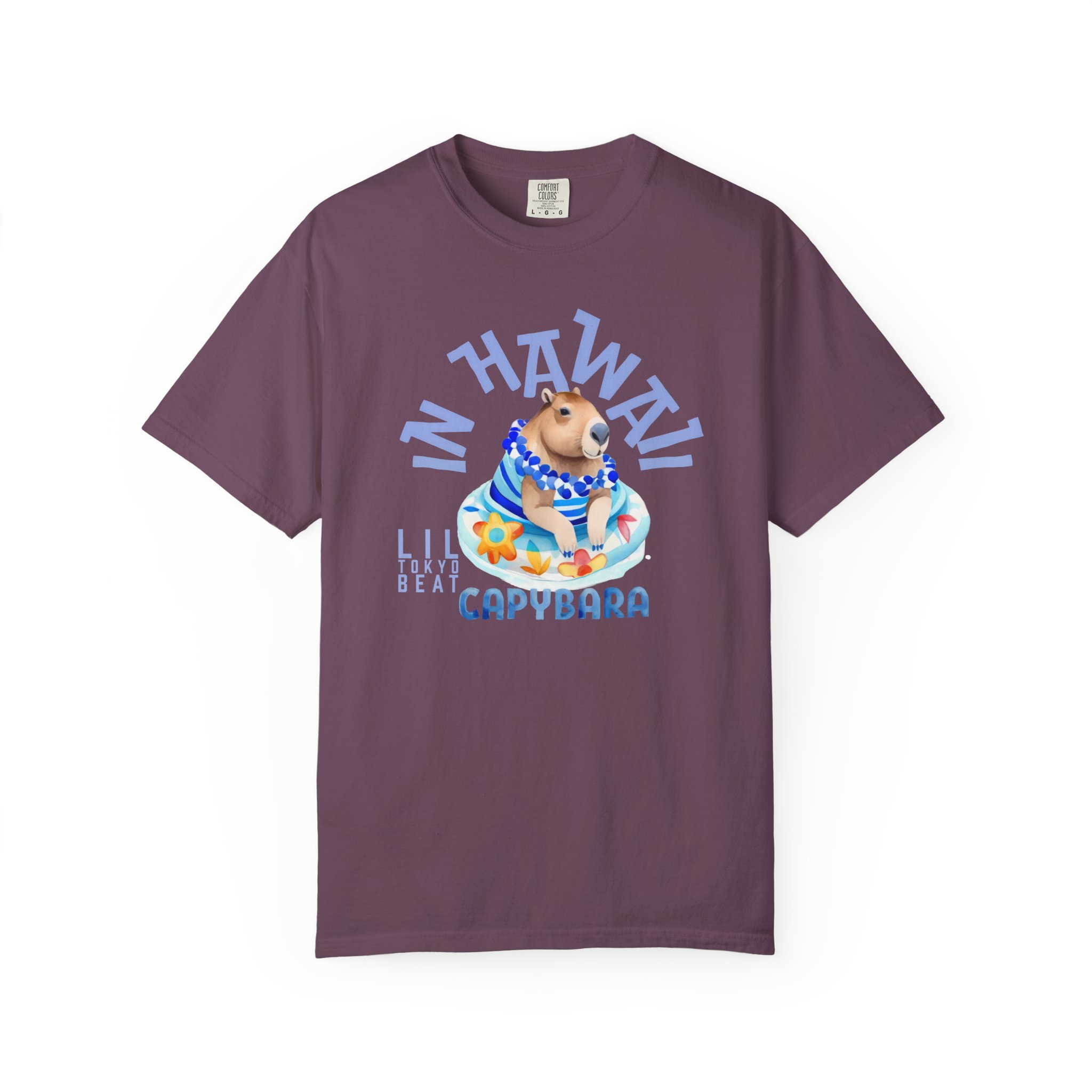 This Capybara in Hawaii Tee features a cute pool float graphic, adding a tropical vibe to your wardrobe. Perfect for those who love tropical and cute designs, this tee is great for casual wear or as a fun addition to your vacation attire. Ideal for summer, beach trips, Hawaii-themed parties, and animal lovers. Product features – Available in multiple sizes from S to 4XL for the perfect fit – Double-needle stitching for durability – Garment-dyed fabric for a soft color and texture – Made with 100% US cotton for long-lasting comfort – Expansive color options to choose from Care instructions – Machine wash: cold (max 30C or 90F) – Do not bleach – Tumble dry: low heat – Iron, steam or dry: low heat – Do not dryclean