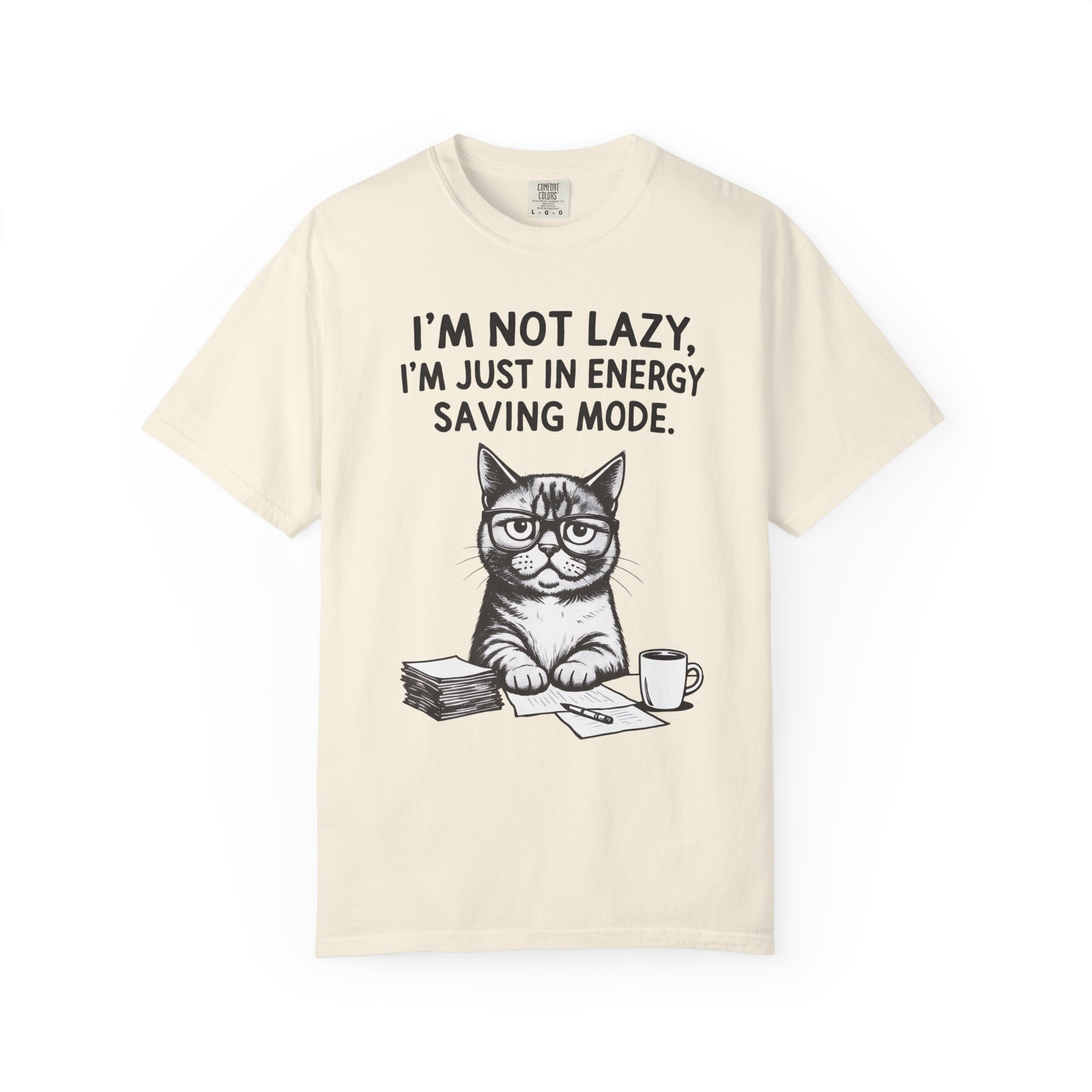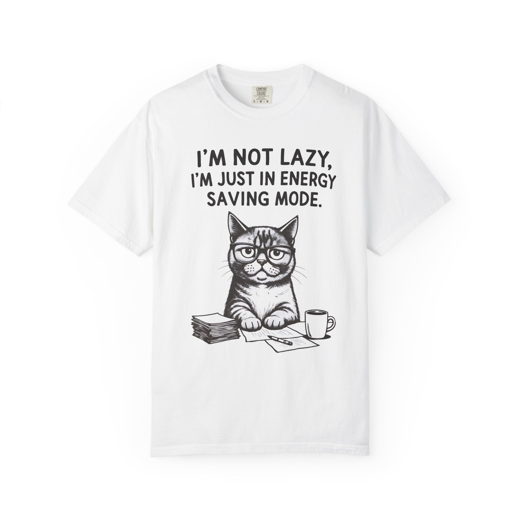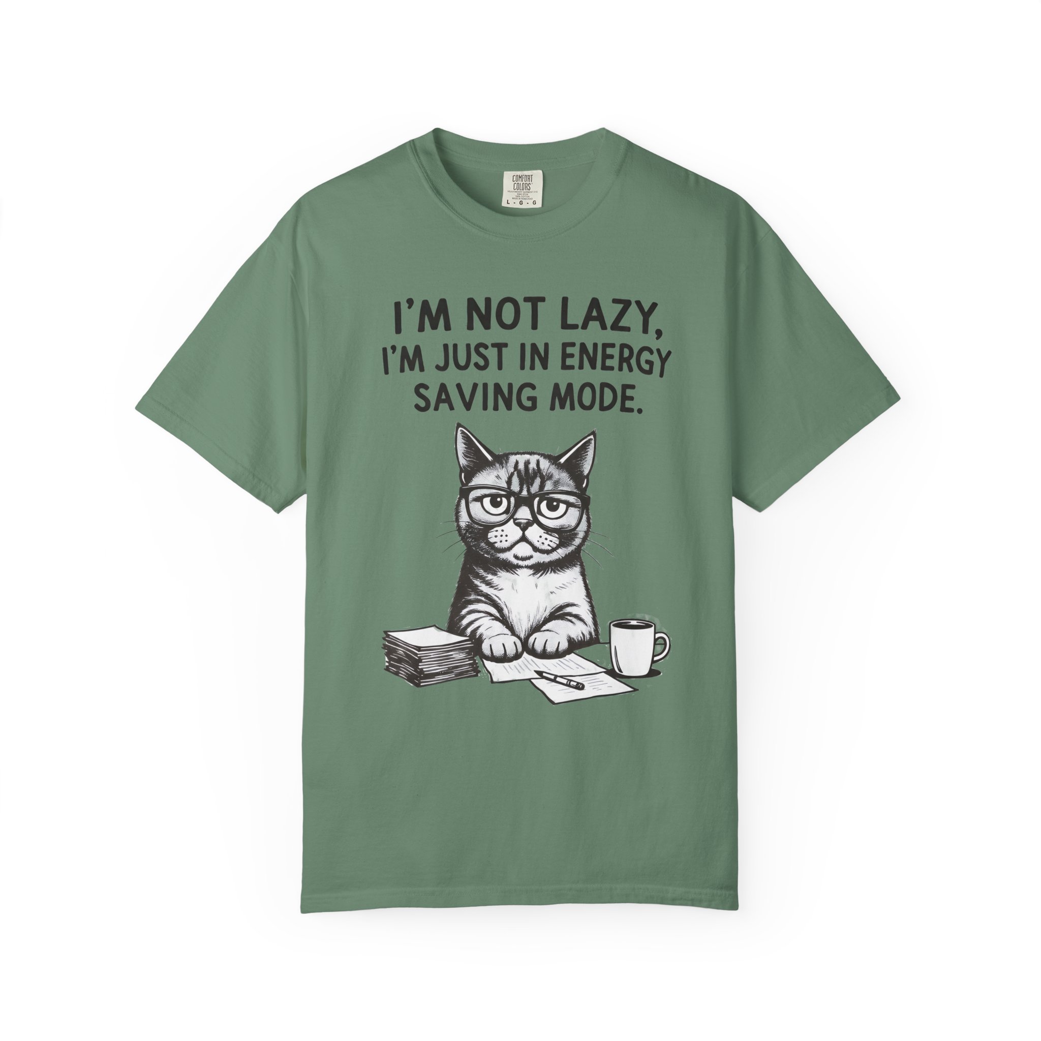 This relaxed-fit tee brings a quiet, cozy humor to everyday wear. Garment-dyed and heavyweight, it feels worn-in from day one while holding its shape thanks to double-needle stitching and a tubular, side-seam-free build. The front art features a bespectacled cat at a desk with the line “I’m not lazy. I’m just in energy saving mode.” — a low-key declaration for anyone who prefers slow mornings, quiet work sessions, and coffee-fueled comfort. Choose from many colors and sizes to match your usual vibe; the soft texture and sturdy cotton make it a go-to for lounging, layered outfits, or casual outings where comfort comes first.