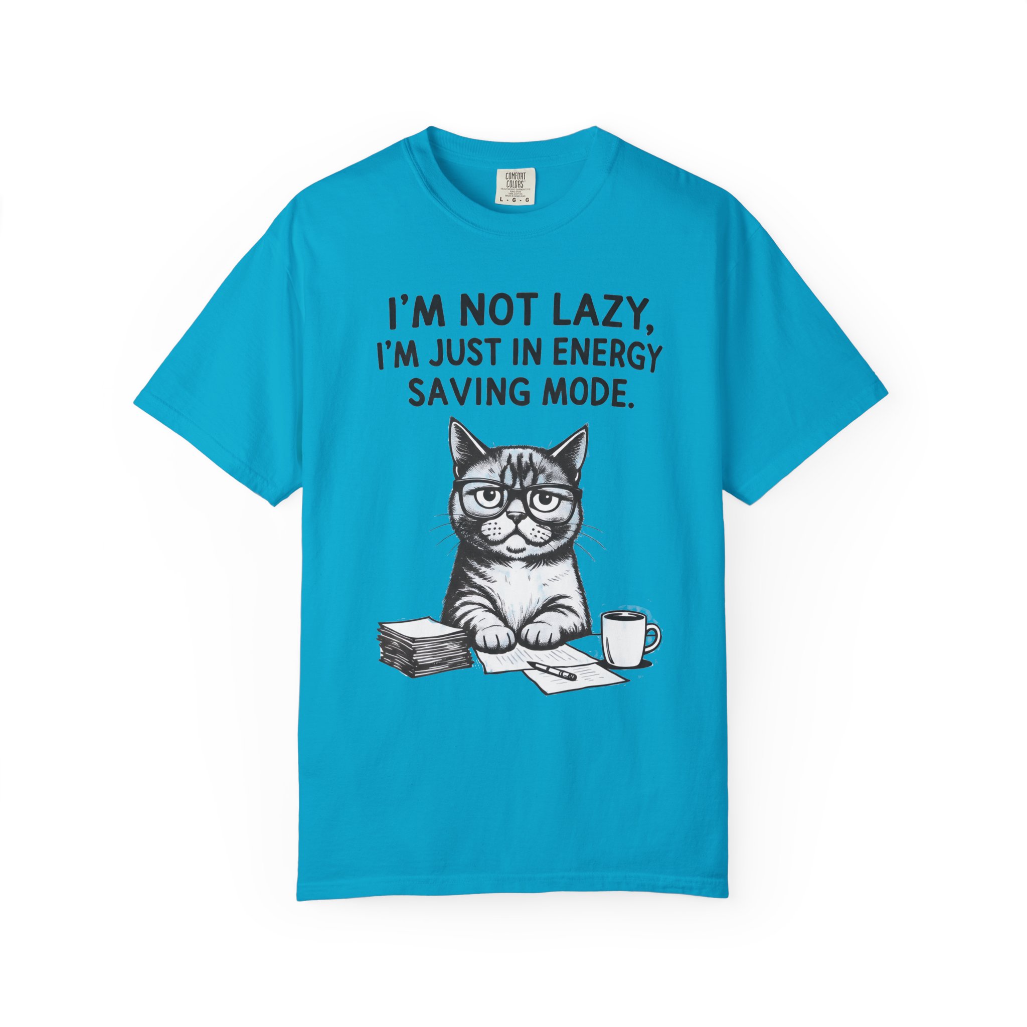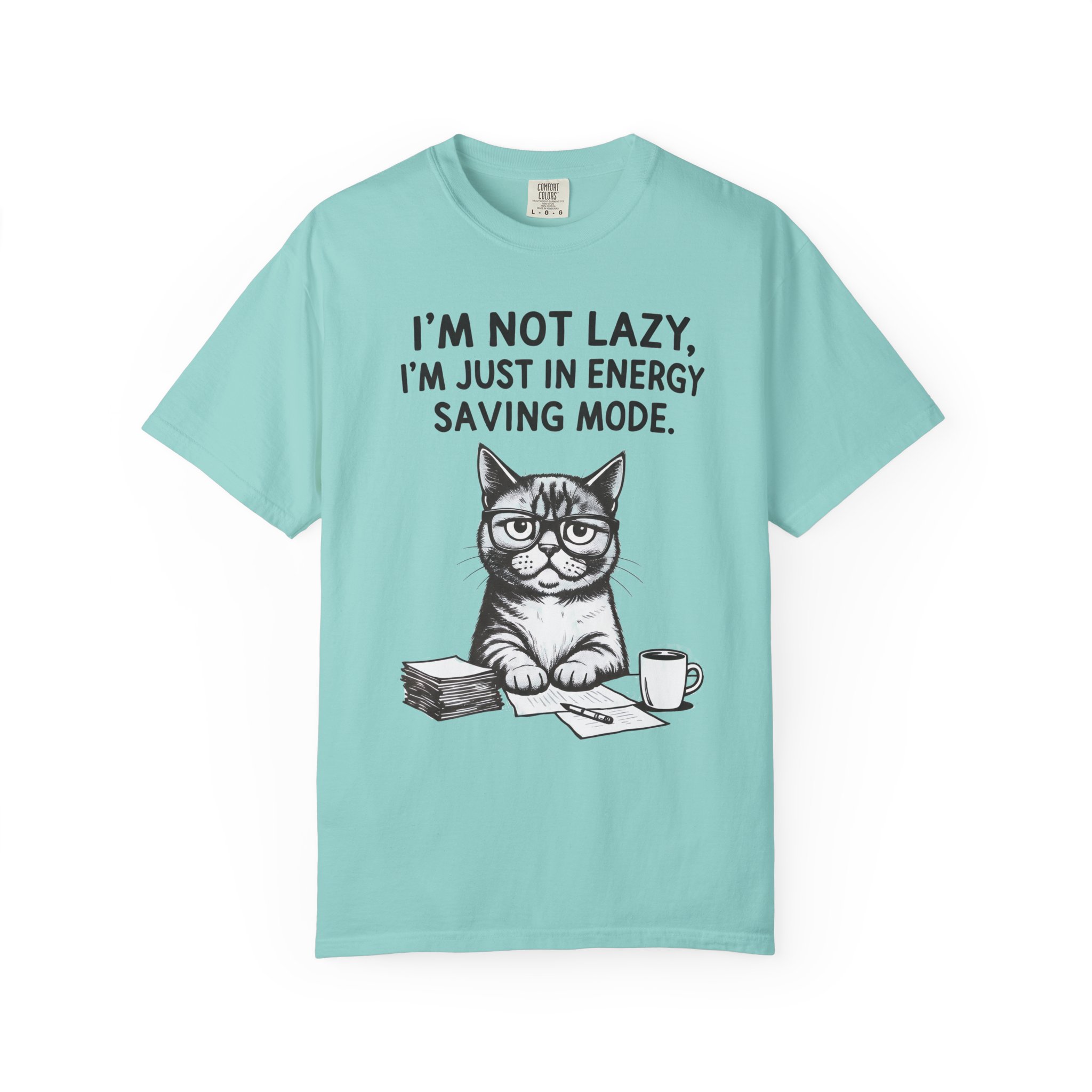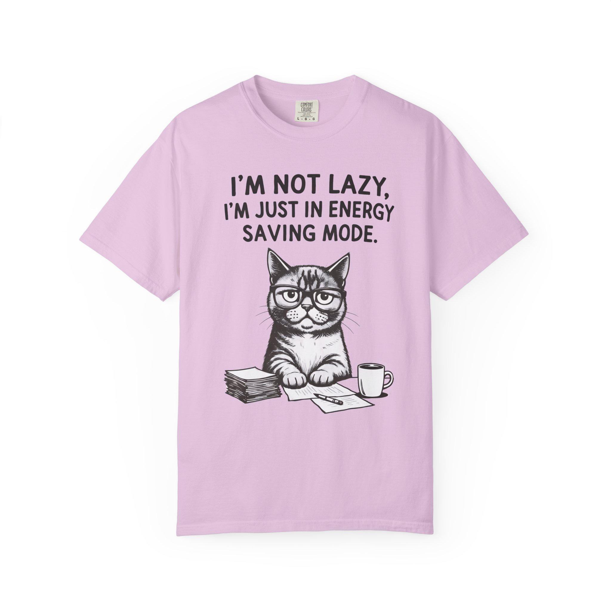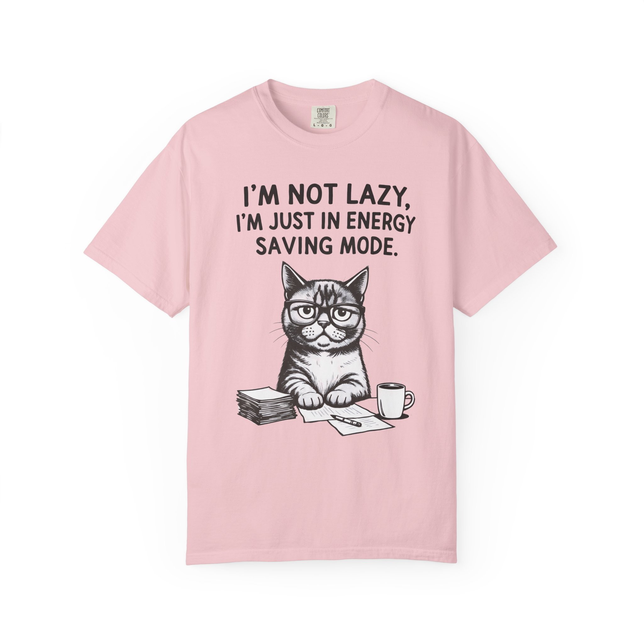 This relaxed-fit tee brings a quiet, cozy humor to everyday wear. Garment-dyed and heavyweight, it feels worn-in from day one while holding its shape thanks to double-needle stitching and a tubular, side-seam-free build. The front art features a bespectacled cat at a desk with the line “I’m not lazy. I’m just in energy saving mode.” — a low-key declaration for anyone who prefers slow mornings, quiet work sessions, and coffee-fueled comfort. Choose from many colors and sizes to match your usual vibe; the soft texture and sturdy cotton make it a go-to for lounging, layered outfits, or casual outings where comfort comes first.