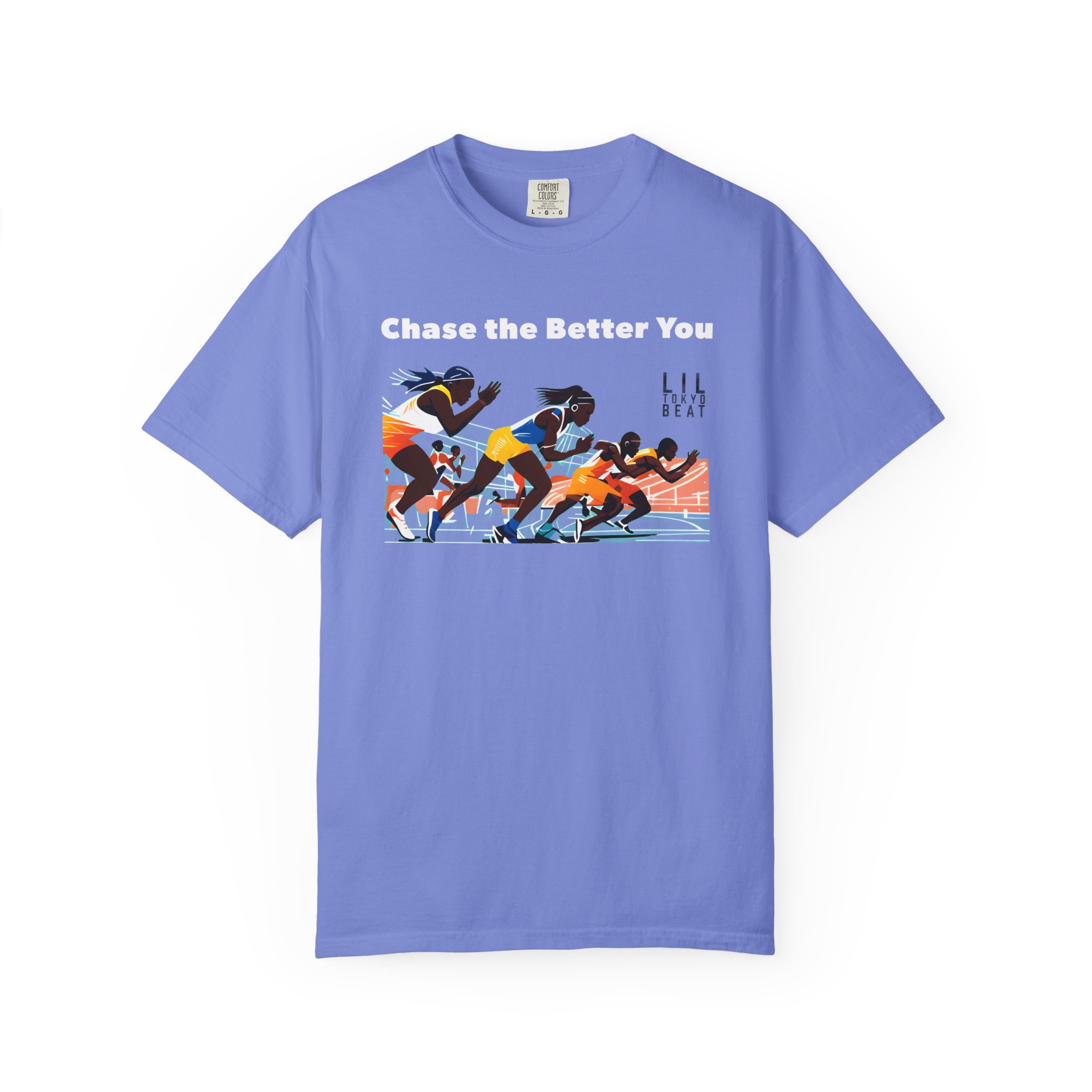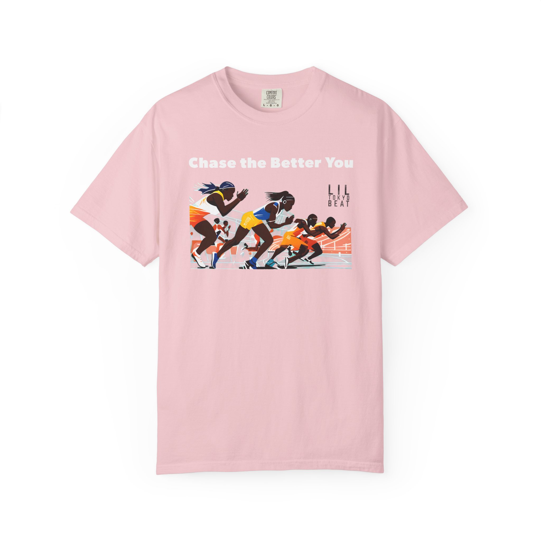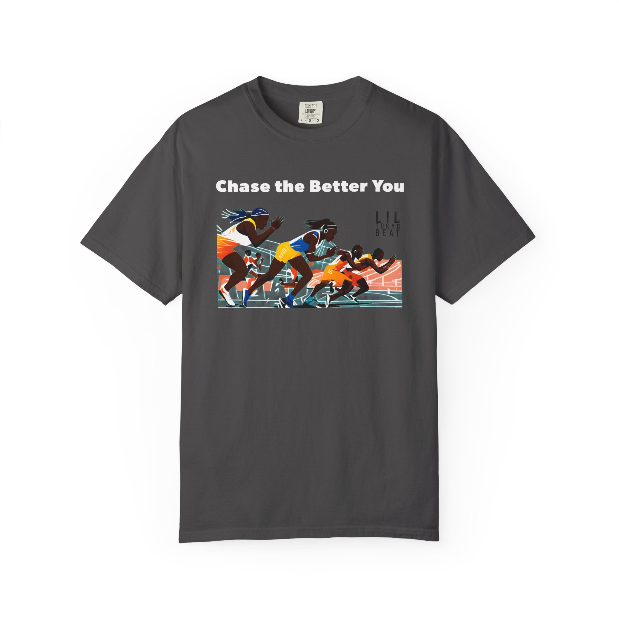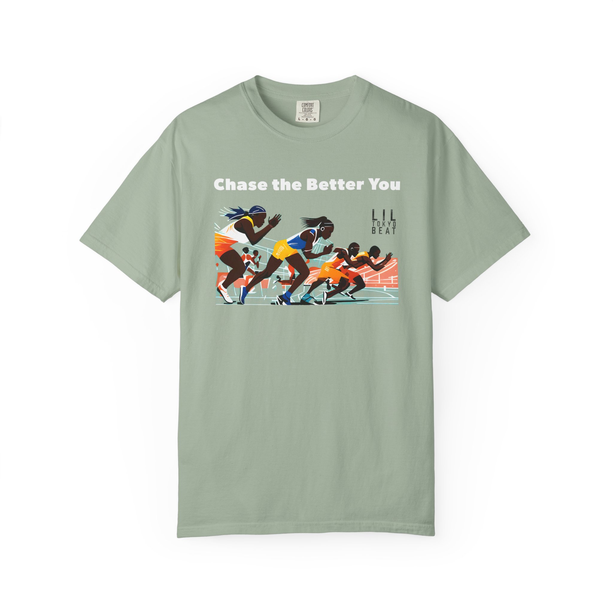 This garment-dyed tee brings the track to the street with warm, lived-in color and a bold finish-line scene. The front artwork captures sprinters mid-launch beneath the uplifting line “CHASE THE BETTER YOU,” turning a casual shirt into a quiet pep talk you can wear. The relaxed, medium-weight cotton breaks in softly over time, so the color and handfeel deepen with every wash. Slip it on before a morning run, layer it for a weekend meet-up, or wear it after practice to carry that focused energy into your day.