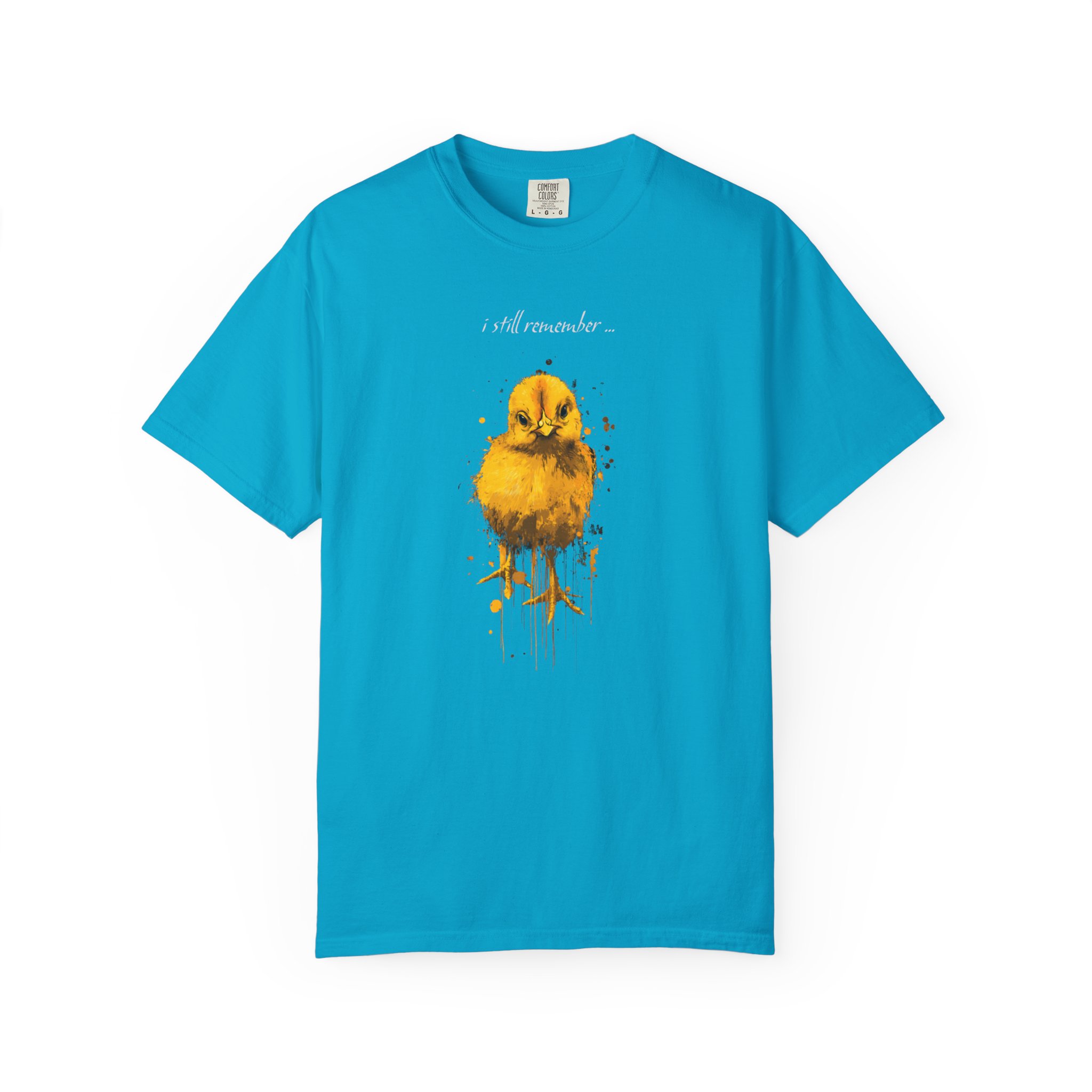 This chick illustration T-shirt was created from a deeply personal childhood memory. When I was in grade school, I raised a small chick and once took it with me for a walk through the field behind our farmhouse. The field was alive with crickets, which were its favorite. That day, a sudden cat attack took its life, and the moment became my first experience with loss and heartbreak. Years later, the memory remains vivid. This artwork captures that quiet remembrance through a soft yet striking chick portrait and the words “i still remember …” Printed on a comfortable T-shirt, this design is not meant to be loud or decorative, but reflective. Created by an independent artist and available exclusively at liltokyobeat.com, this piece honors memory, innocence, and the lasting weight of love.