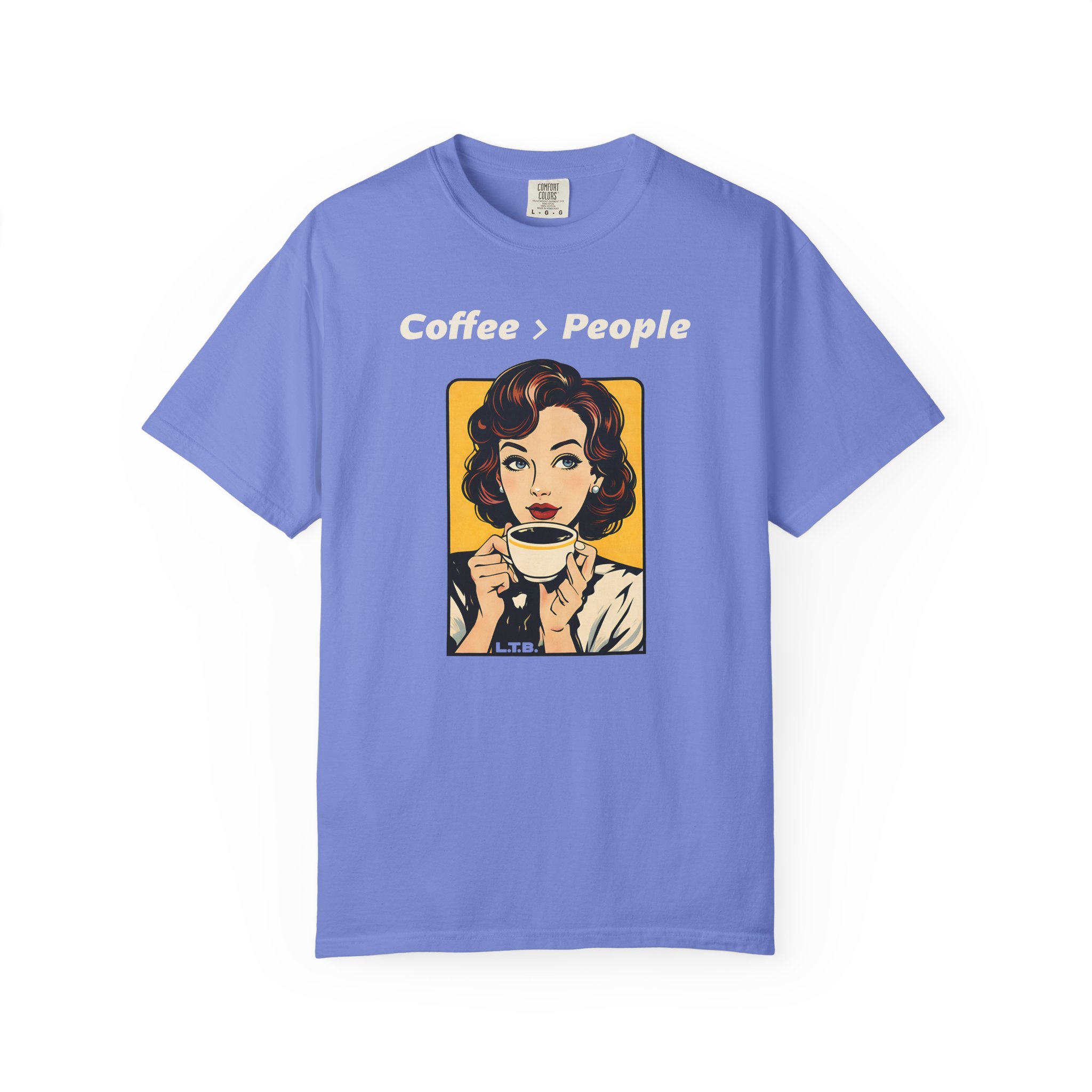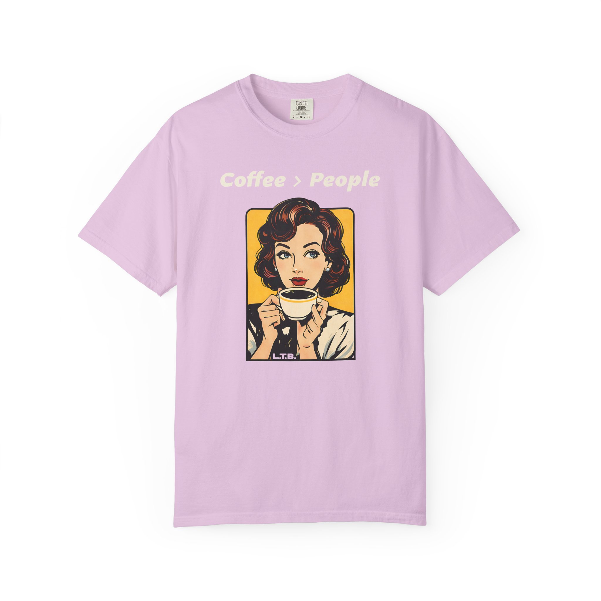 Some days call for coffee before conversation. This Coffee > People graphic T-shirt features an original illustrated coffee moment paired with soft off-white typography for a clean, modern look. Designed for coffee lovers, introverts, creatives, and anyone who values a quiet cup before social energy, this tee blends subtle humor with expressive illustration. Printed on a comfortable dark-tone T-shirt, the off-white lettering creates a refined contrast that works effortlessly for everyday wear, café outings, or relaxed weekends. This design is part of the Coffee First mini series by independent artist label Lil Tokyo Beat. Created for those who appreciate modern graphic tees with personality and calm attitude. Available exclusively at liltokyobeat.com.
