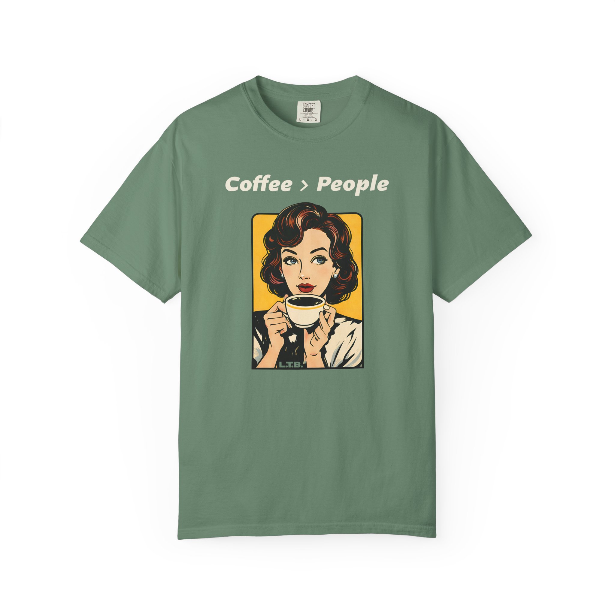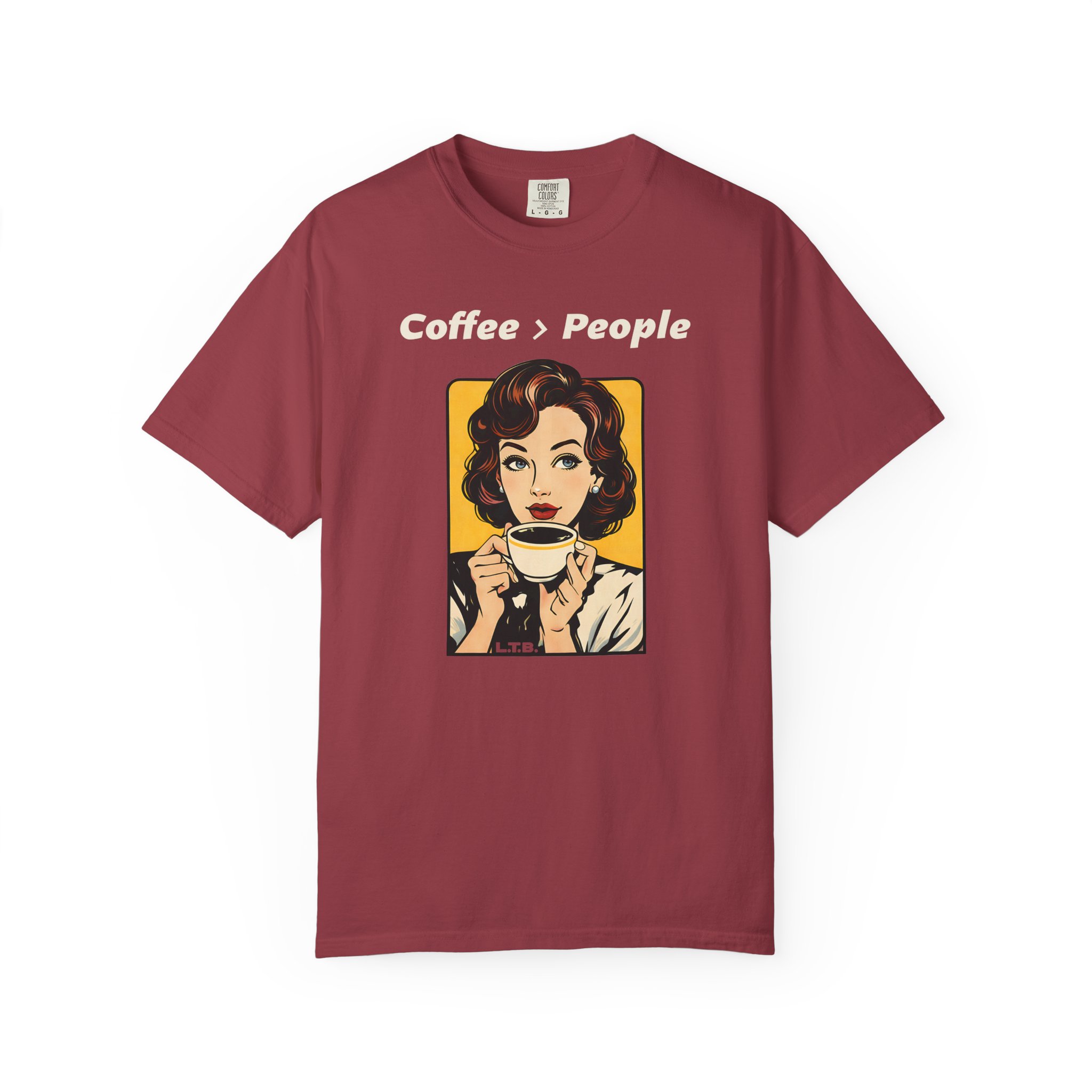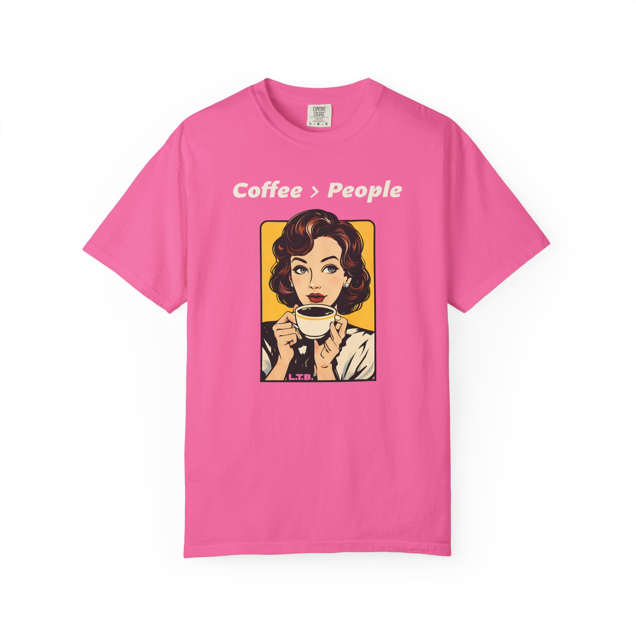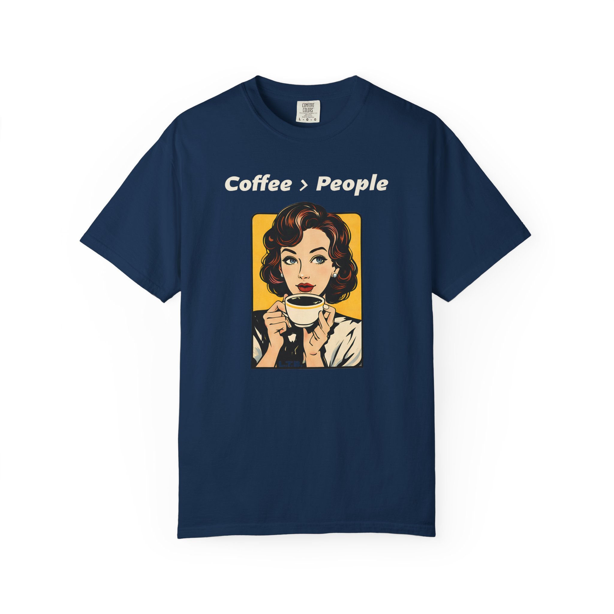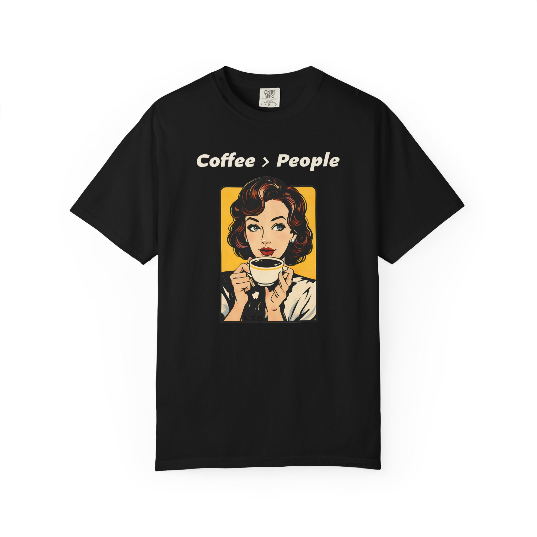 Be the first to review “Coffee > People T‑Shirt — Retro Woman Drinking Coffee Graphic Dark-Tee Version”