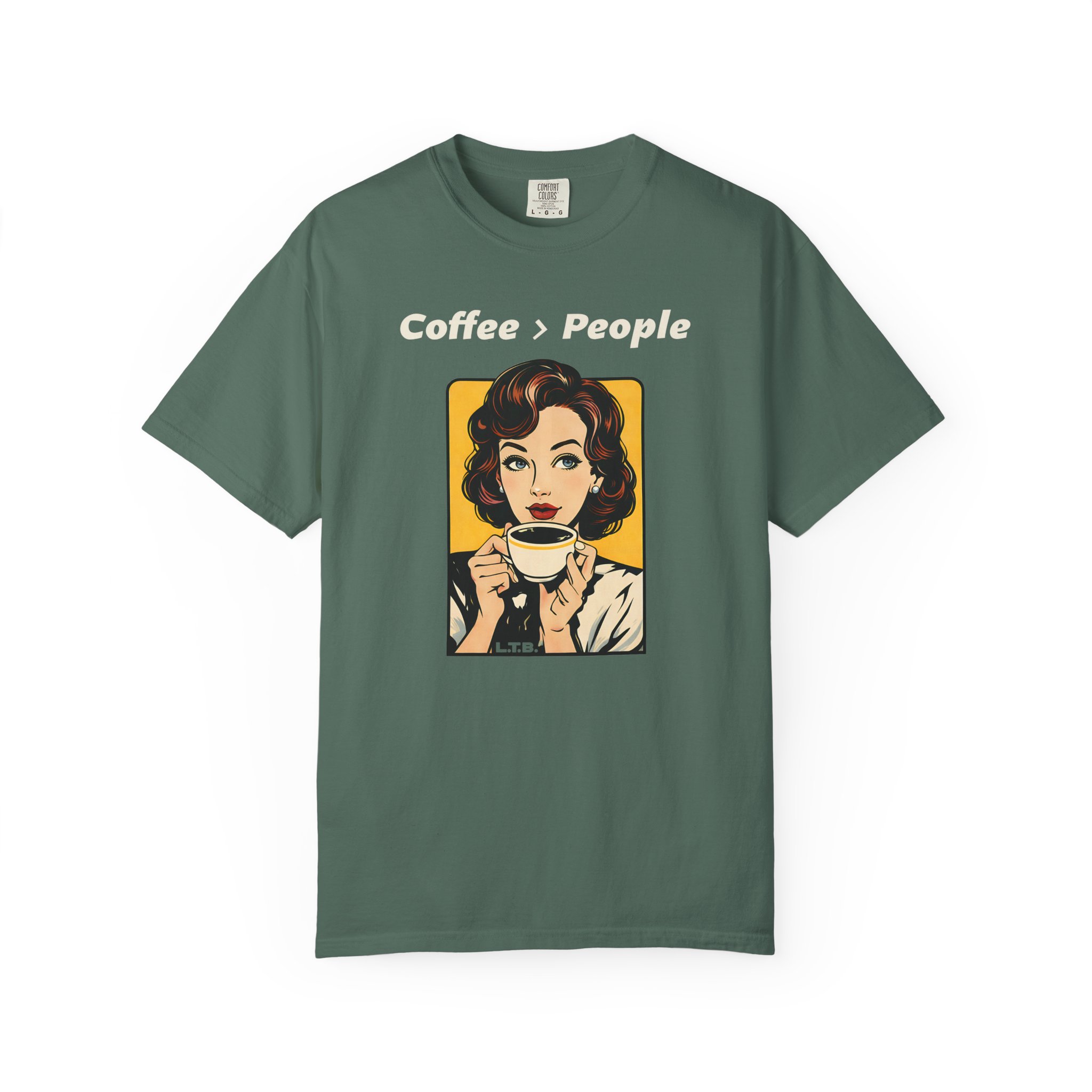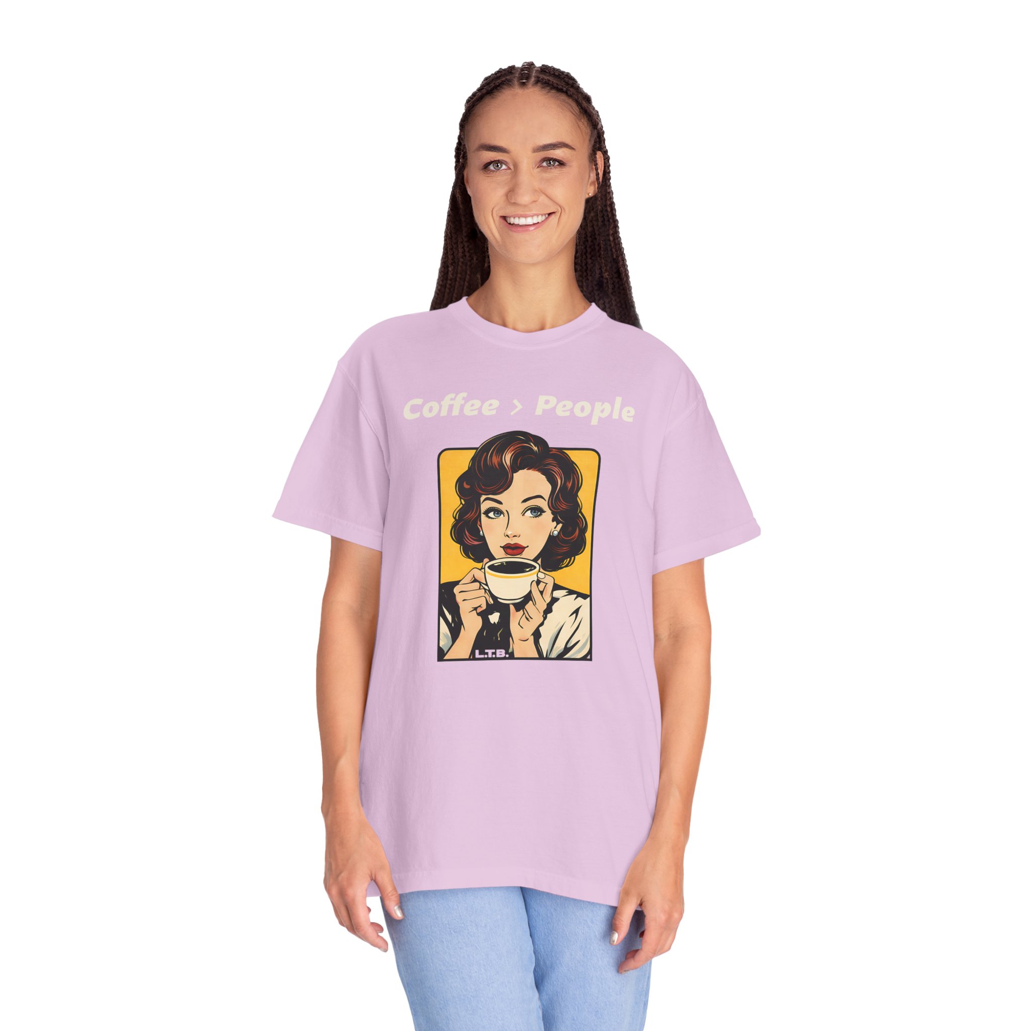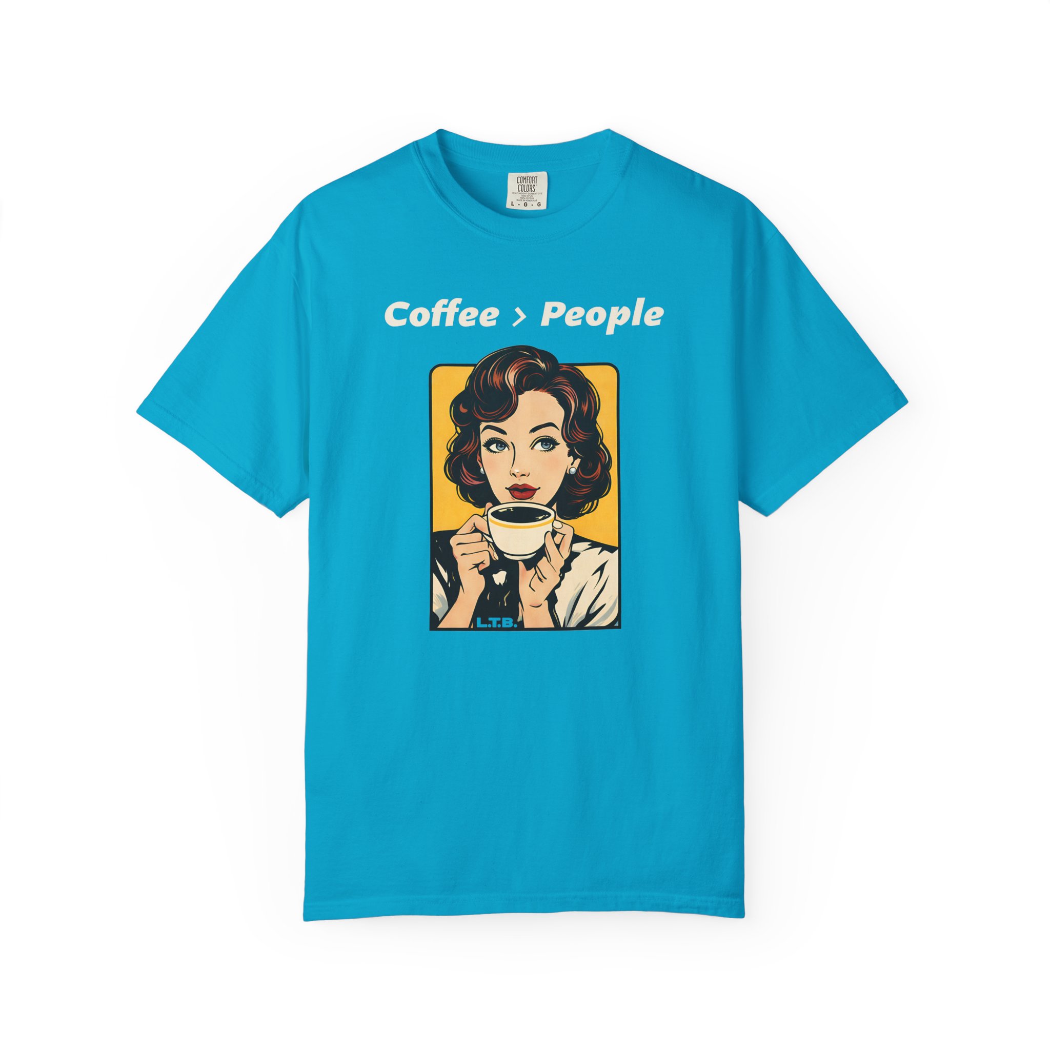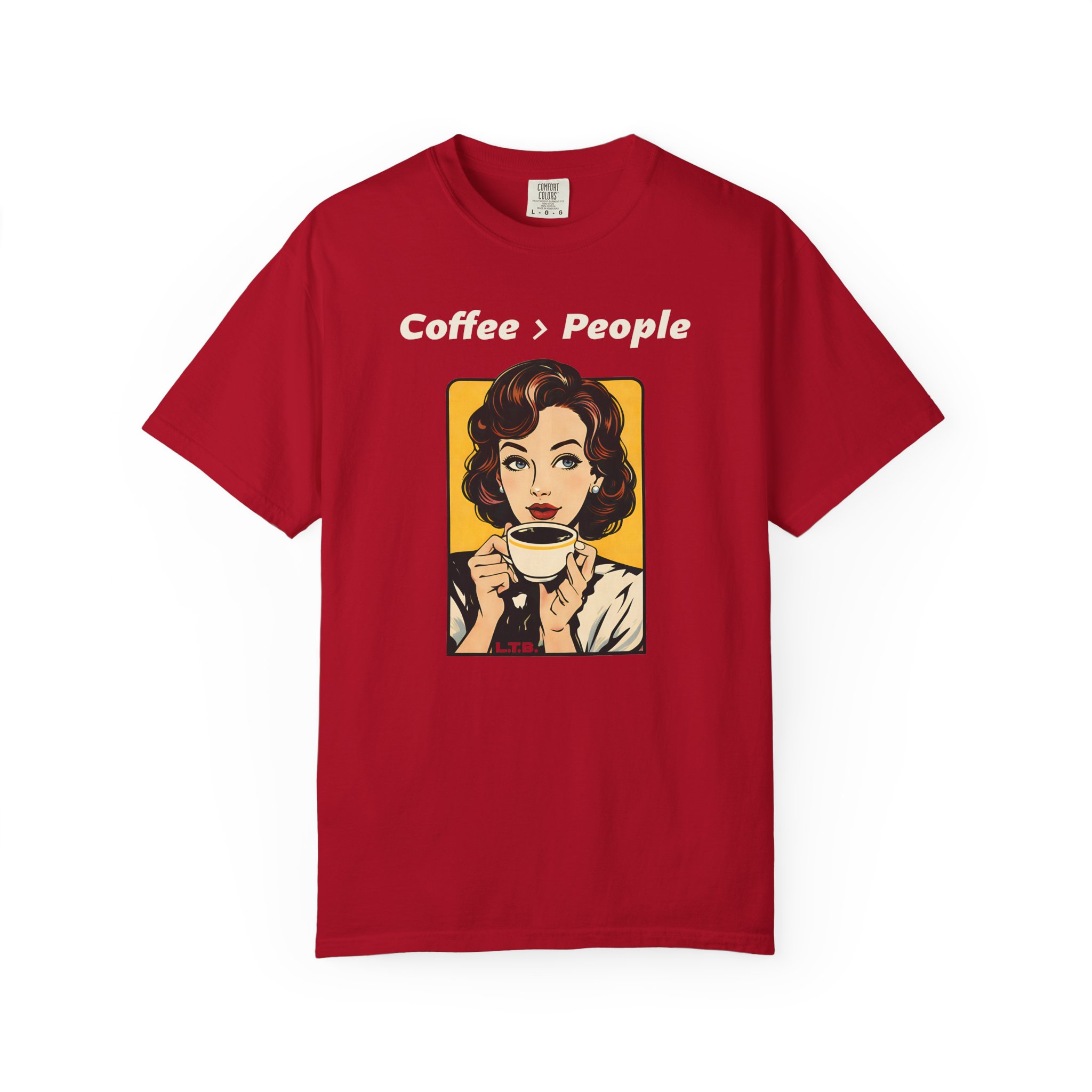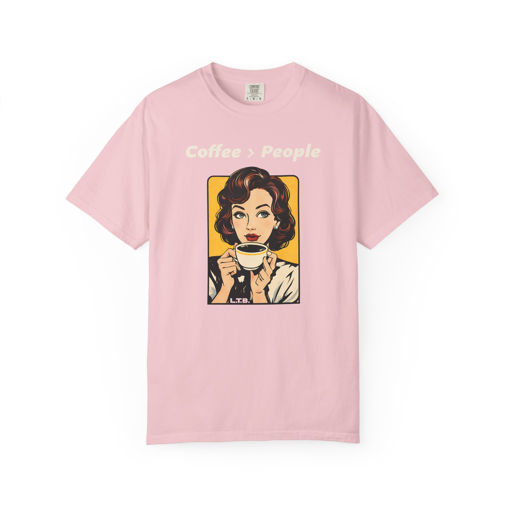 Be the first to review “Coffee > People T‑Shirt — Retro Woman Drinking Coffee Graphic Dark-Tee Version”