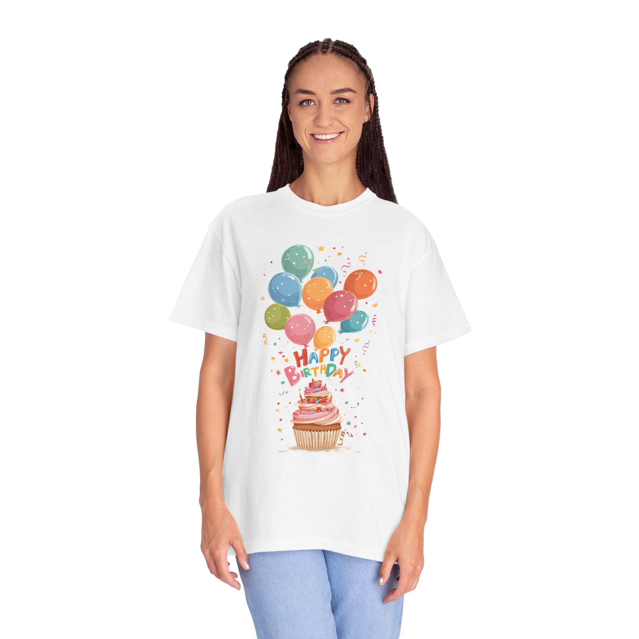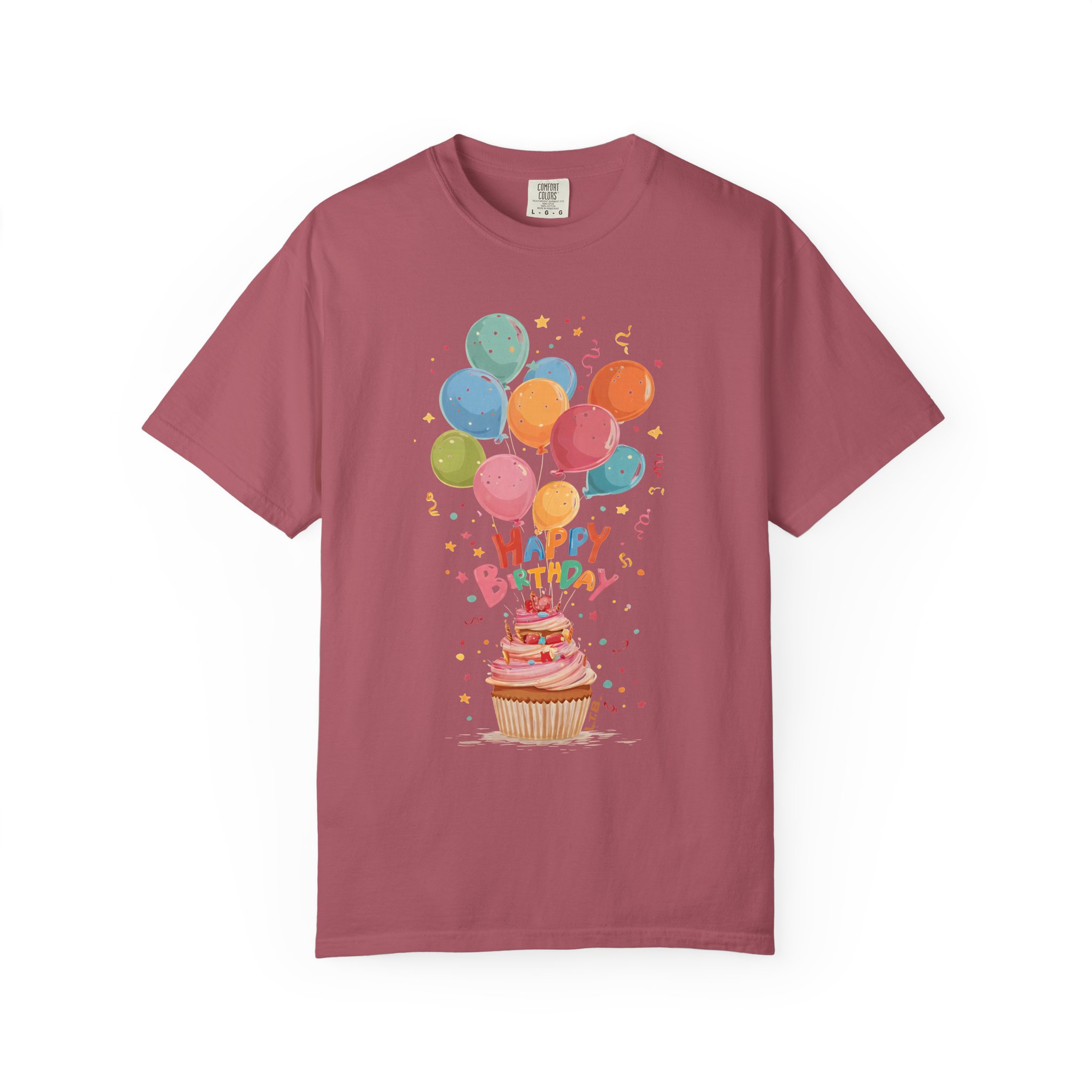 Celebrate in style with this colorful Happy Birthday T-shirt featuring vibrant balloons, festive confetti, and a sweet cupcake design. This cheerful graphic tee captures the joy of birthday parties with soft pastel tones and playful lettering that pops on a clean white canvas. Perfect for birthday girls, party hosts, surprise celebrations, or matching group outfits. Whether you’re attending a party, planning a photoshoot, or looking for a fun gift idea, this cute birthday shirt adds instant celebration vibes. Comfortable, bright, and full of happiness — wear the party wherever you go.
