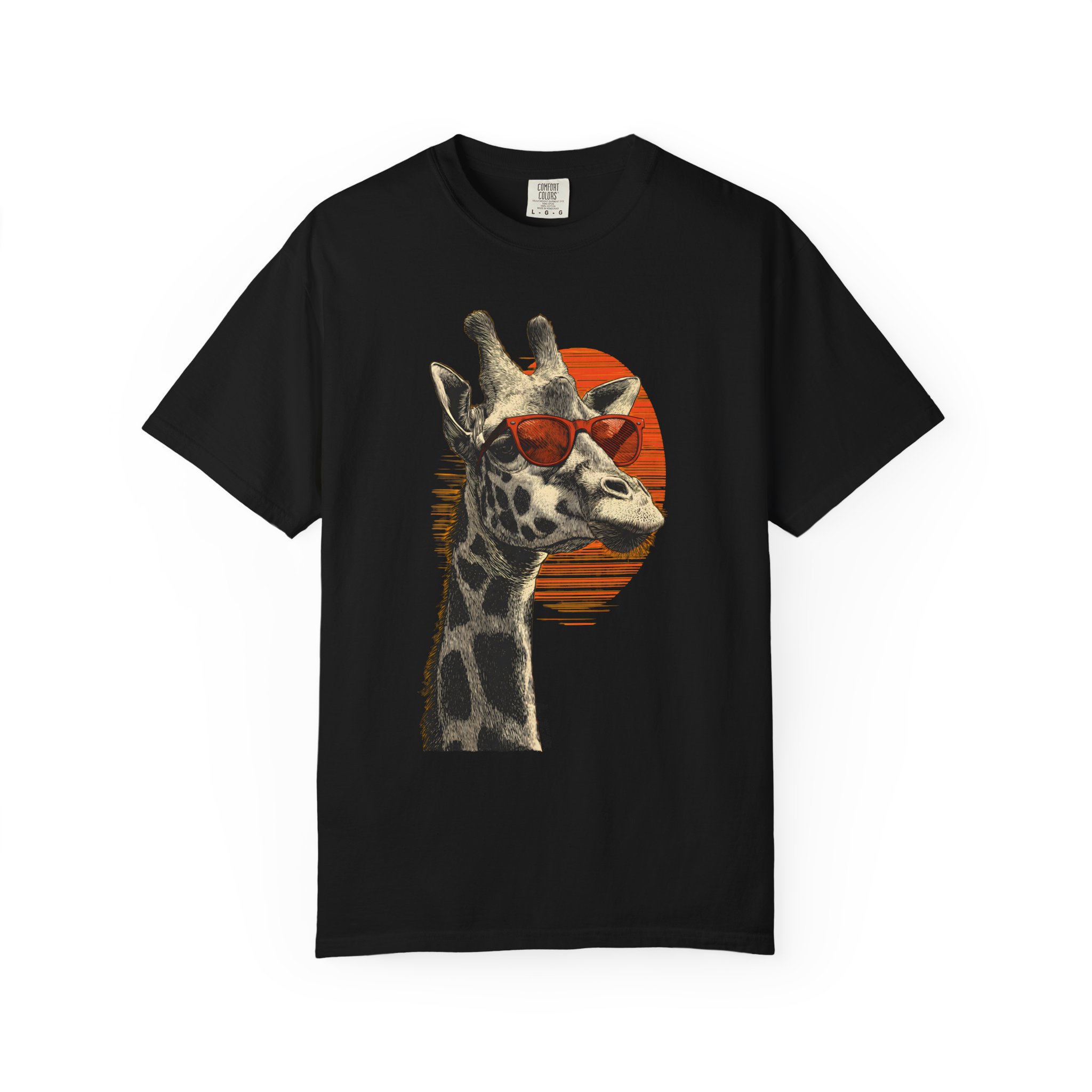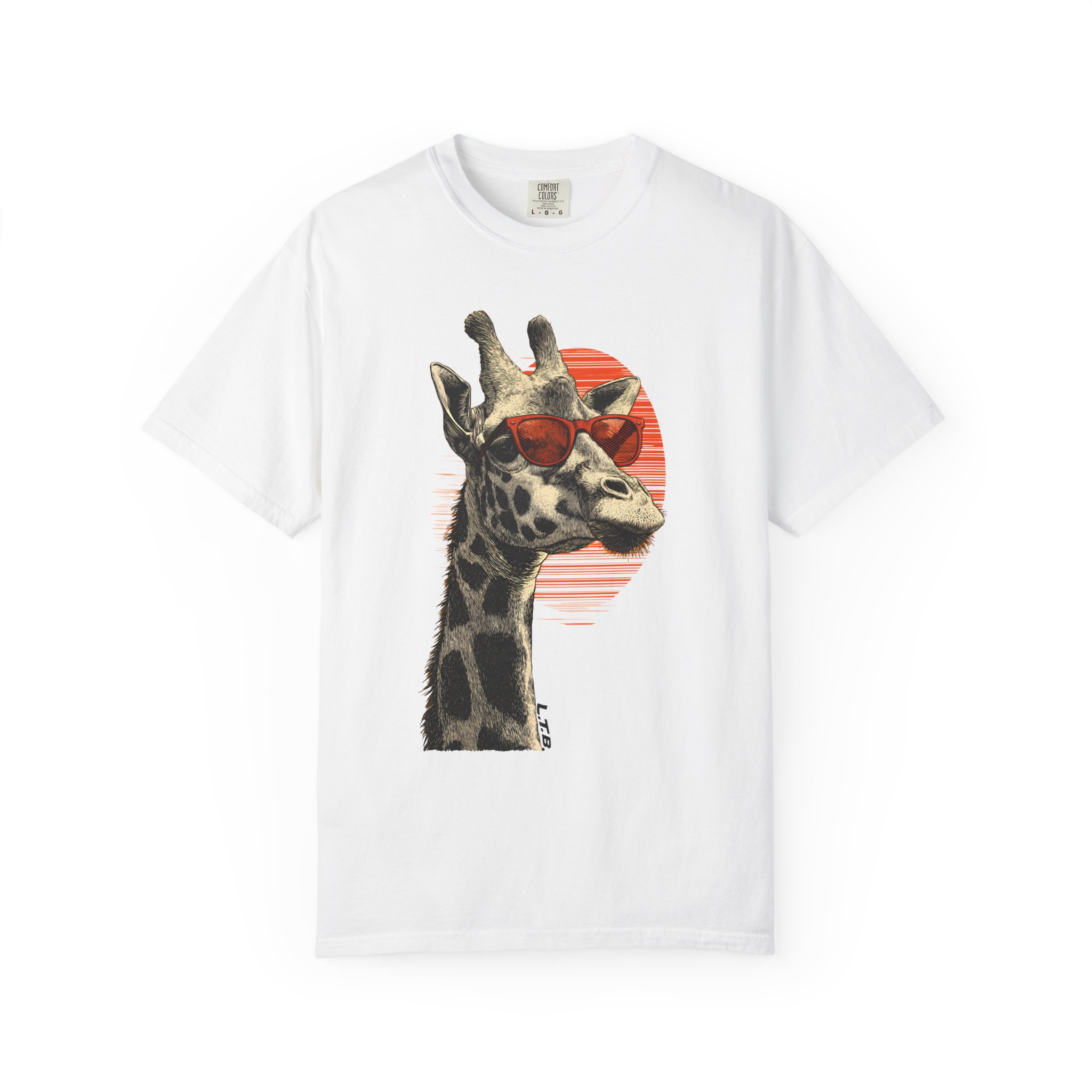 Tall. Calm. Effortlessly cool. This Cool Giraffe Sunglasses T-shirt from Lil Tokyo Beat turns safari elegance into a clean streetwear statement. Featuring a detailed giraffe portrait wearing bold red sunglasses against a subtle retro sun backdrop, the design balances natural realism with graphic minimalism. The crisp white canvas enhances the fine linework while the red accent adds striking contrast and modern edge. Built on the philosophy of K.A.T. — Kool. Artful. Timeless. — this tee blends playful personality with refined design. Lil Tokyo Beat — A New Voice in Tee Culture.