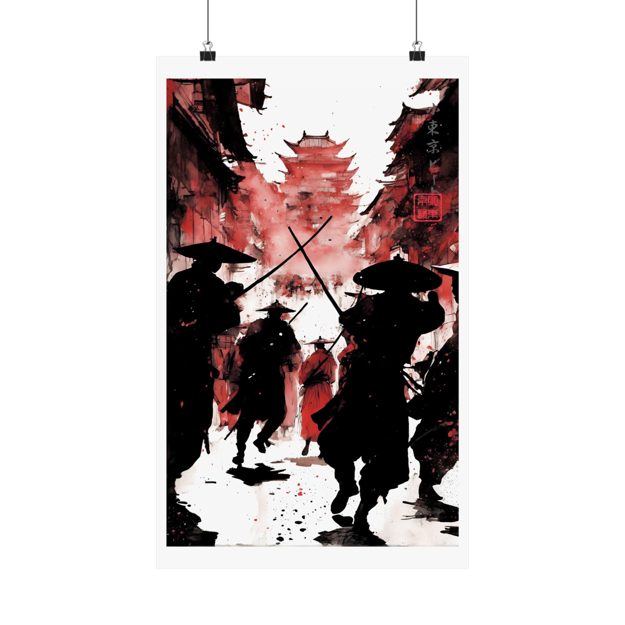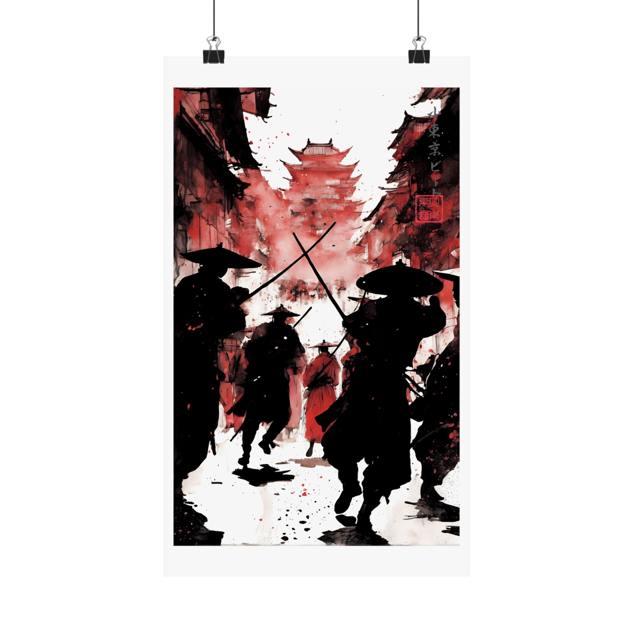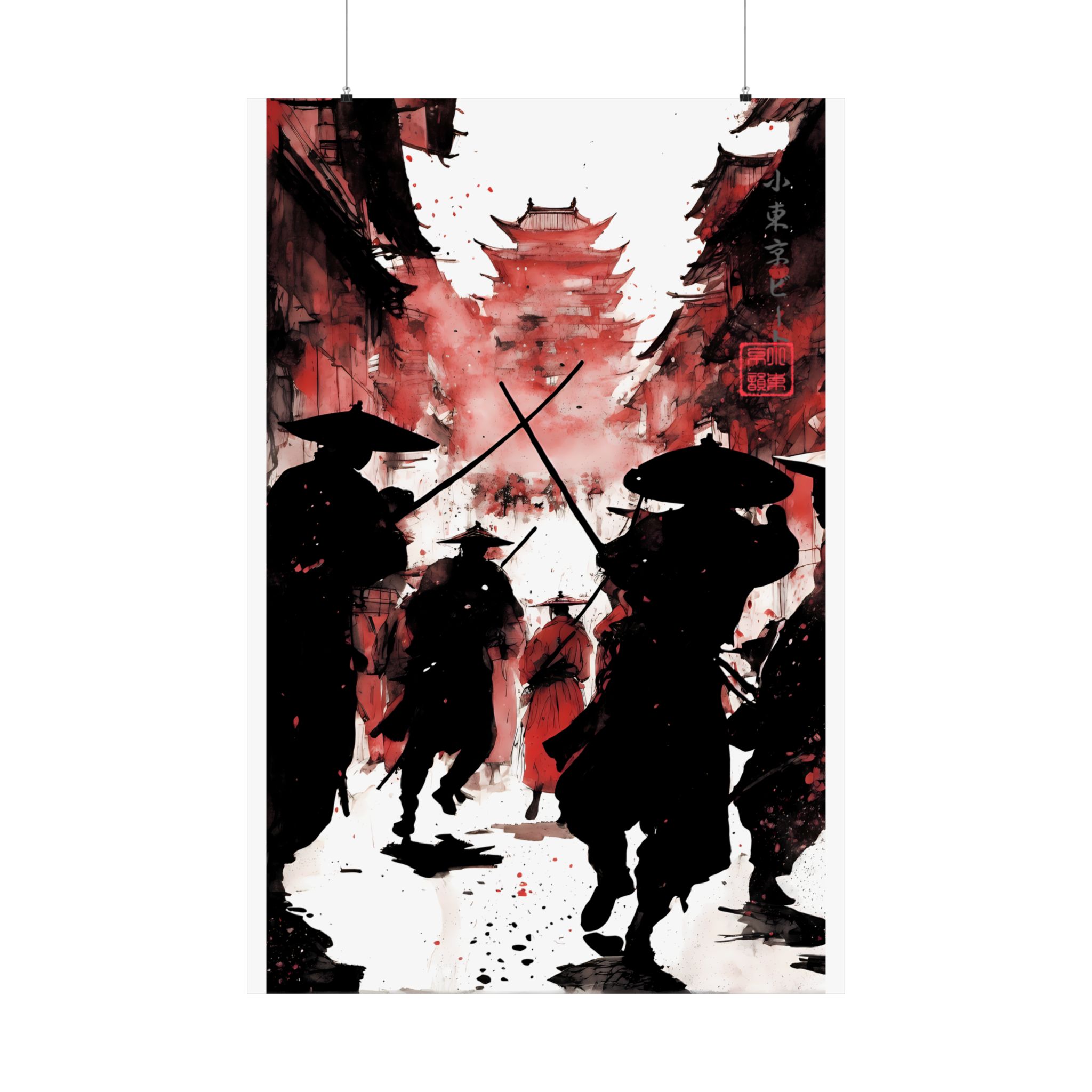 Unleash bold energy with this Crimson Ronin Street Battle Poster from Lil Tokyo Beat — a cinematic fusion of Japanese-inspired warrior imagery and modern abstract art direction. This striking red edition captures shadowed samurai charging through a narrow street toward a towering pagoda, framed by dramatic smoke, ink splatter, and deep crimson tones. The powerful silhouettes, crossed swords, and layered textures create a gallery-style piece that feels intense, timeless, and emotionally charged. Designed for fans of samurai culture, anime-inspired aesthetics, warrior symbolism, and bold wall decor, this poster transforms any space into a statement of motion, courage, and atmosphere. Perfect for home offices, studios, game rooms, and collectors who appreciate art-driven storytelling. Kool. Artful. Timeless. A New Voice in Wall Art Culture.
