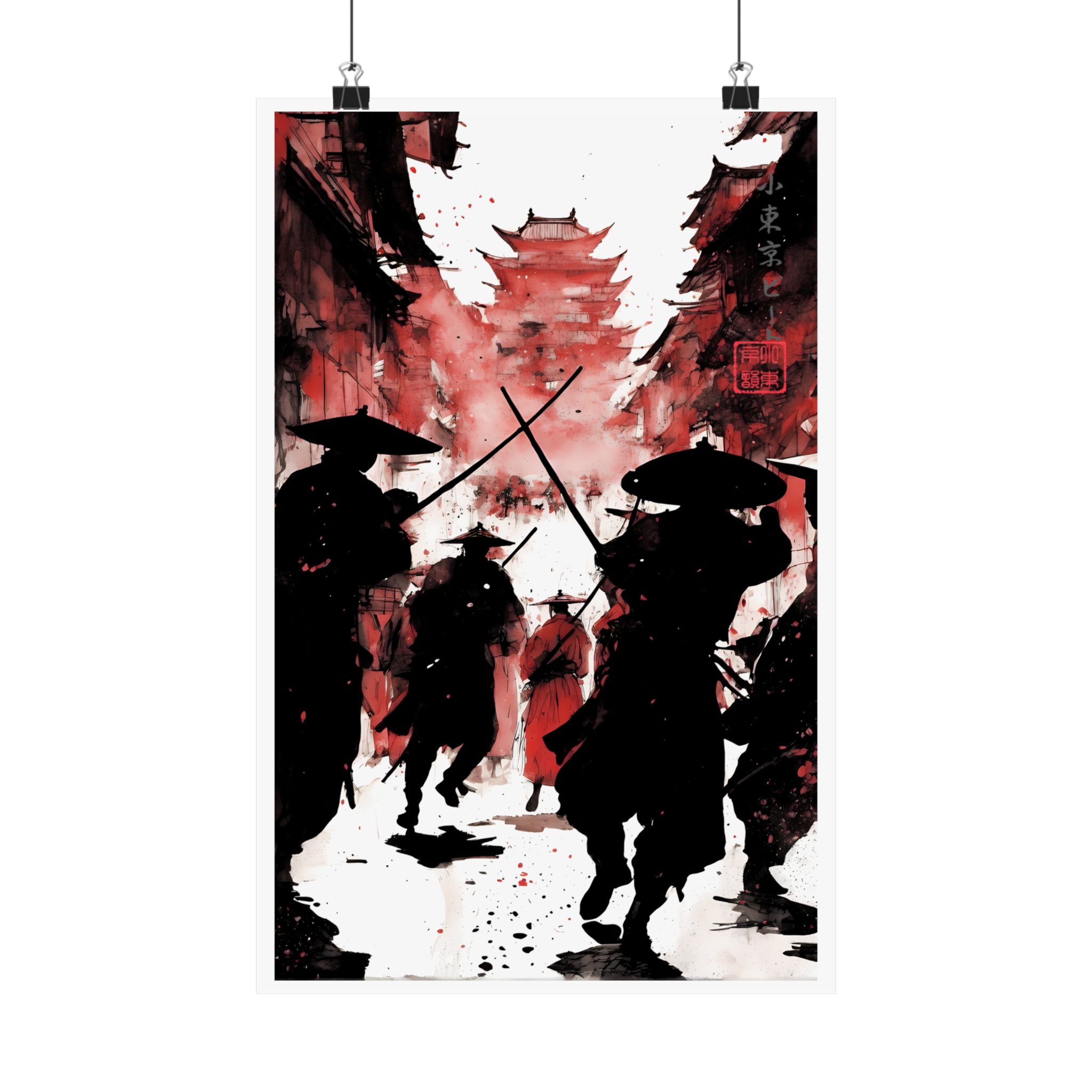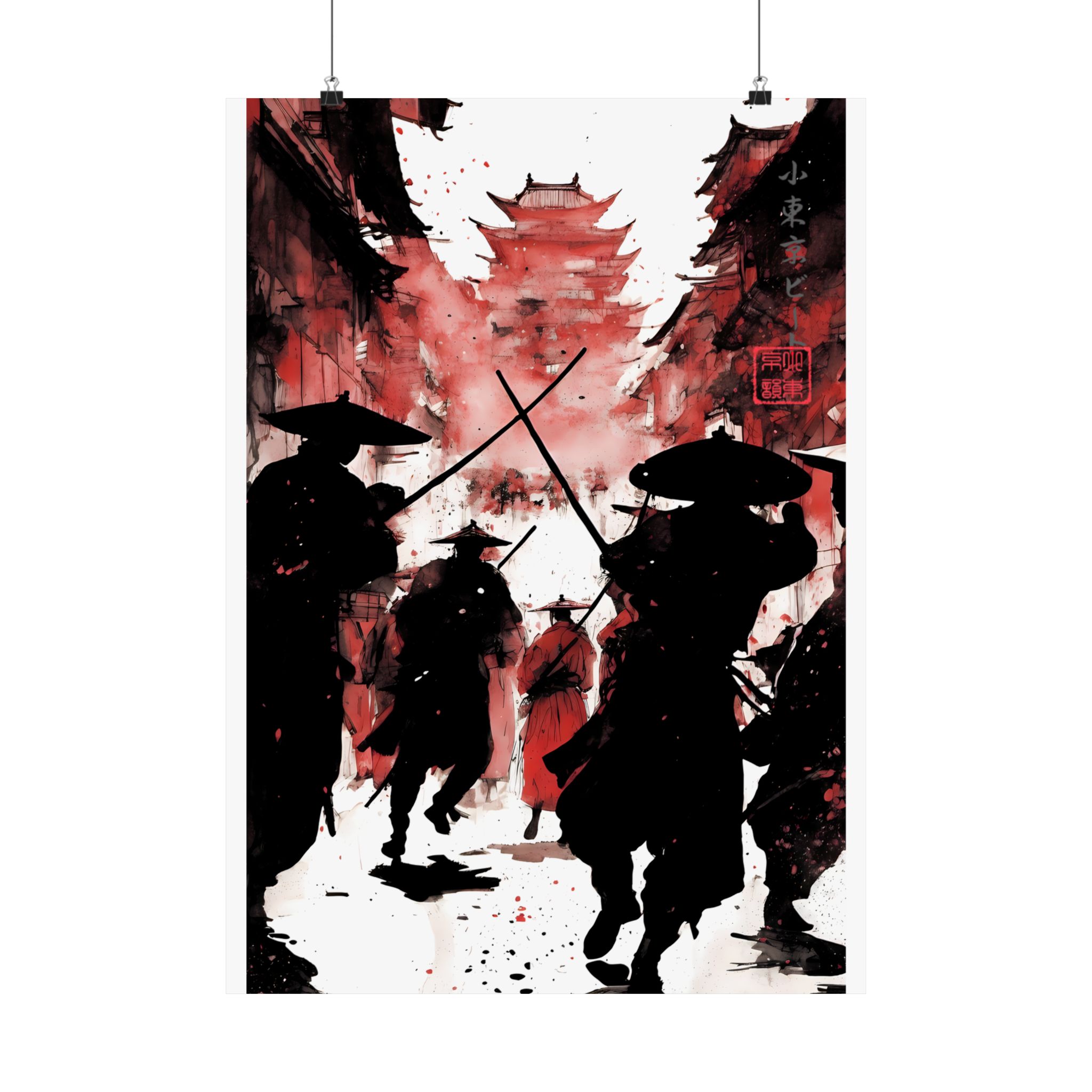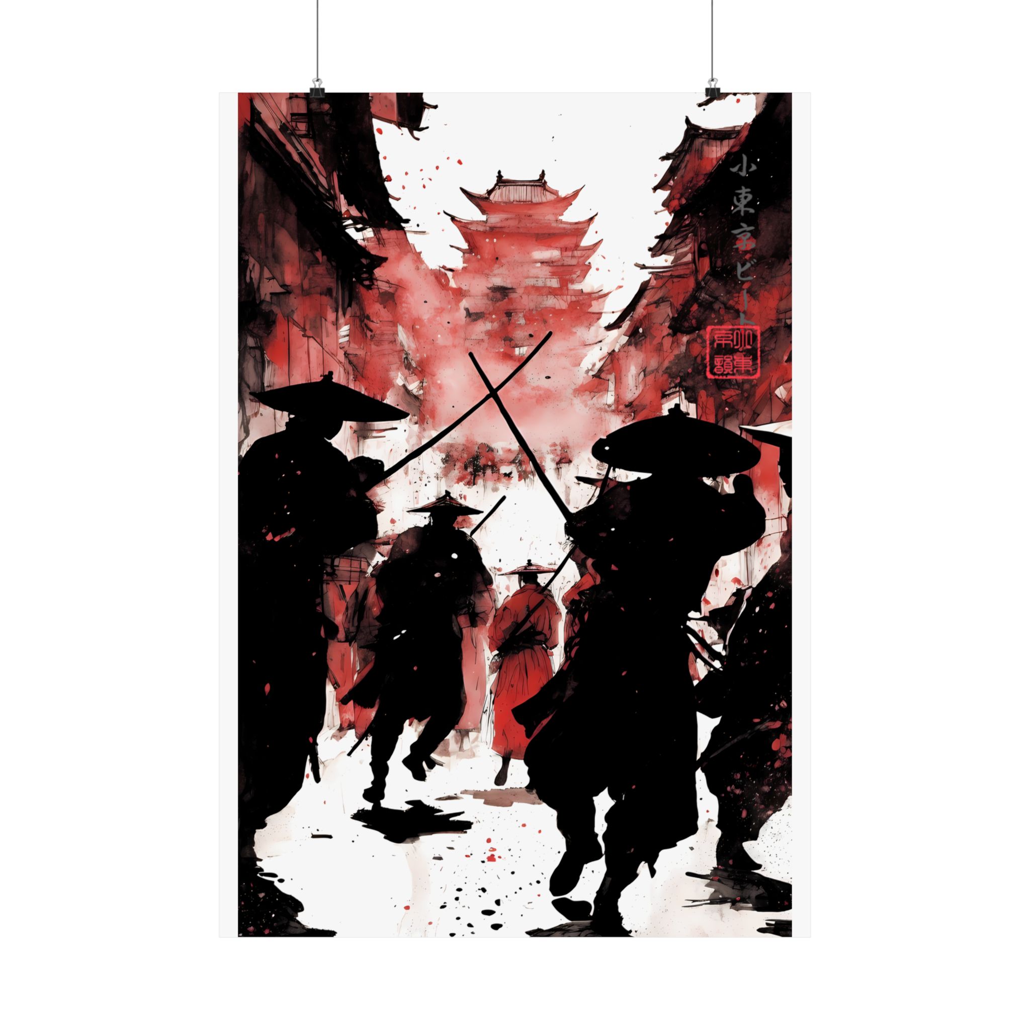Unleash bold energy with this Crimson Ronin Street Battle Poster from Lil Tokyo Beat — a cinematic fusion of Japanese-inspired warrior imagery and modern abstract art direction. This striking red edition captures shadowed samurai charging through a narrow street toward a towering pagoda, framed by dramatic smoke, ink splatter, and deep crimson tones. The powerful silhouettes, crossed swords, and layered textures create a gallery-style piece that feels intense, timeless, and emotionally charged. Designed for fans of samurai culture, anime-inspired aesthetics, warrior symbolism, and bold wall decor, this poster transforms any space into a statement of motion, courage, and atmosphere. Perfect for home offices, studios, game rooms, and collectors who appreciate art-driven storytelling. Kool. Artful. Timeless. A New Voice in Wall Art Culture.