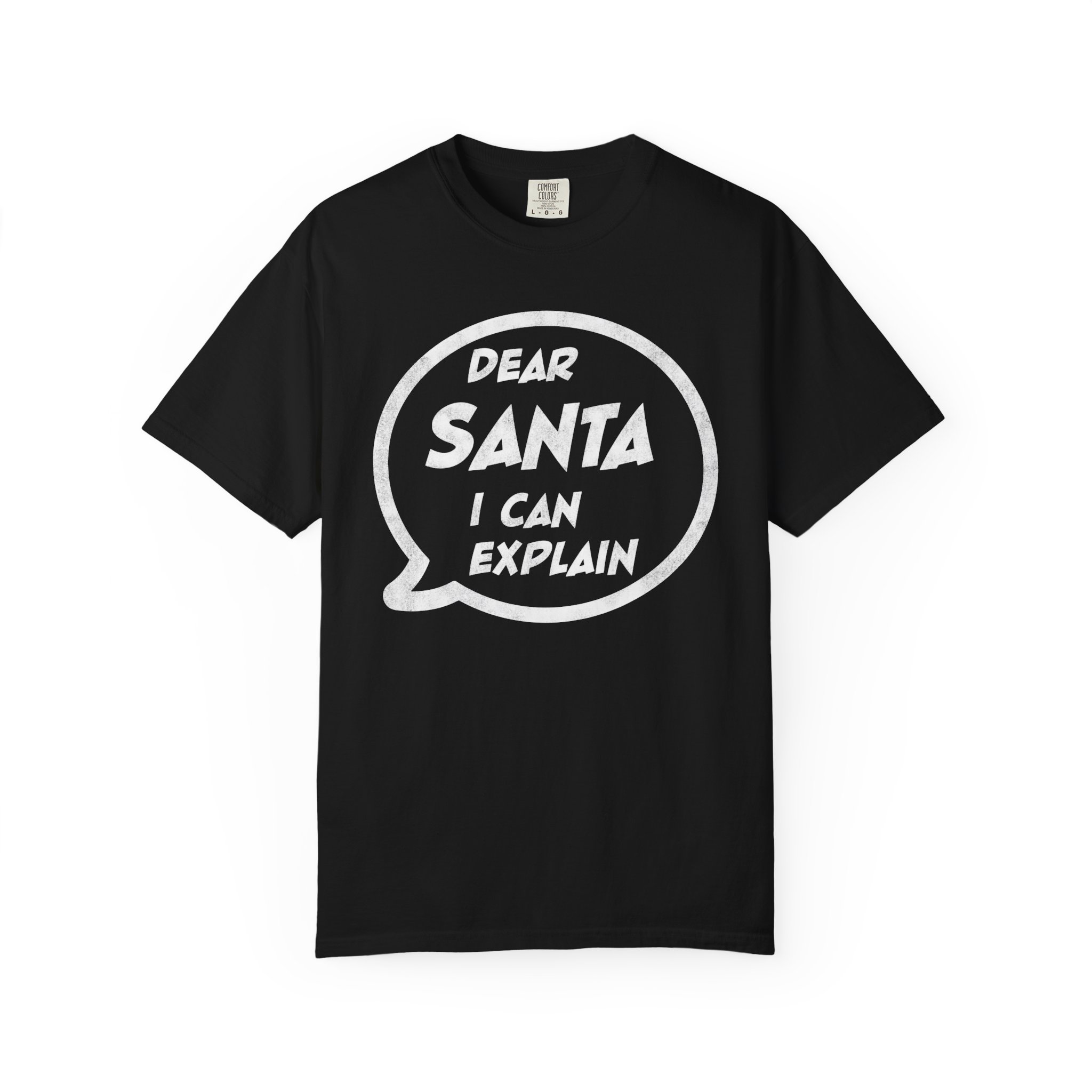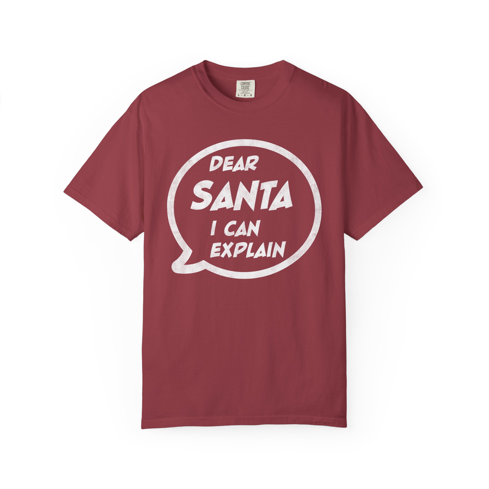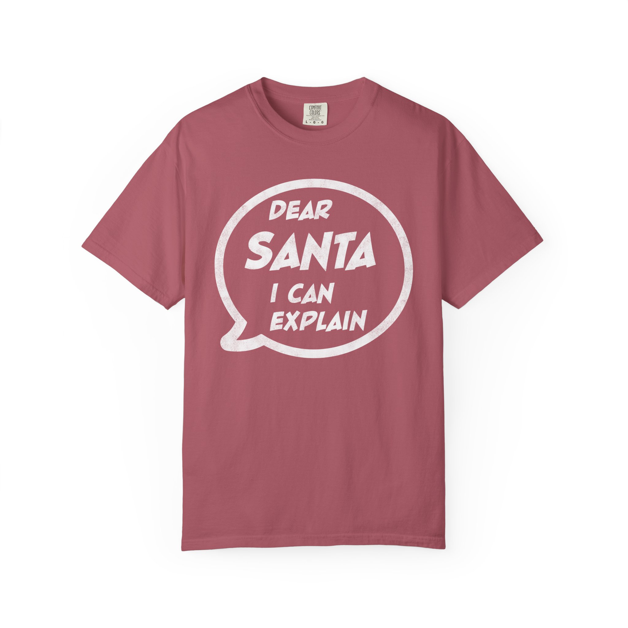 This garment-dyed tee brings a warm, lived-in feel to holiday mischief. Soft, heavyweight cotton and a relaxed cut make it a cozy layer for chilly nights by the fire or loud, laughter-filled family gatherings. The bold speech-bubble print — “Dear Santa, I can explain” — reads like a wink to everyone who knows they’ve been delightfully dubious this year. It wears like an old favorite from the first wash, fading into the color and texture of real winter memories.