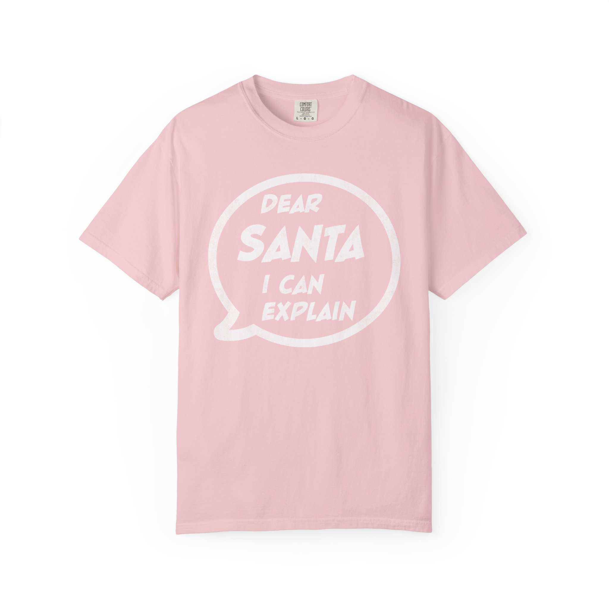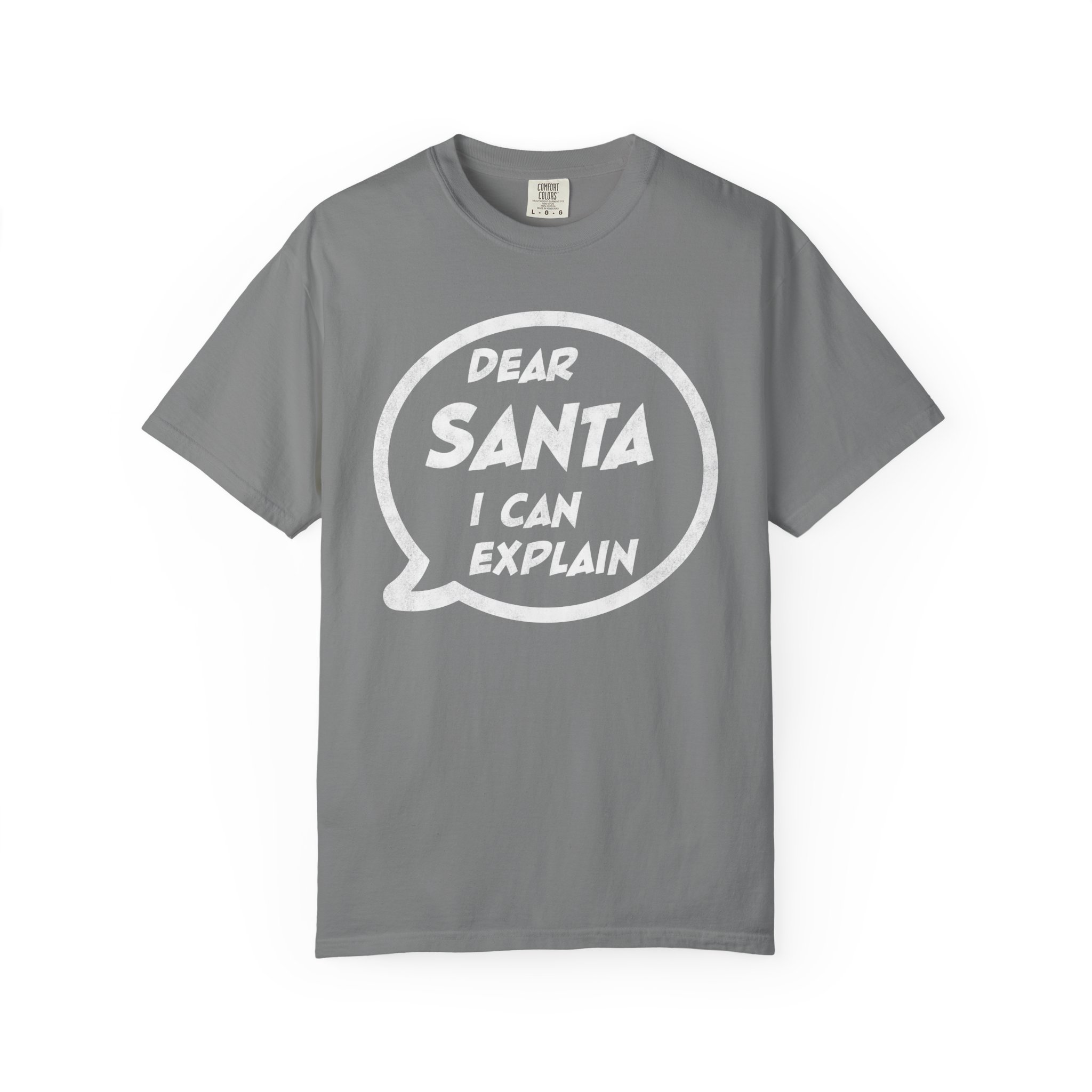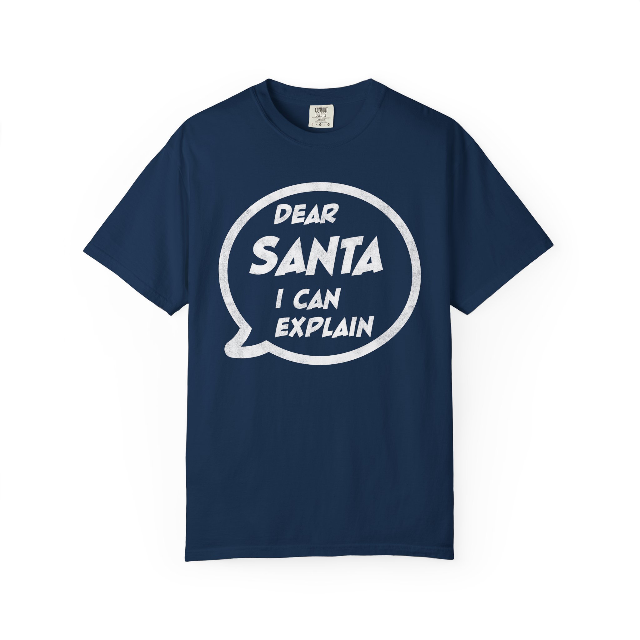 This garment-dyed tee brings a warm, lived-in feel to holiday mischief. Soft, heavyweight cotton and a relaxed cut make it a cozy layer for chilly nights by the fire or loud, laughter-filled family gatherings. The bold speech-bubble print — “Dear Santa, I can explain” — reads like a wink to everyone who knows they’ve been delightfully dubious this year. It wears like an old favorite from the first wash, fading into the color and texture of real winter memories.