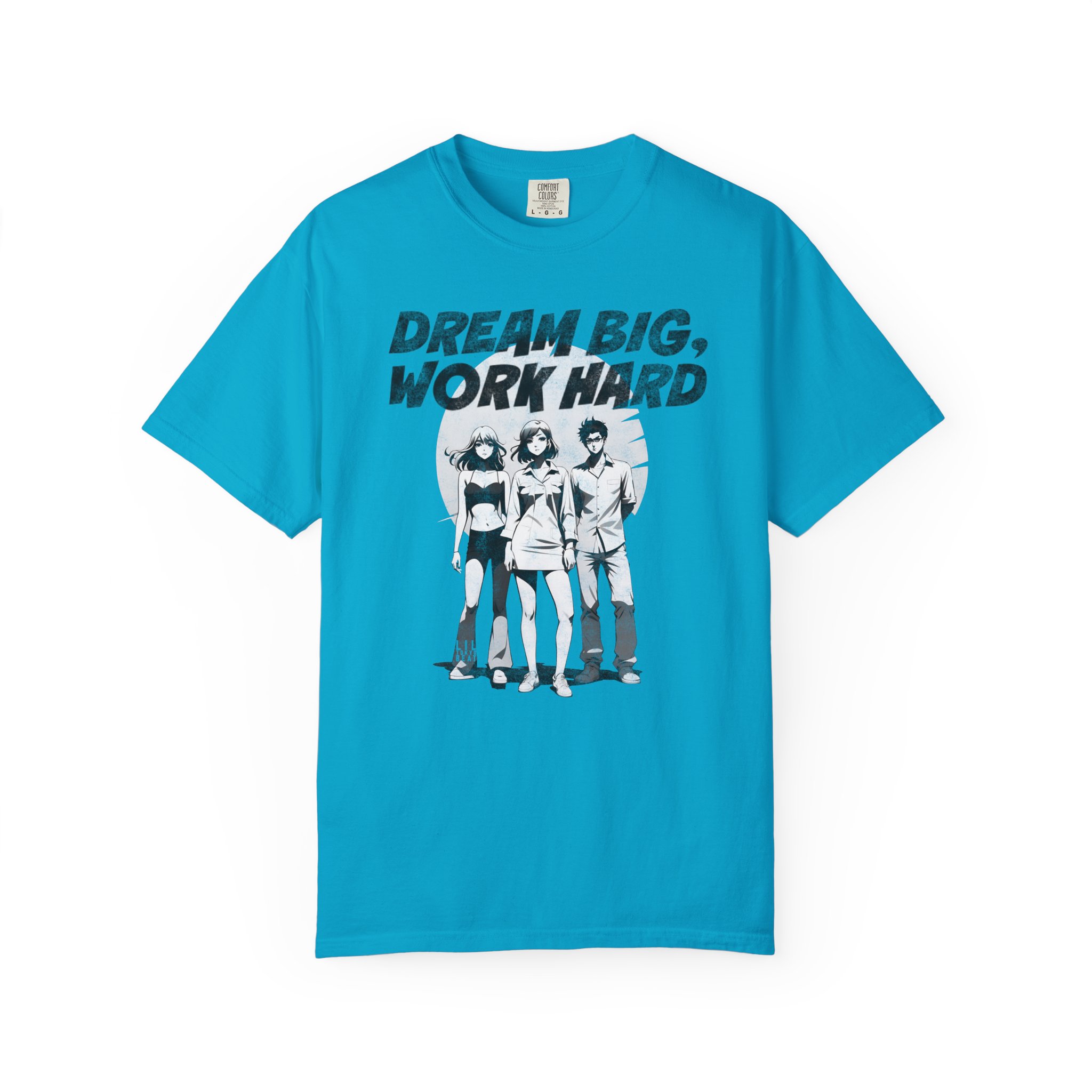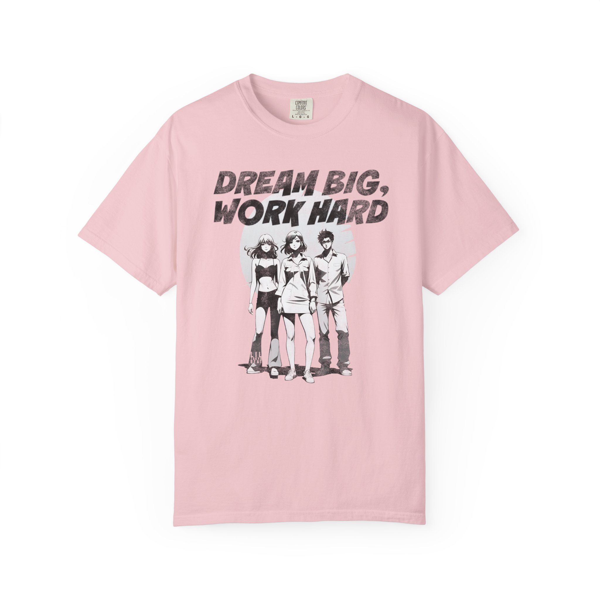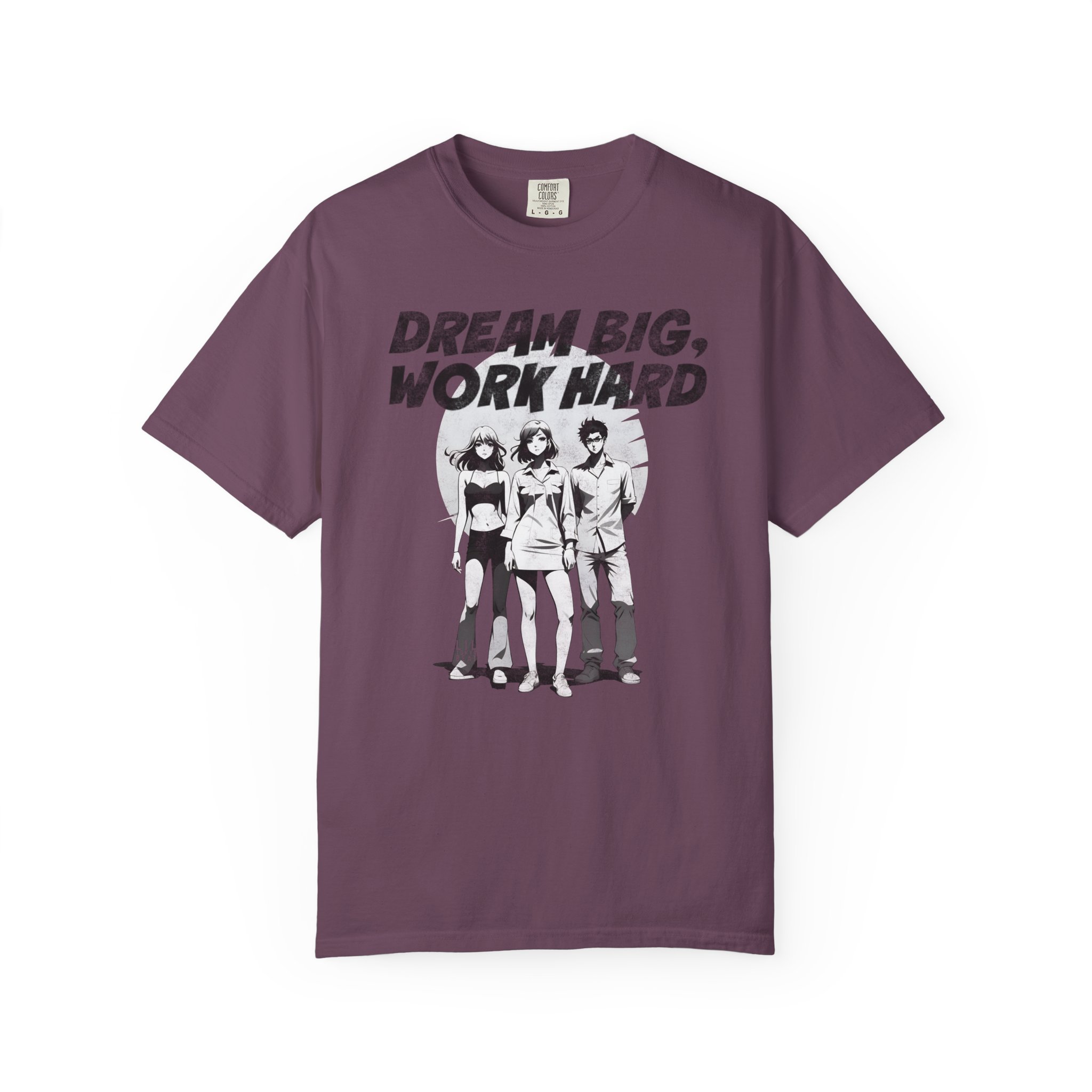 This vintage-inspired tee channels quiet determination. The muted, garment-dyed color and soft, broken-in feel invite you to reach for bigger goals without shouting about them. A subtle “Dream Big, Work Hard” trio graphic sits like a daily nod on your chest — worn alone for low-key motivation or layered under a flannel when the day demands focus. It moves with you: relaxed through the shoulders, durable at the seams, and lived-in from the first wear. For people who value steady effort over noise, this shirt becomes part of the routine — the one you grab before early shifts, late studio sessions, or weekend hustles. It ages gracefully; the color softens, the message stays the same.