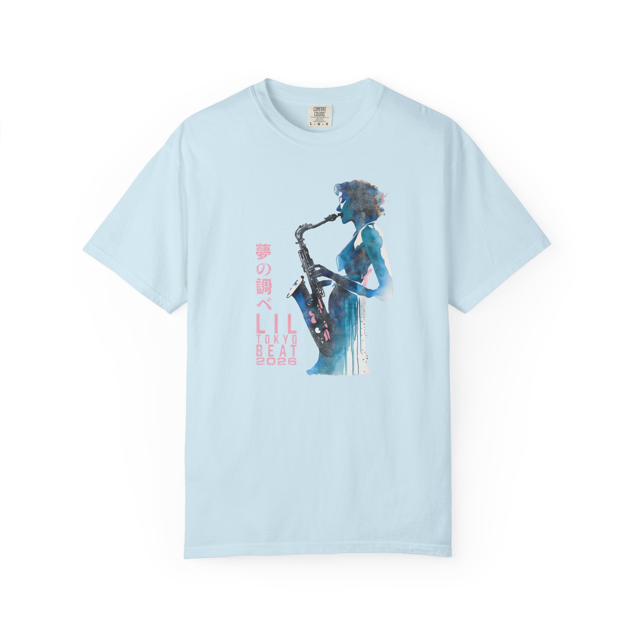 Immerse yourself in the mood of late‑night jazz and dreamy soundscapes with this expressive music‑inspired graphic T-shirt from Lil Tokyo Beat. The design features a stylized saxophone player rendered in flowing watercolor tones, paired with Japanese text that evokes the feeling of drifting melodies and creative freedom. Blending modern illustration with atmospheric musical energy, this tee is perfect for jazz lovers, musicians, artists, and anyone who connects with soulful, expressive visuals. Whether worn for concerts, creative nights out, studio sessions, or everyday streetwear, this shirt captures the spirit of rhythm, emotion, and artistic depth. Created under the Lil Tokyo Beat philosophy—Kool. Artful. Timeless.—this design continues the brand vision as A New Voice in Tee Culture.