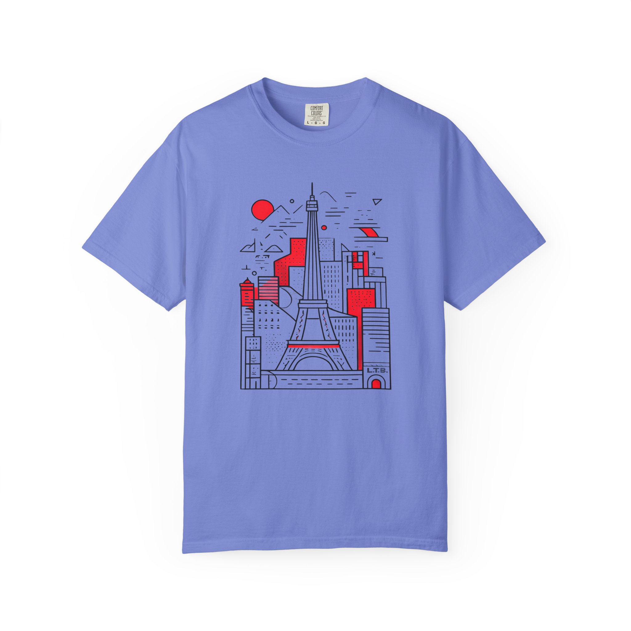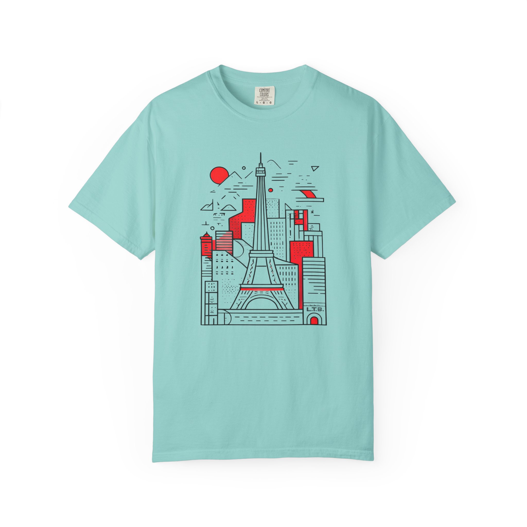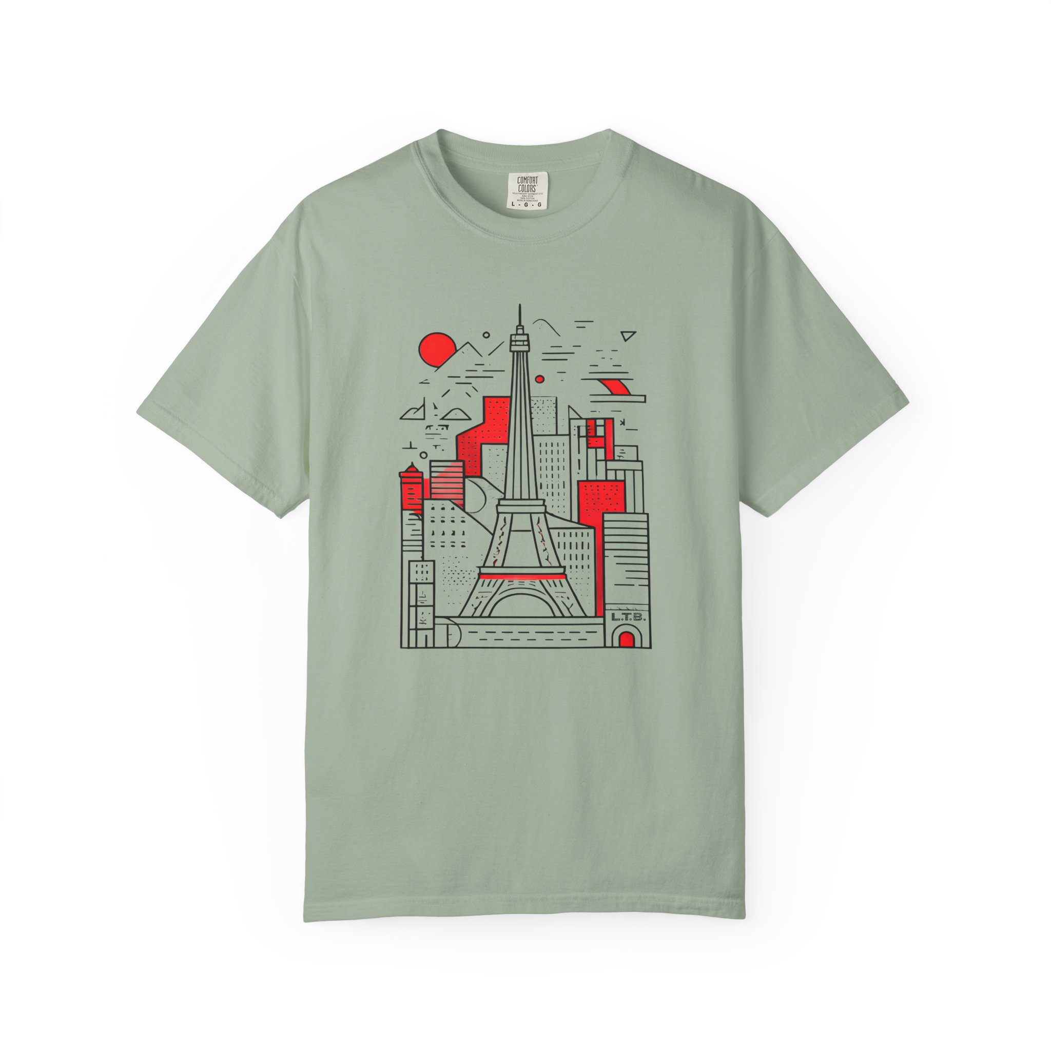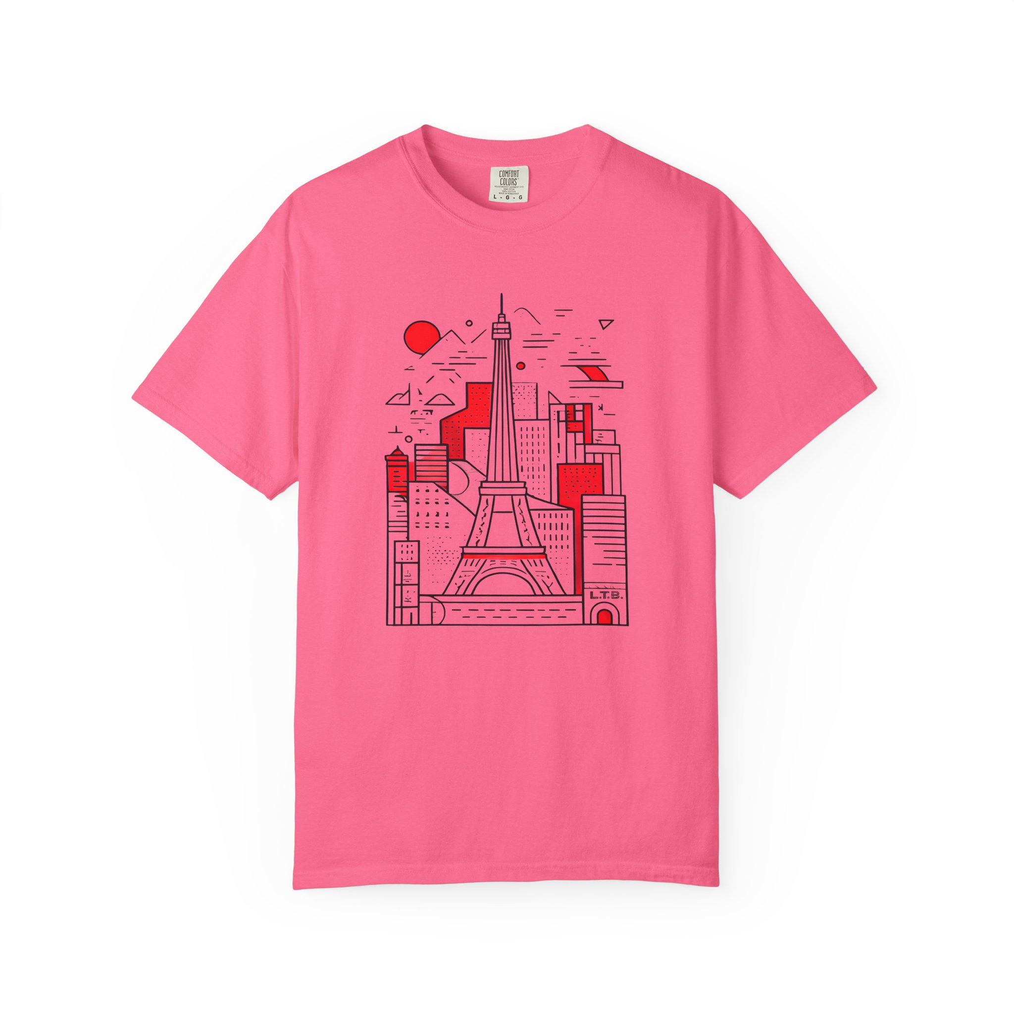 A soft, garment-dyed tee printed with a minimalist cityscape centered on the Eiffel Tower. The heavyweight 100% ring-spun cotton drapes with a relaxed fit and a lived-in feel from the post-construction dyeing. Clean red and black linework gives the design a modern, urban vibe that reads like a travel sketch — wear it on strolls through neighborhoods, at casual gallery nights, or when you’re remembering a favorite trip. The tubular knit and double-needle stitching keep the silhouette simple and durable, while the sewn-in label and pre-shrunk fabric make this a low-maintenance go-to for everyday wear.