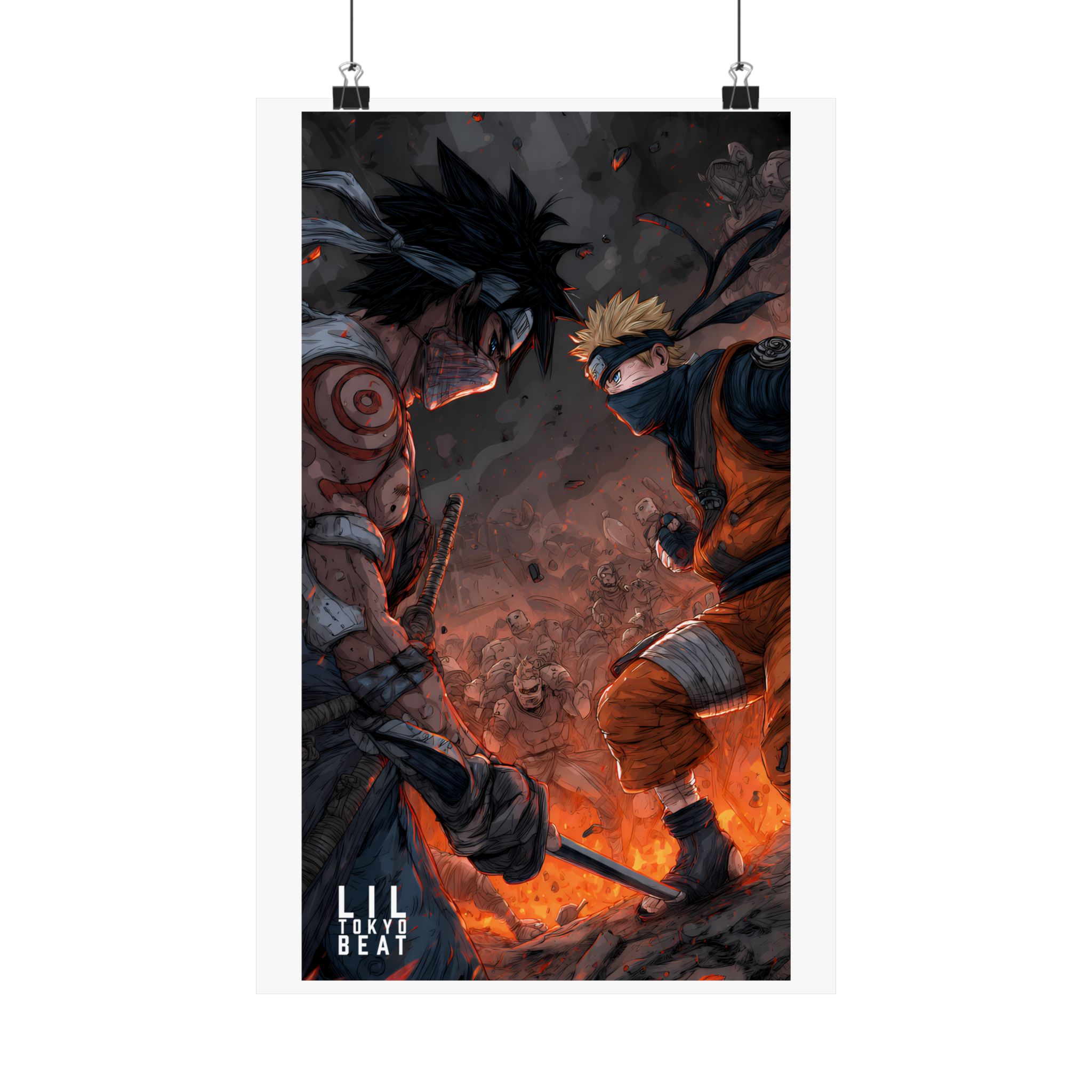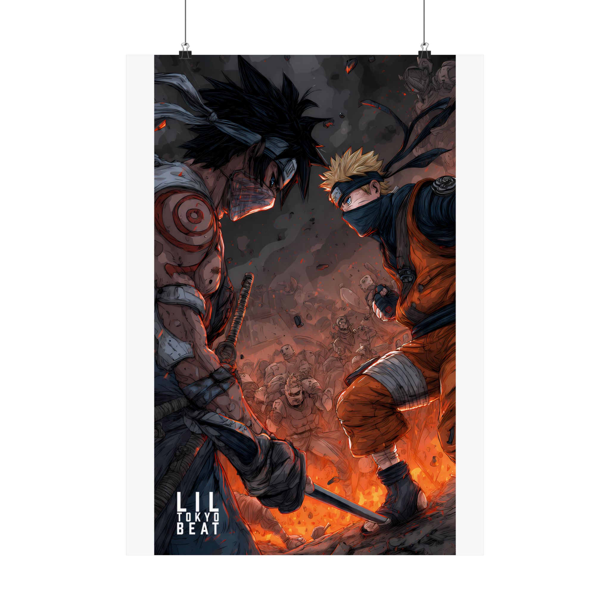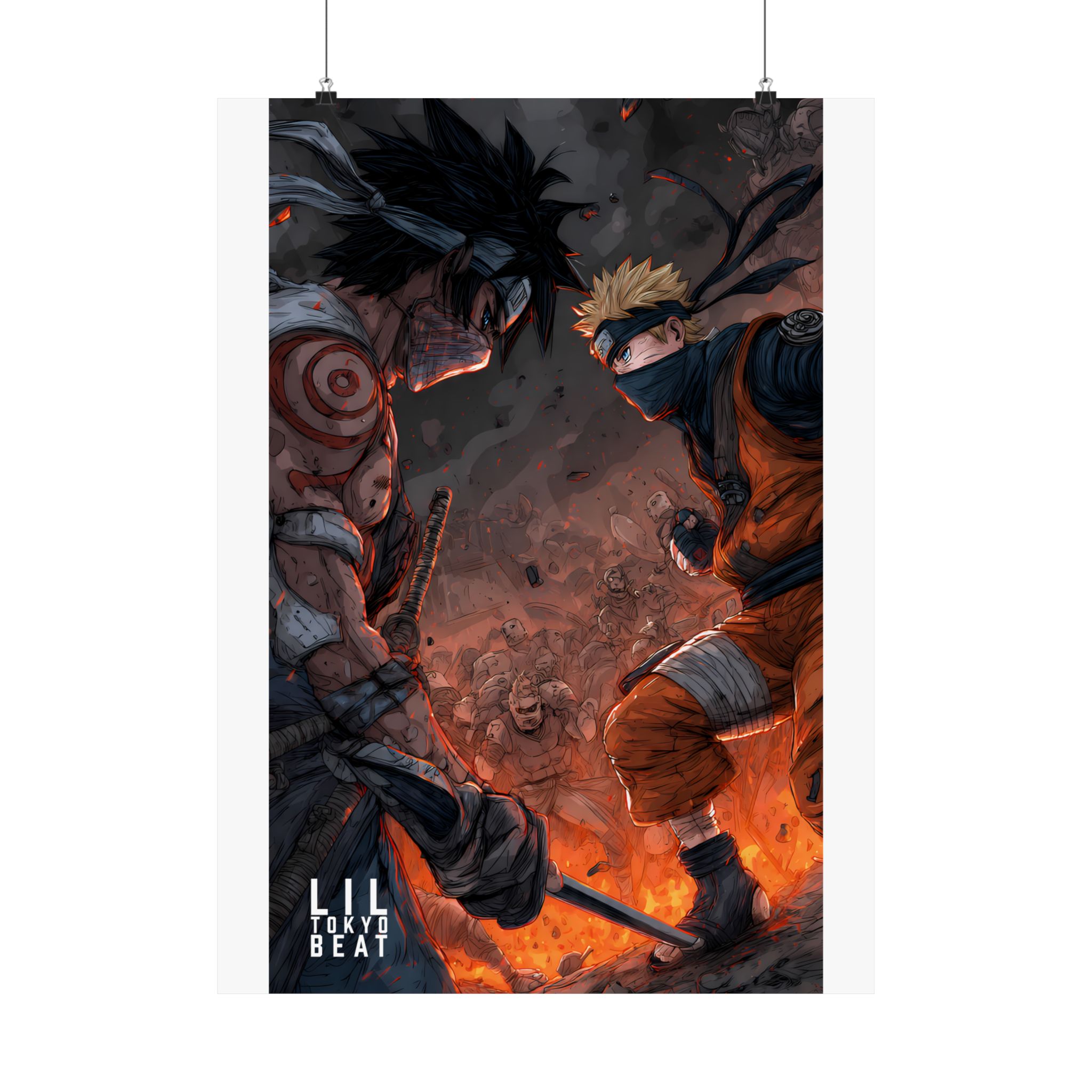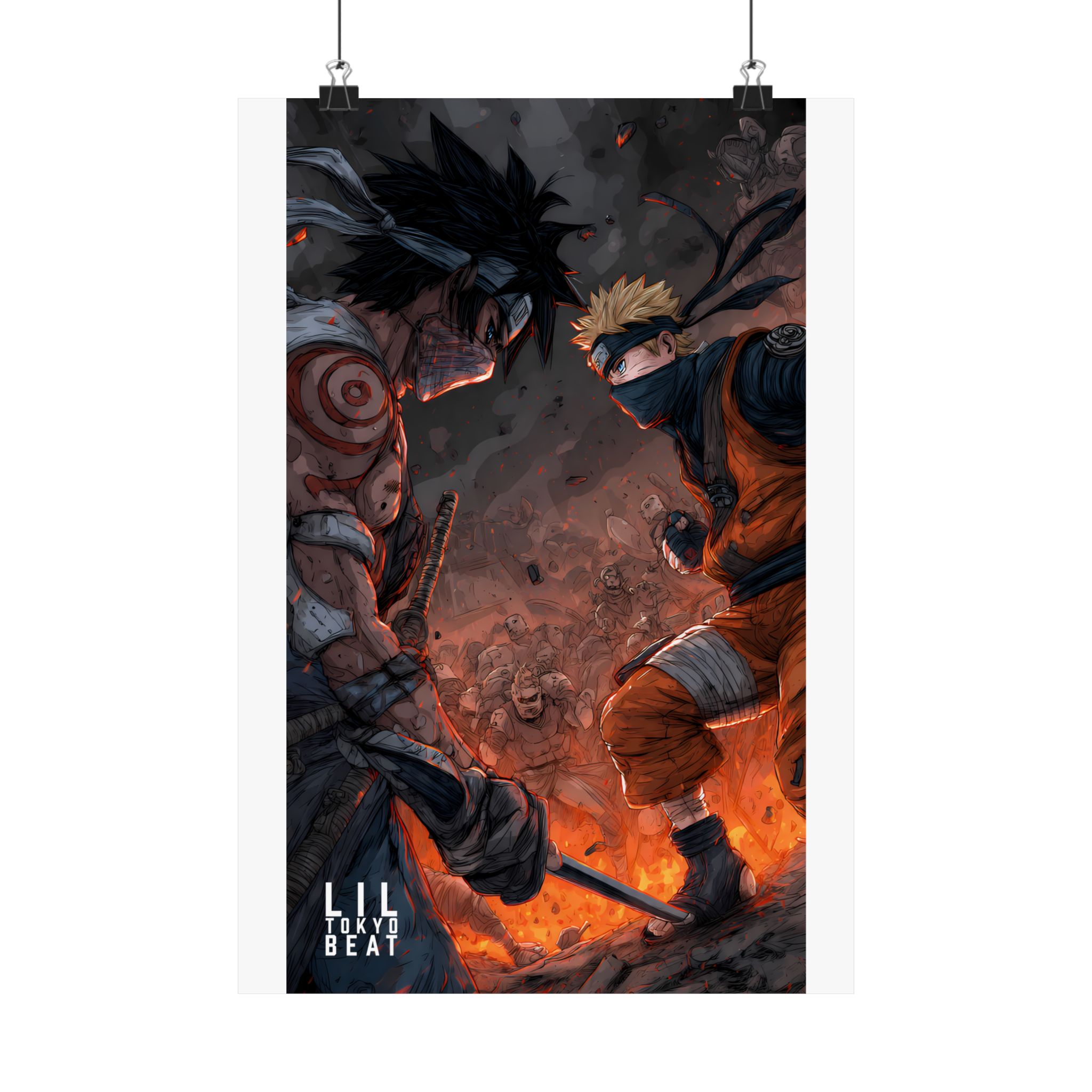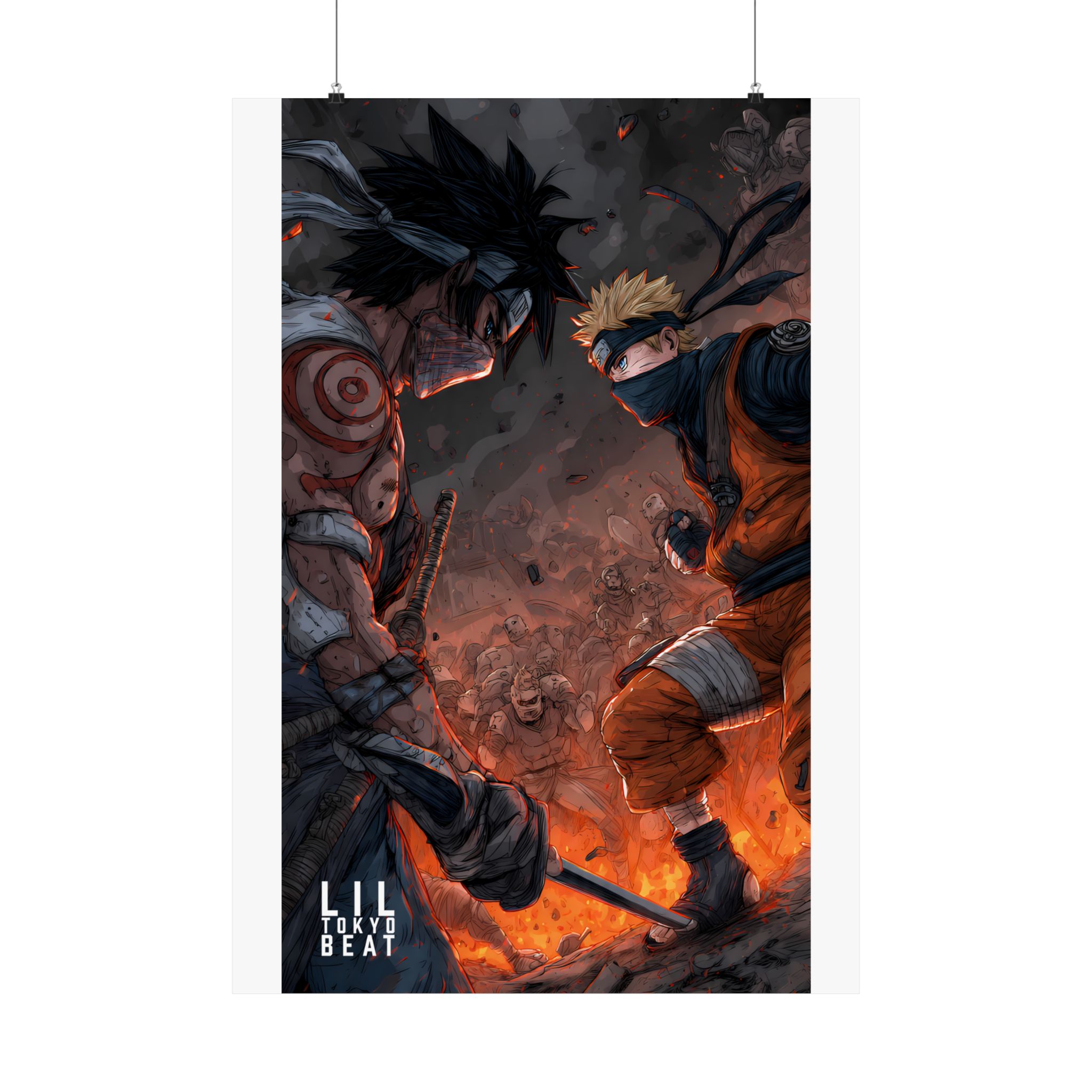 This epic ninja rival battle poster captures explosive energy, tension, and cinematic warrior storytelling. Featuring two powerful anime-style fighters locked in a dramatic face-off, surrounded by fire, debris, and charging figures, this artwork delivers high-impact action and intense emotion. The fiery color palette, dynamic lighting, and dramatic composition create a bold centerpiece that brings motion and story to any room. Perfect for fans of anime-style art, ninja warriors, rival battles, gaming rooms, and modern pop-culture decor, this poster reflects Lil Tokyo Beat’s K.A.T. spirit — Kool, Artful, Timeless — turning your wall into a scene of courage, rivalry, and unstoppable force.