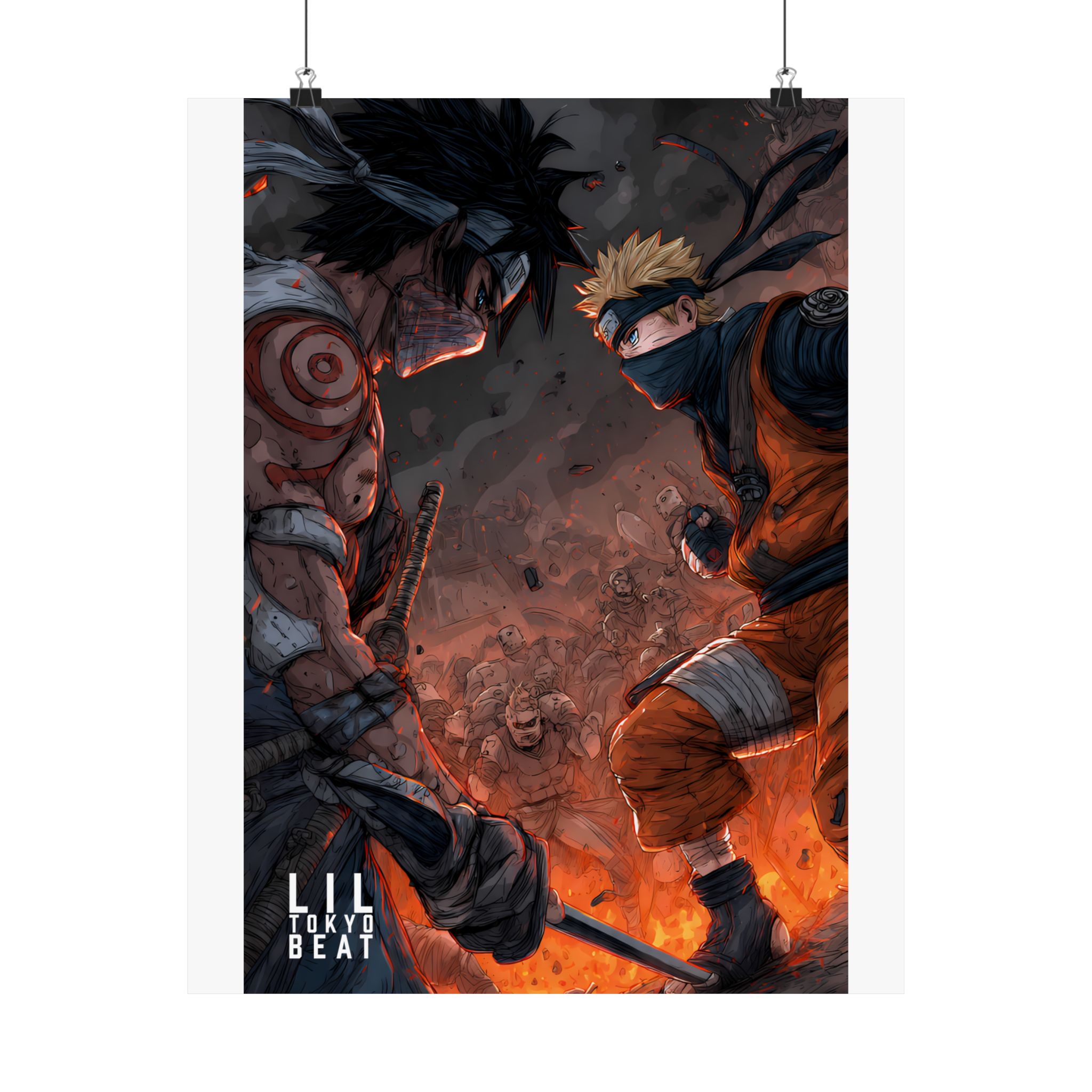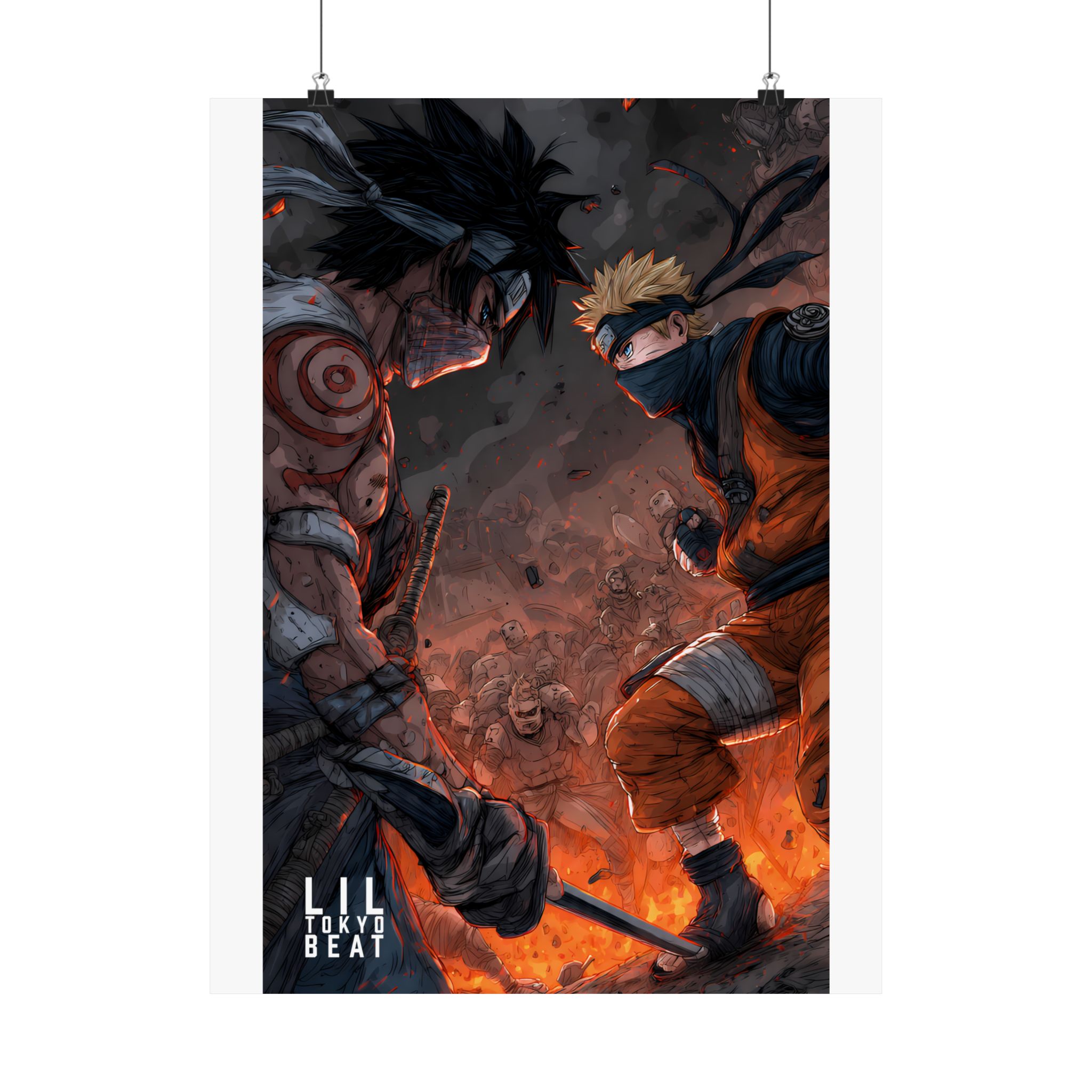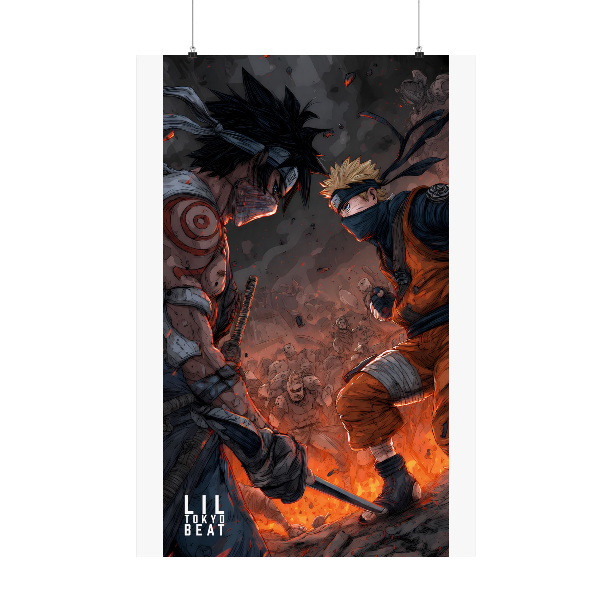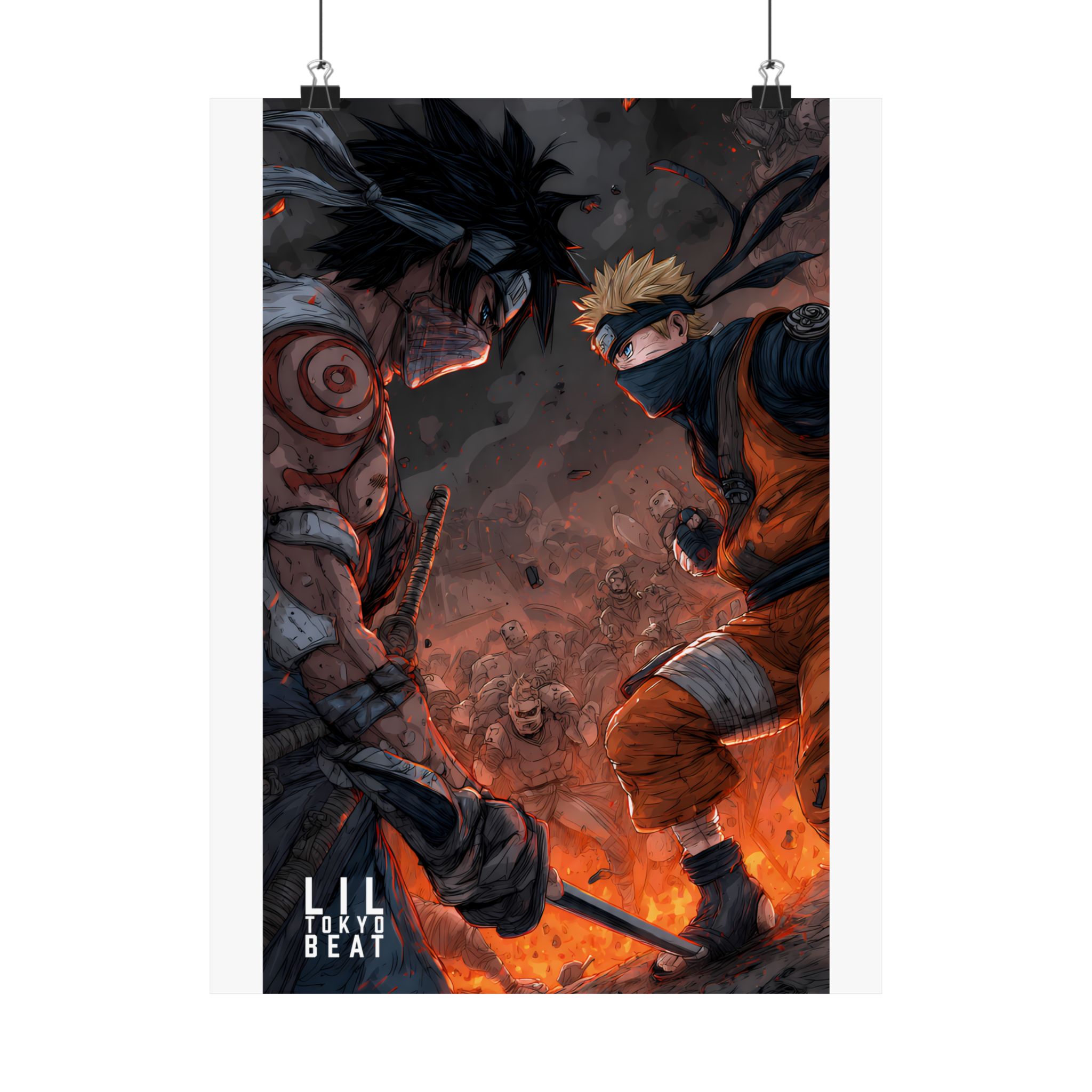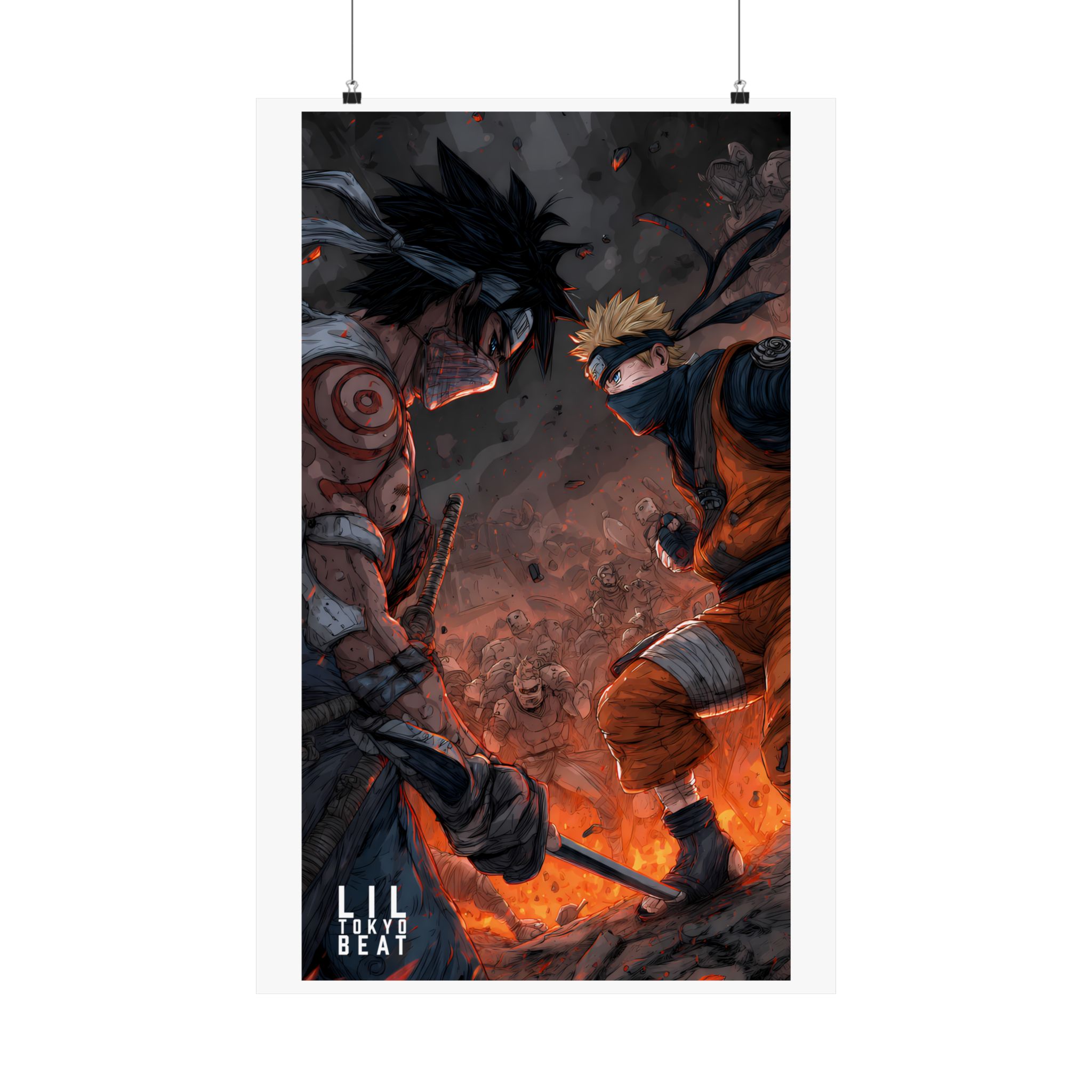 This epic ninja rival battle poster captures explosive energy, tension, and cinematic warrior storytelling. Featuring two powerful anime-style fighters locked in a dramatic face-off, surrounded by fire, debris, and charging figures, this artwork delivers high-impact action and intense emotion. The fiery color palette, dynamic lighting, and dramatic composition create a bold centerpiece that brings motion and story to any room. Perfect for fans of anime-style art, ninja warriors, rival battles, gaming rooms, and modern pop-culture decor, this poster reflects Lil Tokyo Beat’s K.A.T. spirit — Kool, Artful, Timeless — turning your wall into a scene of courage, rivalry, and unstoppable force.