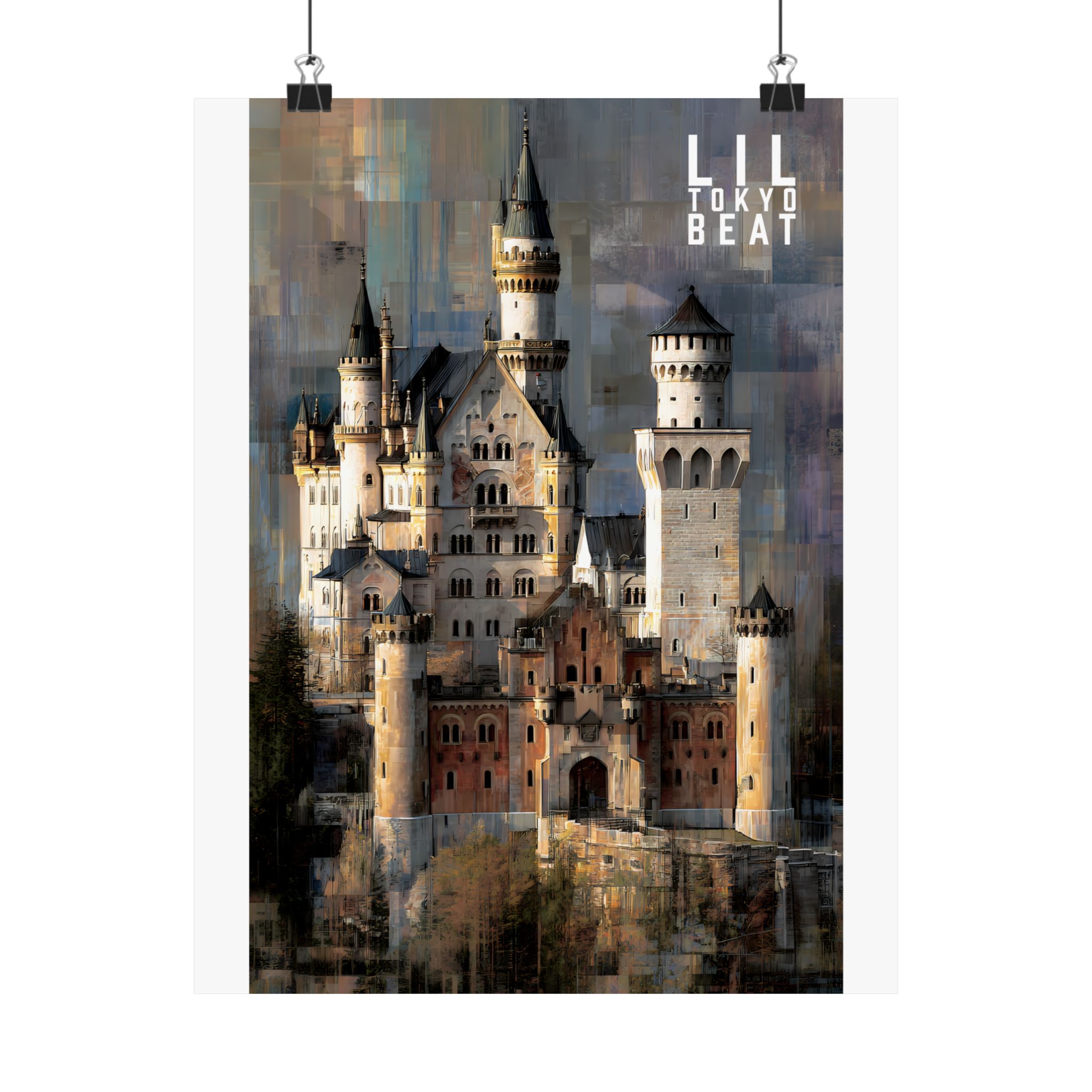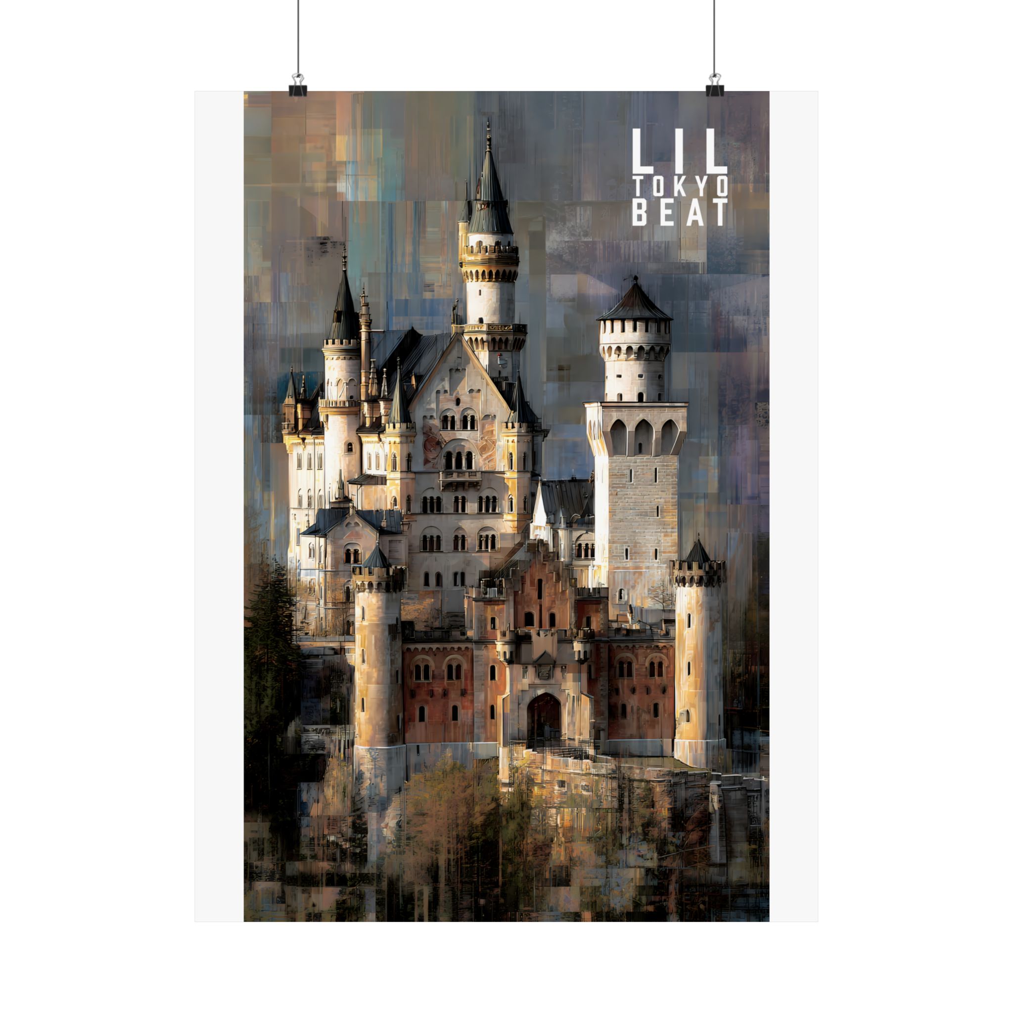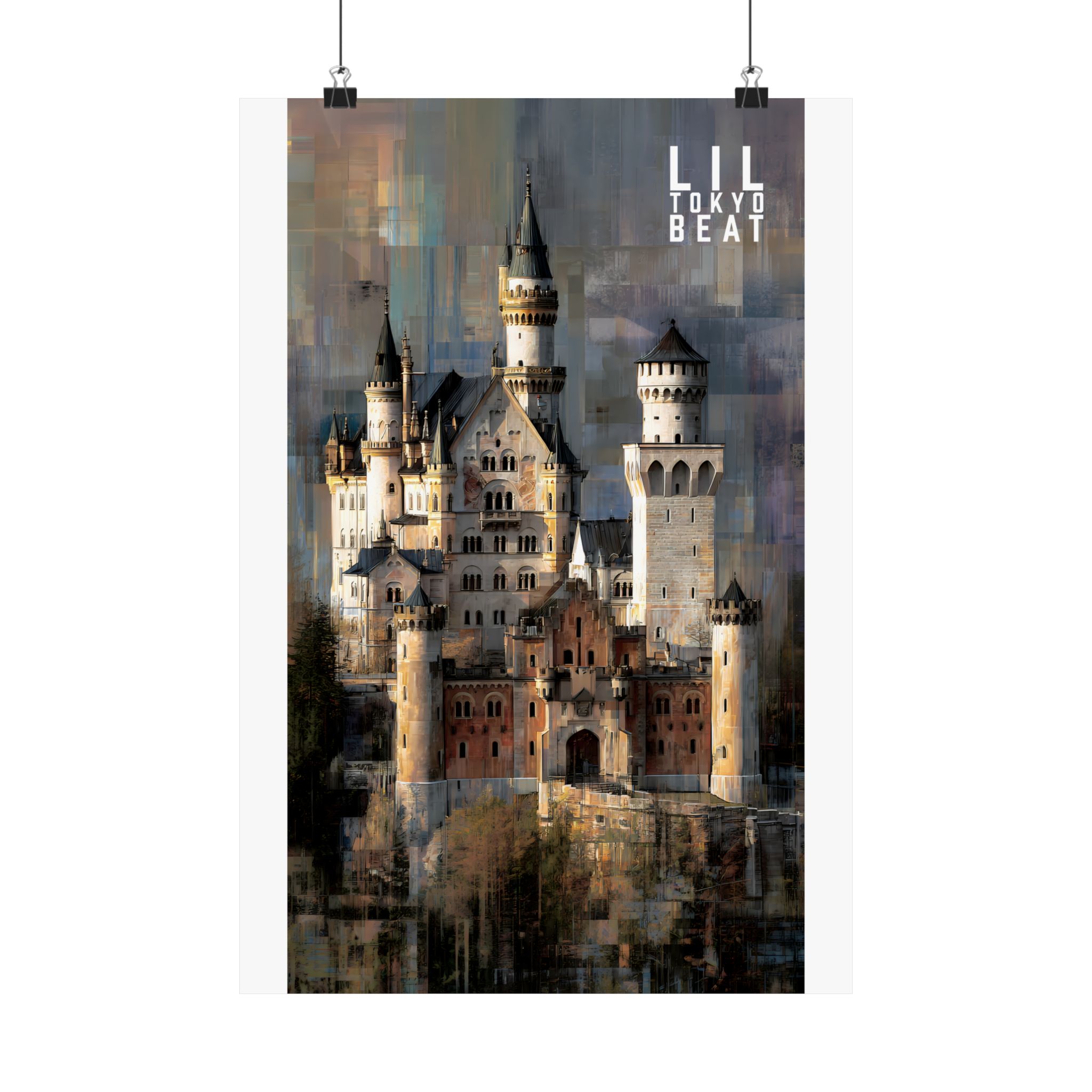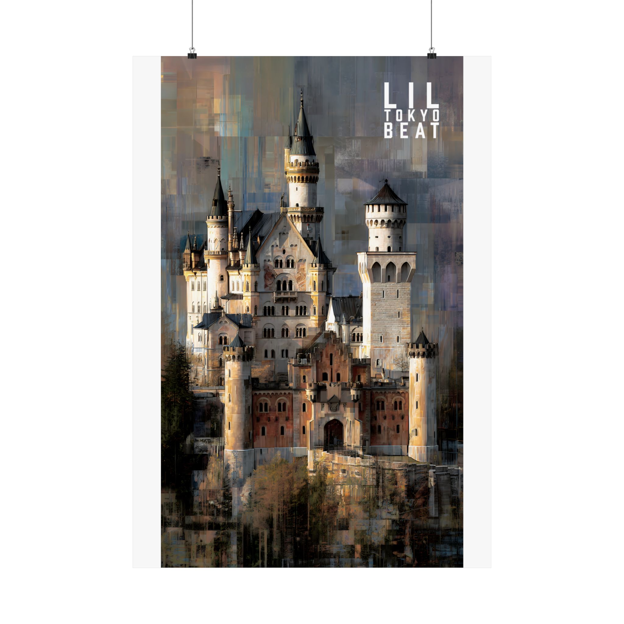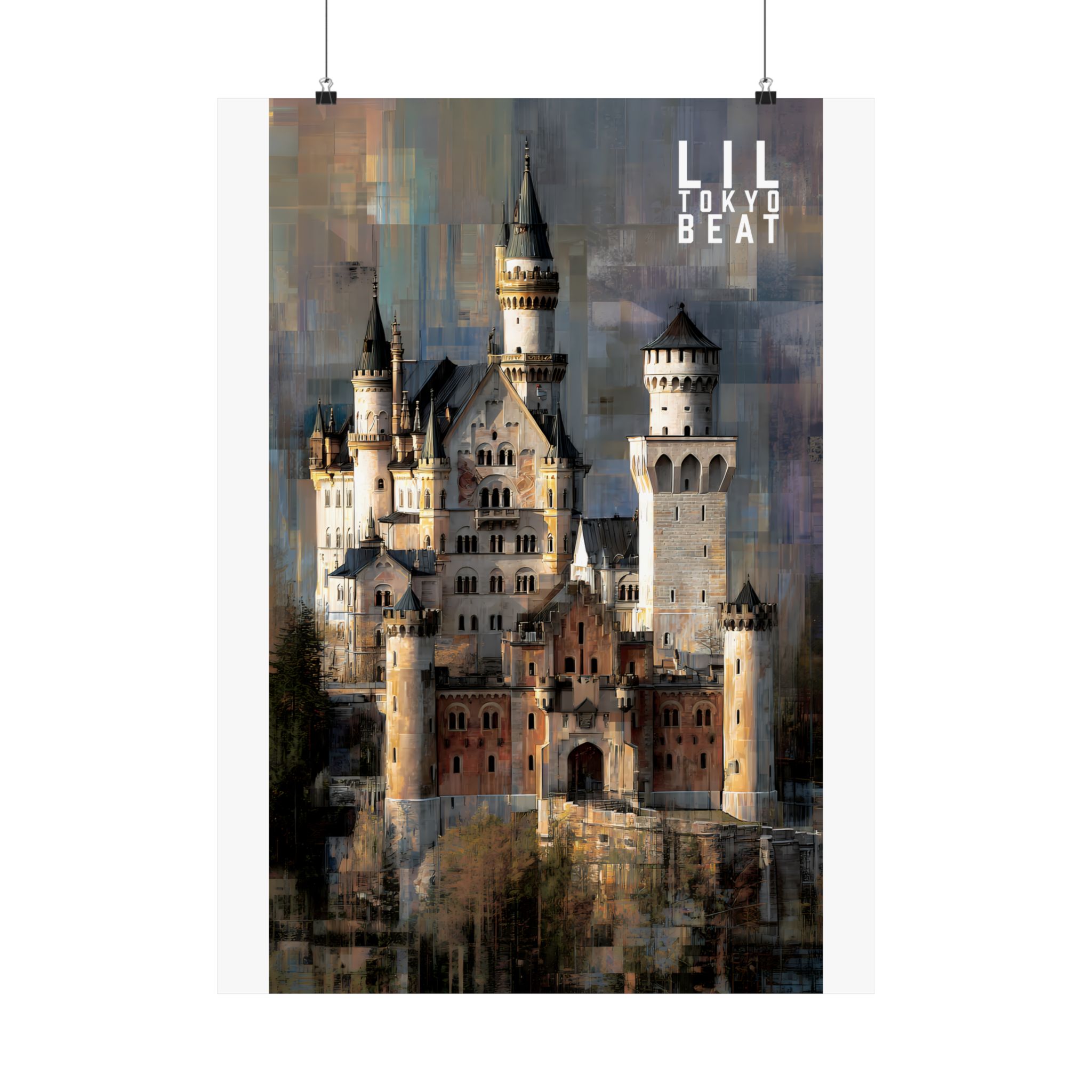 Step into storybook grandeur. This Lil Tokyo Beat vertical poster captures a majestic European-style castle rendered in textured, painterly abstraction. Soft stone tones blend with layered modern brushwork, creating a timeless balance between historic architecture and contemporary art energy. Designed for dreamers, travelers, and lovers of dramatic interiors, this piece brings cinematic atmosphere to living rooms, studios, and creative spaces. Kool. Artful. Timeless. A New Voice in Tee Culture — now expanding into statement wall décor. Elevate your space with architectural romance and bold visual storytelling.