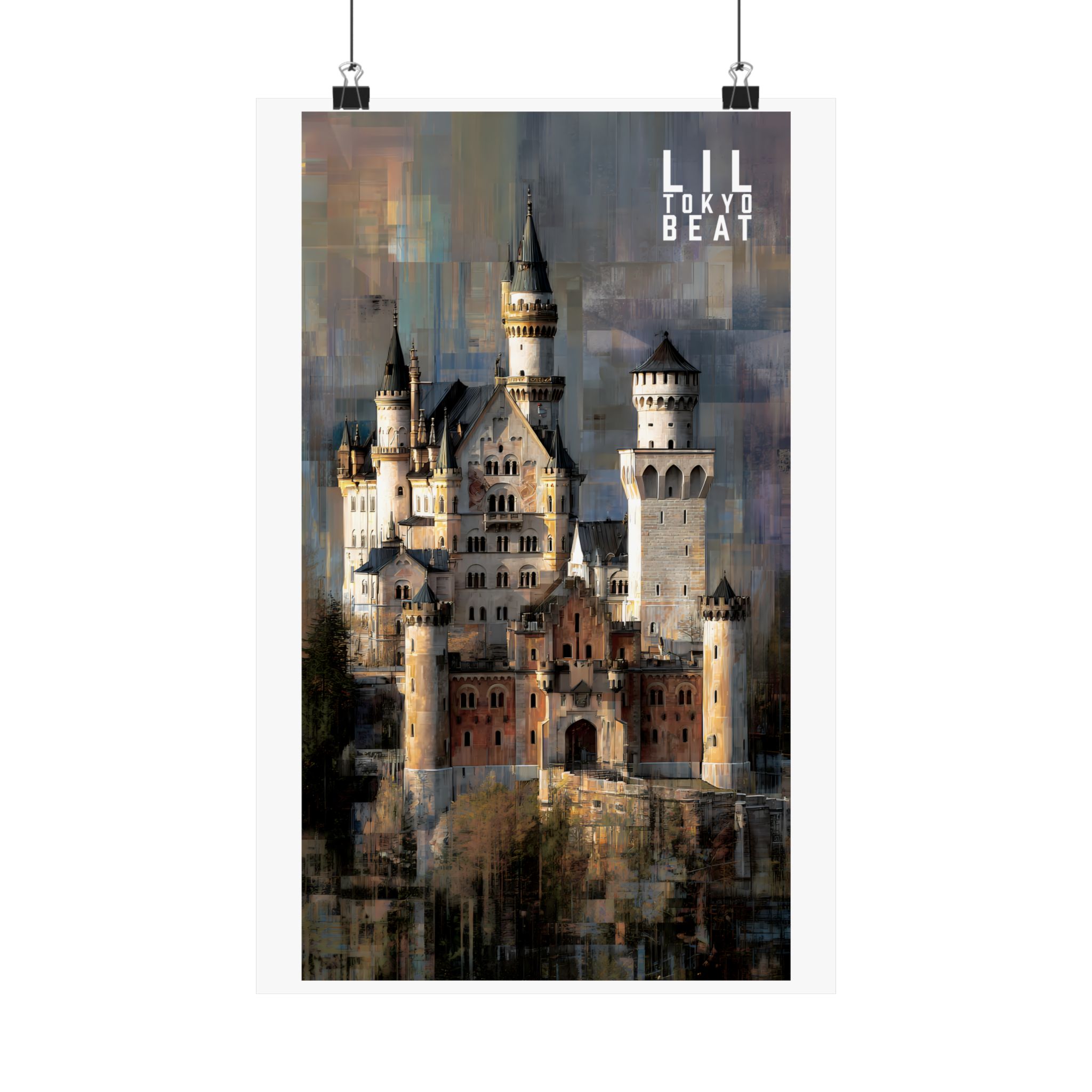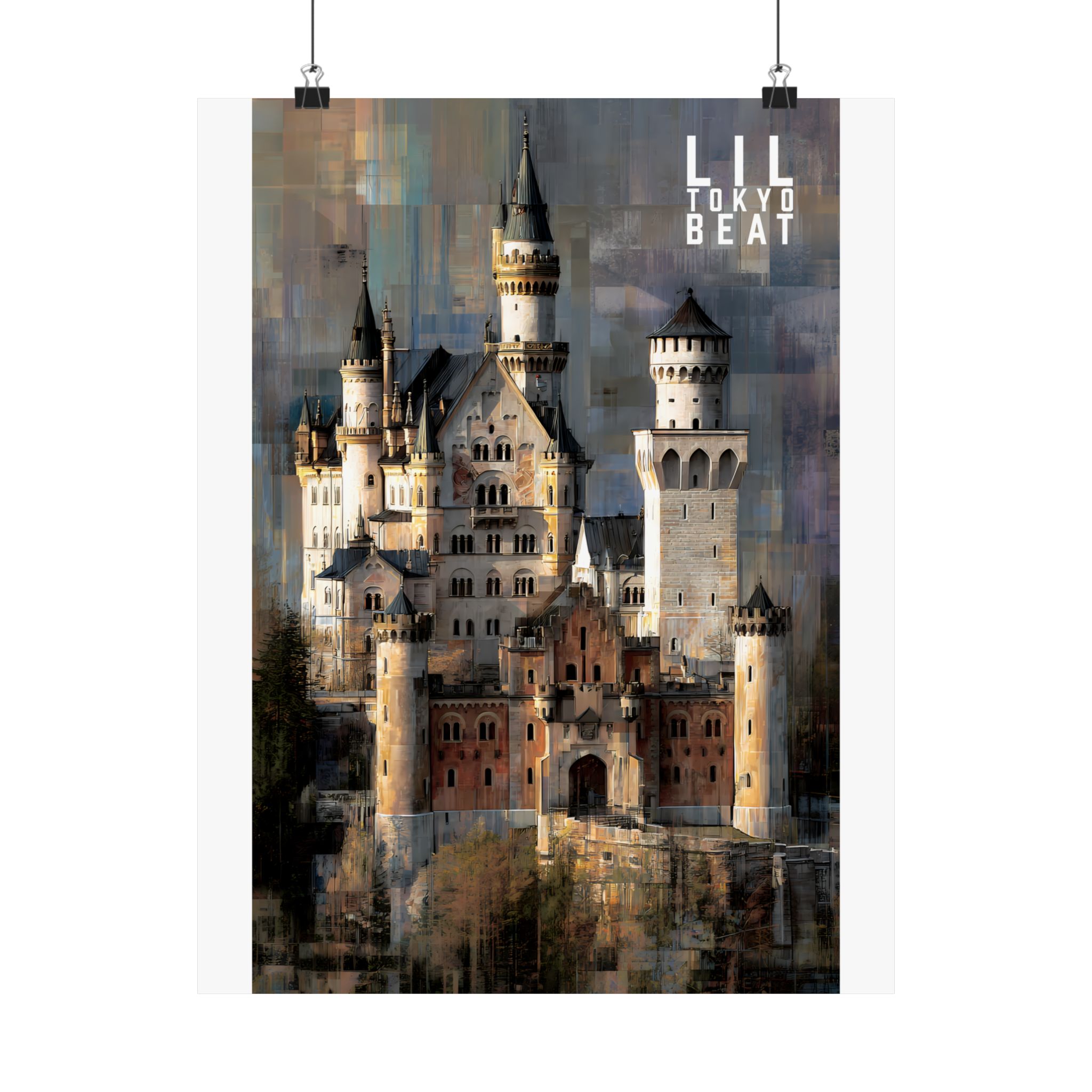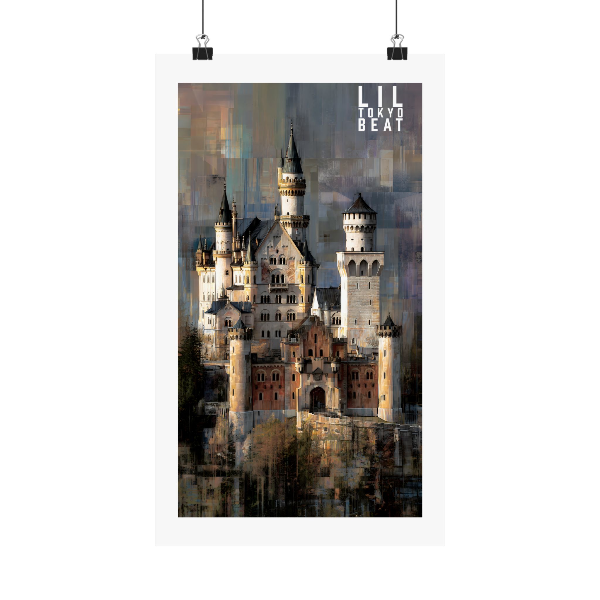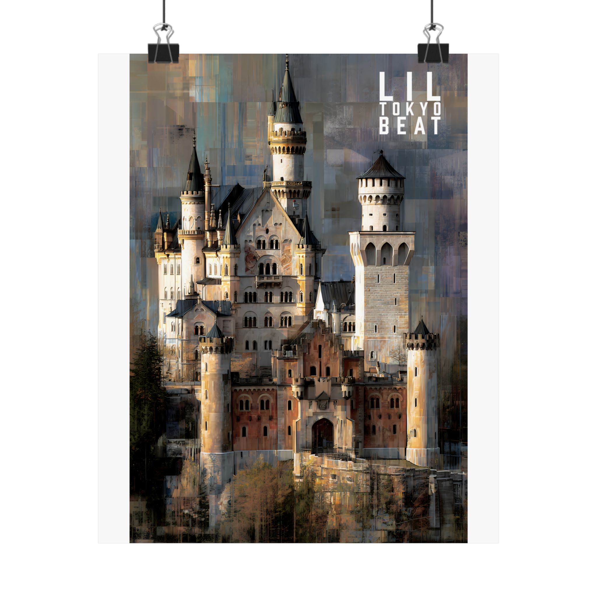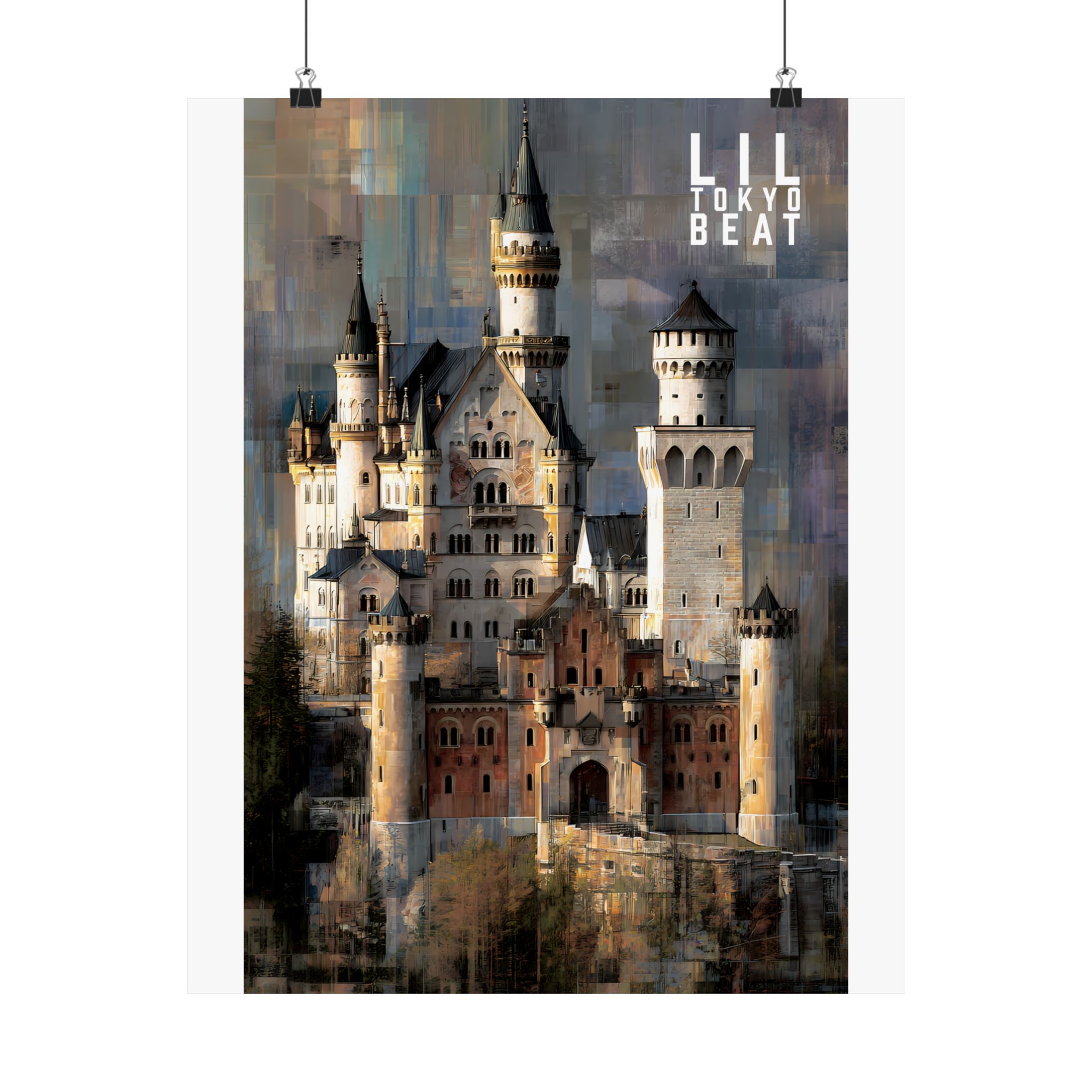 Step into storybook grandeur. This Lil Tokyo Beat vertical poster captures a majestic European-style castle rendered in textured, painterly abstraction. Soft stone tones blend with layered modern brushwork, creating a timeless balance between historic architecture and contemporary art energy. Designed for dreamers, travelers, and lovers of dramatic interiors, this piece brings cinematic atmosphere to living rooms, studios, and creative spaces. Kool. Artful. Timeless. A New Voice in Tee Culture — now expanding into statement wall décor. Elevate your space with architectural romance and bold visual storytelling.
