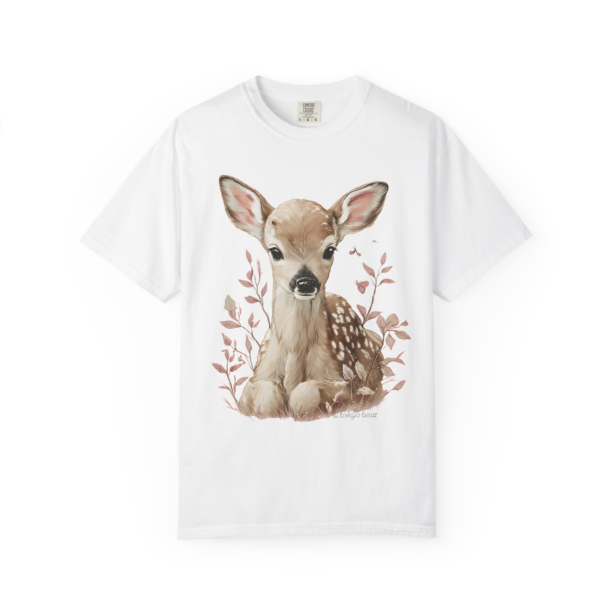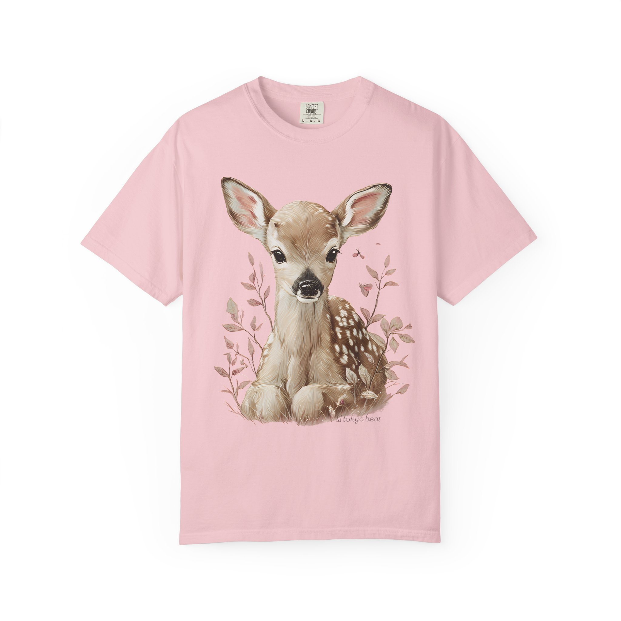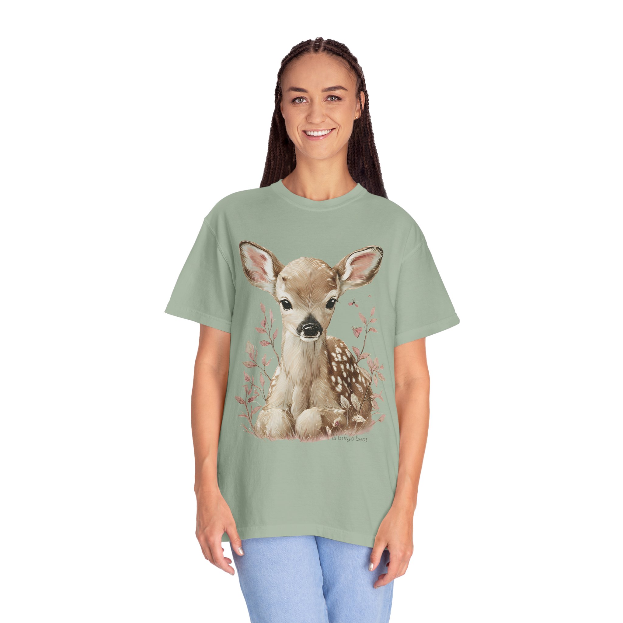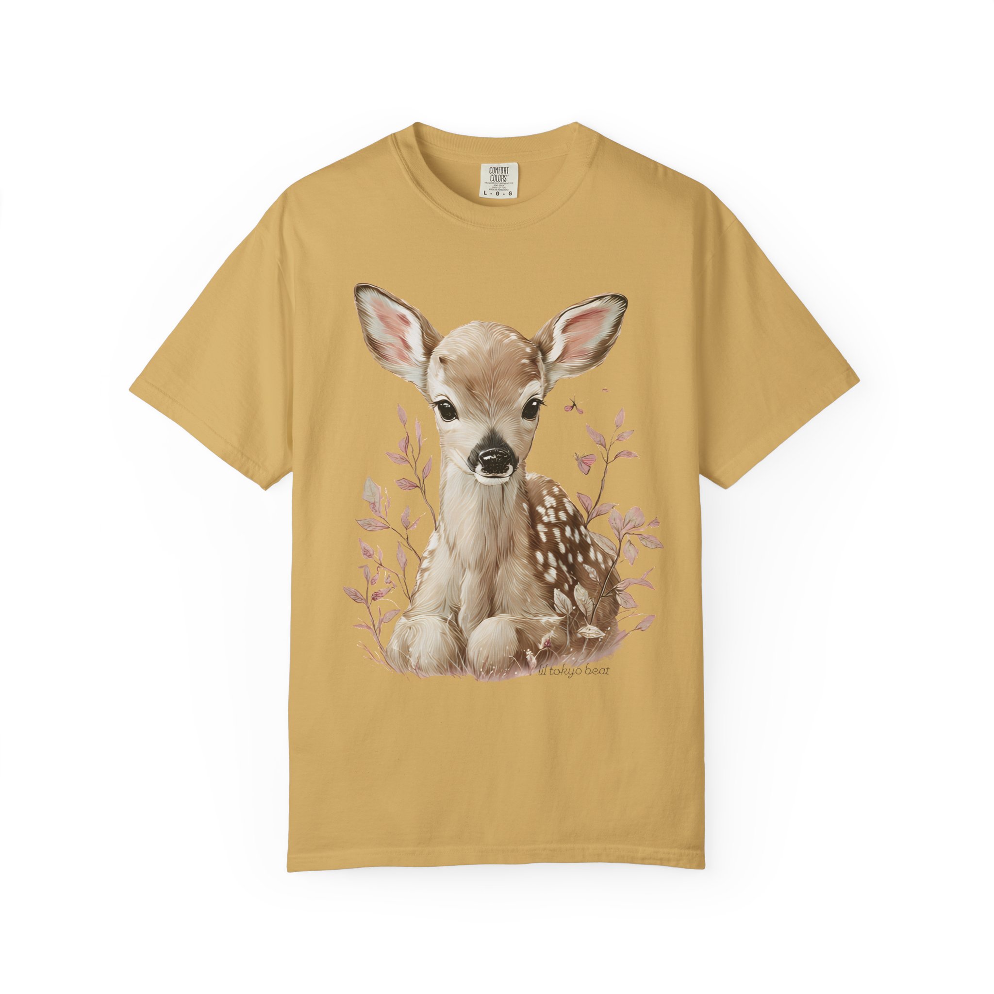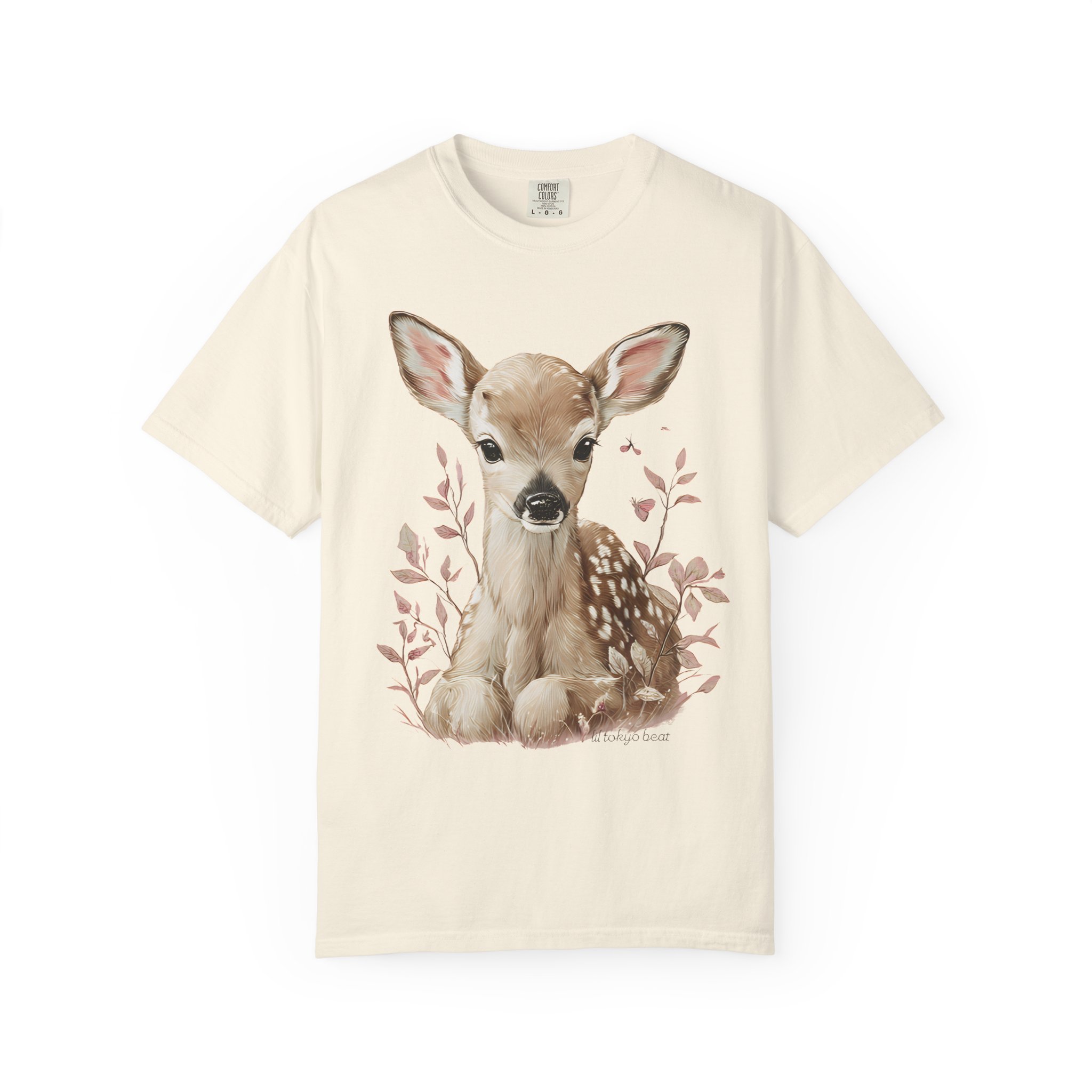 Soft, gentle, and quietly charming — this garment-dyed tee brings a hand-painted fawn to the center of your everyday wardrobe. The illustration sits calmly on the chest, framed by delicate foliage in muted tones, creating a light, woodland vibe that feels both nostalgic and modern. The heavyweight, garment-dyed cotton settles into a lived-in softness and keeps the colors subtle and natural. Wear it on slow mornings, at farmers’ markets, or layered under a cardigan for cool evenings. It’s for people who move through the world with a quieter curiosity — lovers of nature, simple comforts, and thoughtful design.