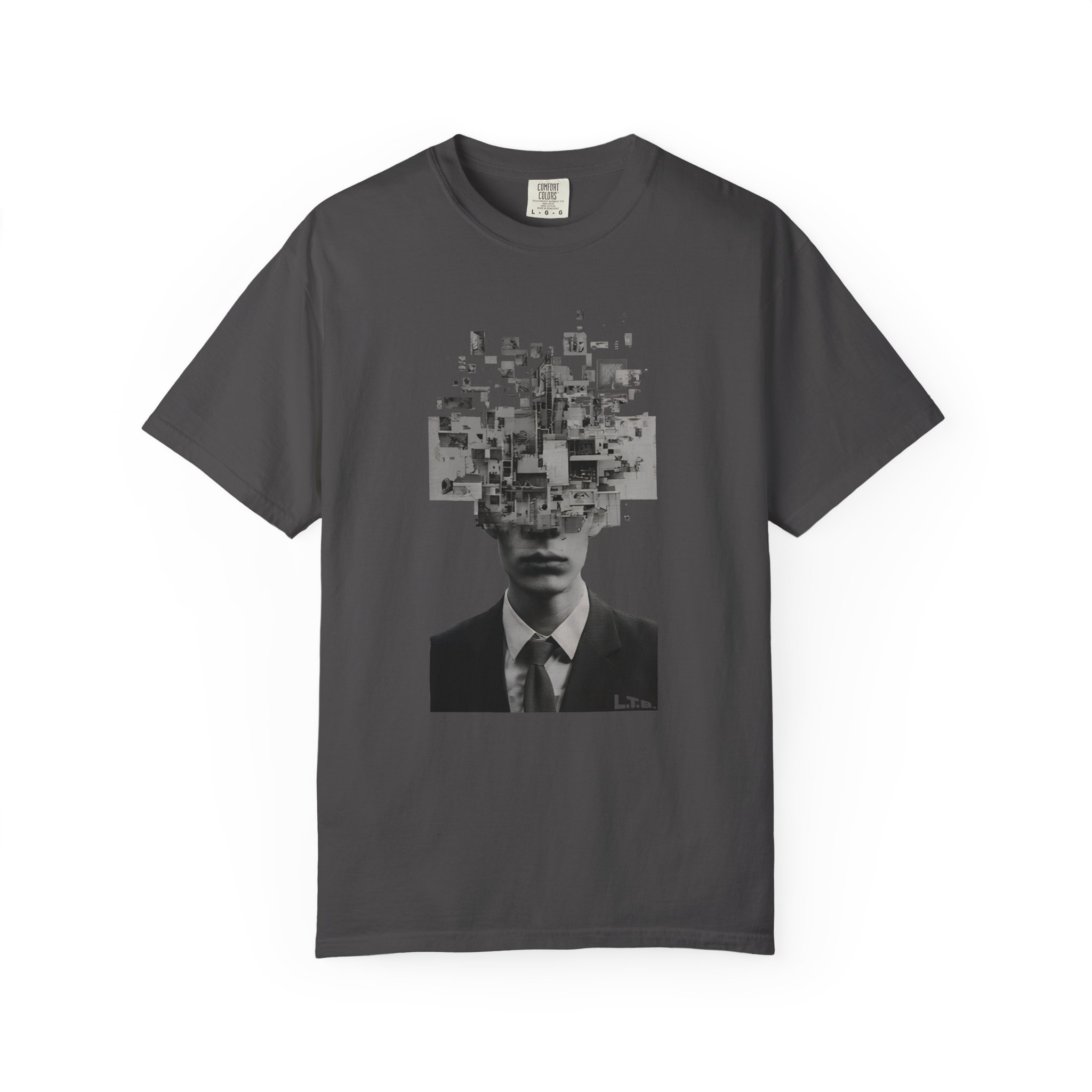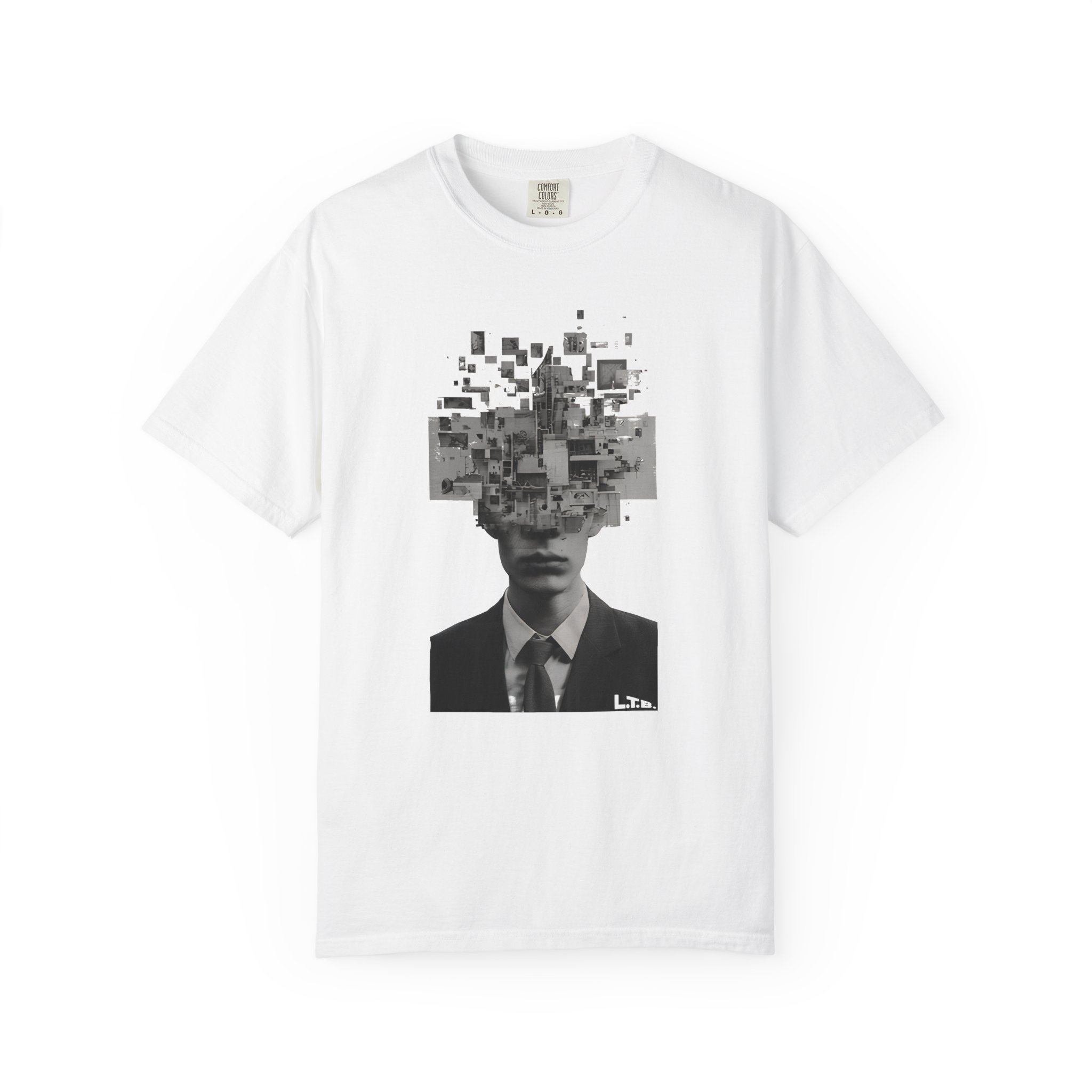Explore the space between thought and identity with this Fragmented Mind T-shirt by Lil Tokyo Beat. Featuring a striking black-and-white portrait with a surreal, fragmented architectural mindscape emerging from the head, this design represents complexity, modern consciousness, and the layered nature of human thought. The minimal monochrome style gives it a museum-quality, contemporary art feel, making it perfect for lovers of surreal art, conceptual fashion, and thought-provoking graphic tees. This shirt is designed for creatives, thinkers, and those drawn to deeper visual storytelling. Created in the Lil Tokyo Beat tradition — Kool. Artful. Timeless. A New Voice in Tee Culture — this piece transforms abstract ideas into wearable fine art that challenges, inspires, and stands apart from mass-market designs.