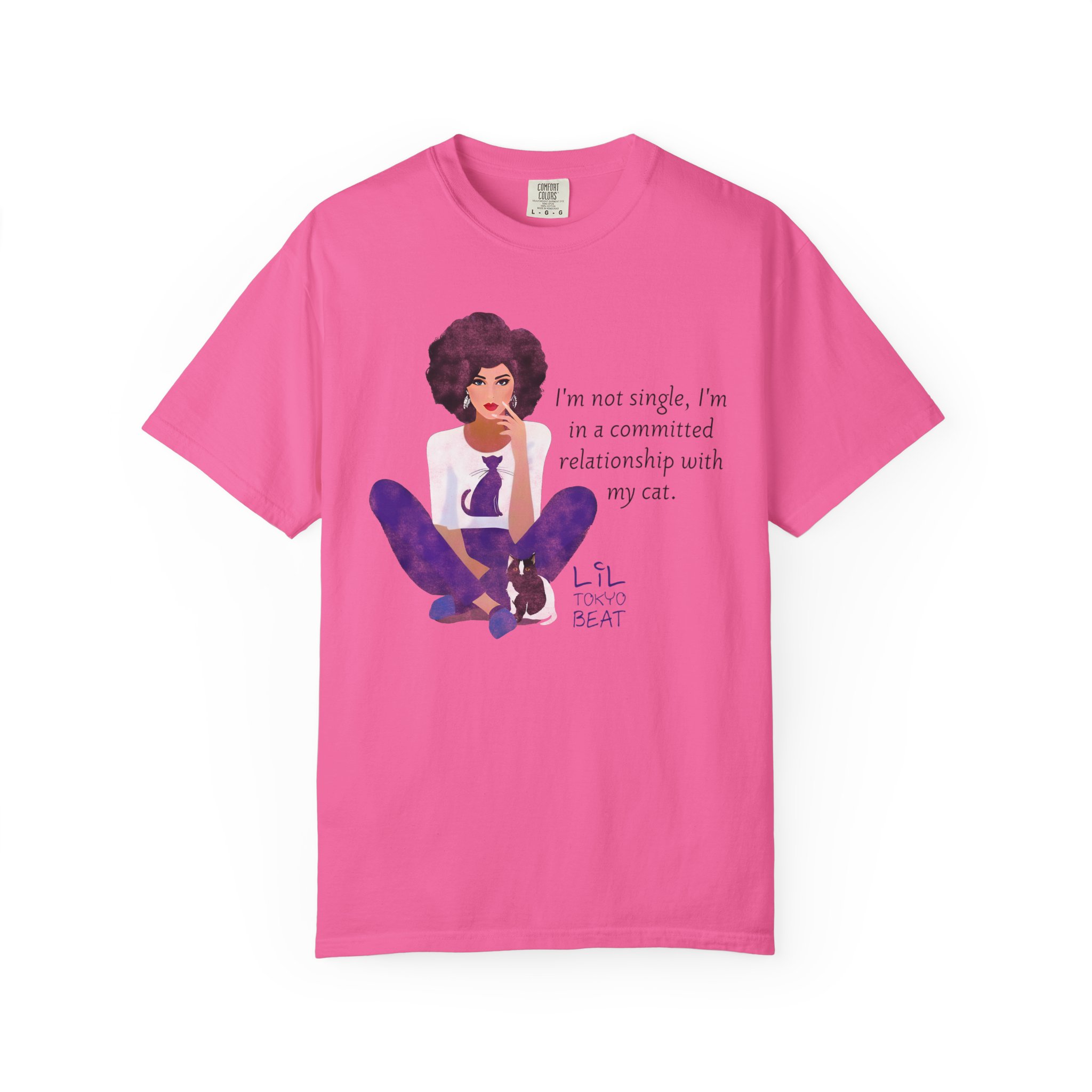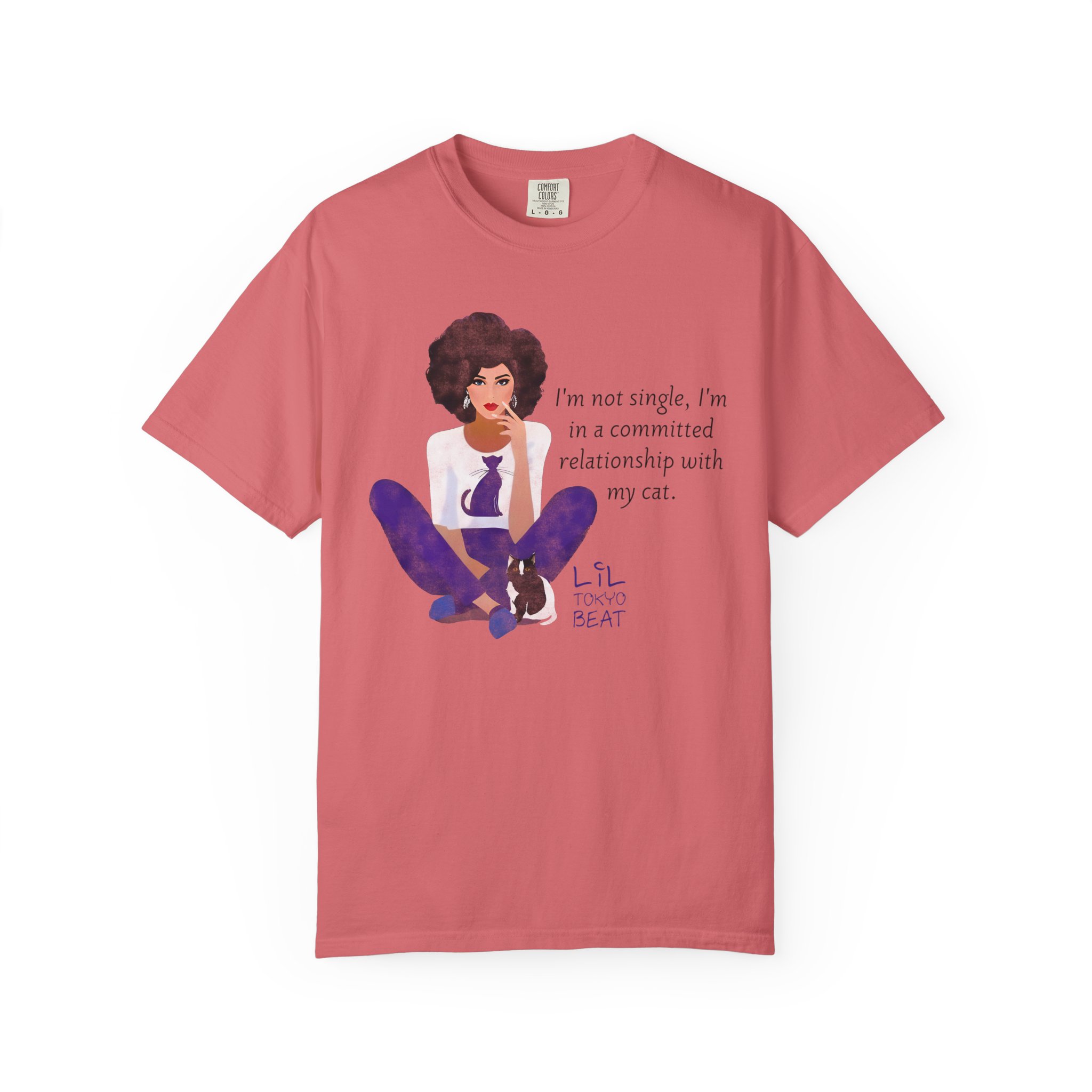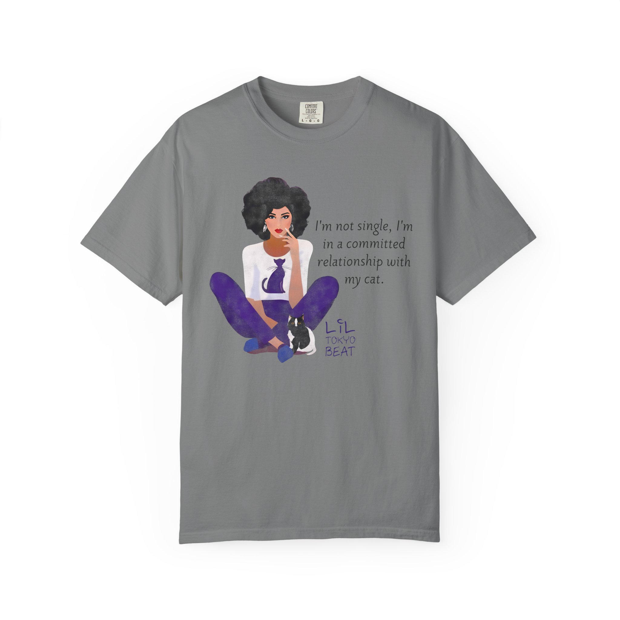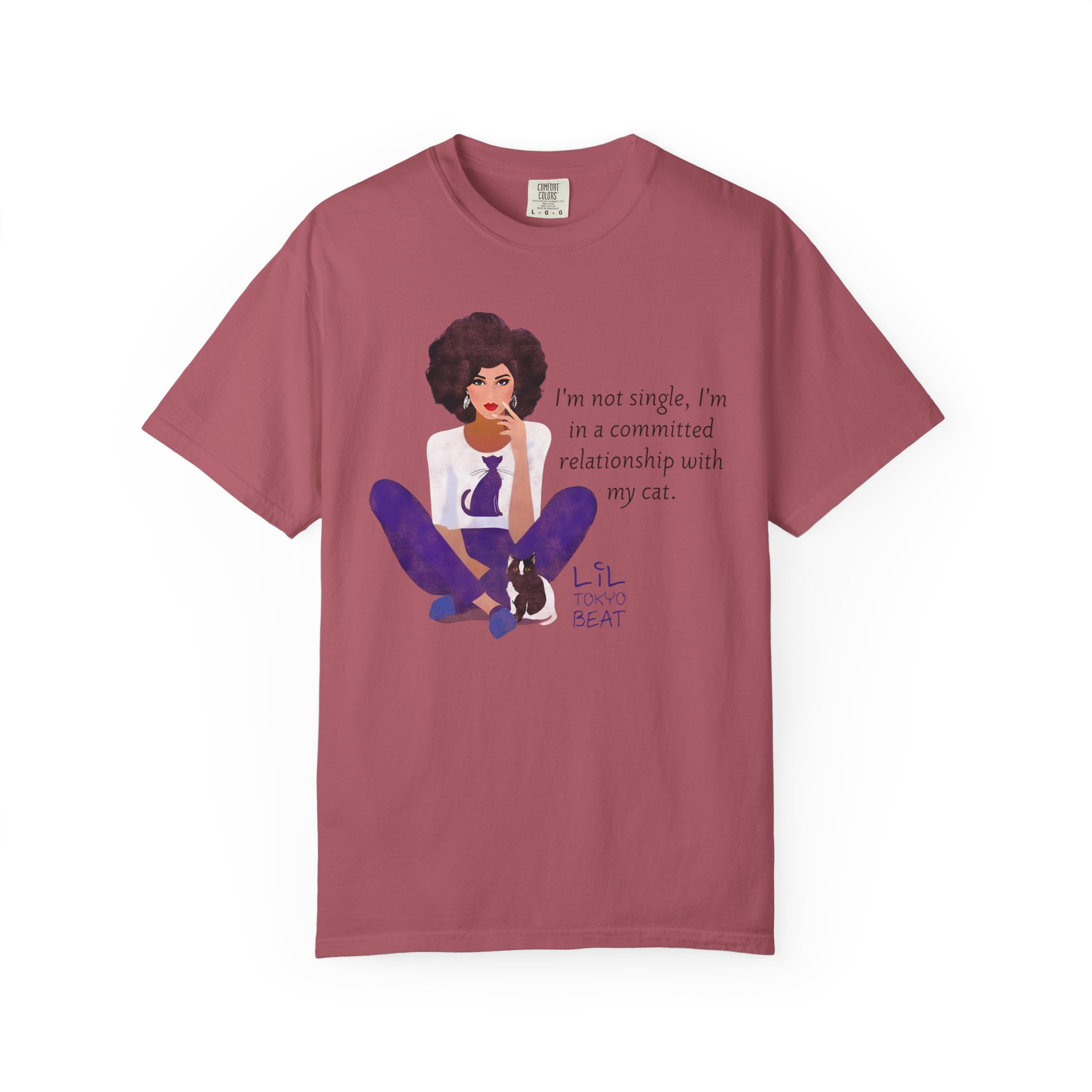 Perfect for every proud cat mom! This hilarious “I’m not single, I’m in a committed relationship with my cat” t-shirt is the ultimate statement piece for cat lovers who know the truth – cats make the best companions! Featuring adorable retro-style artwork of a confident woman with her feline friend. Great gift for cat ladies, single women embracing cat mom life, or anyone who prefers whiskers over drama. Available in multiple colors and sizes. Soft, comfortable cotton blend perfect for casual wear, cat café visits, or showing off your cat parent pride! Product features – Available in multiple sizes from S to 4XL – Double-needle stitching for durability – Garment-dyed fabric for a soft texture – Made with 100% ring-spun US cotton for long-lasting comfort – Available in 58 colors Care instructions – Machine wash: cold (max 30C or 90F) – Do not bleach – Tumble dry: low heat – Iron, steam or dry: low heat – Do not dryclean