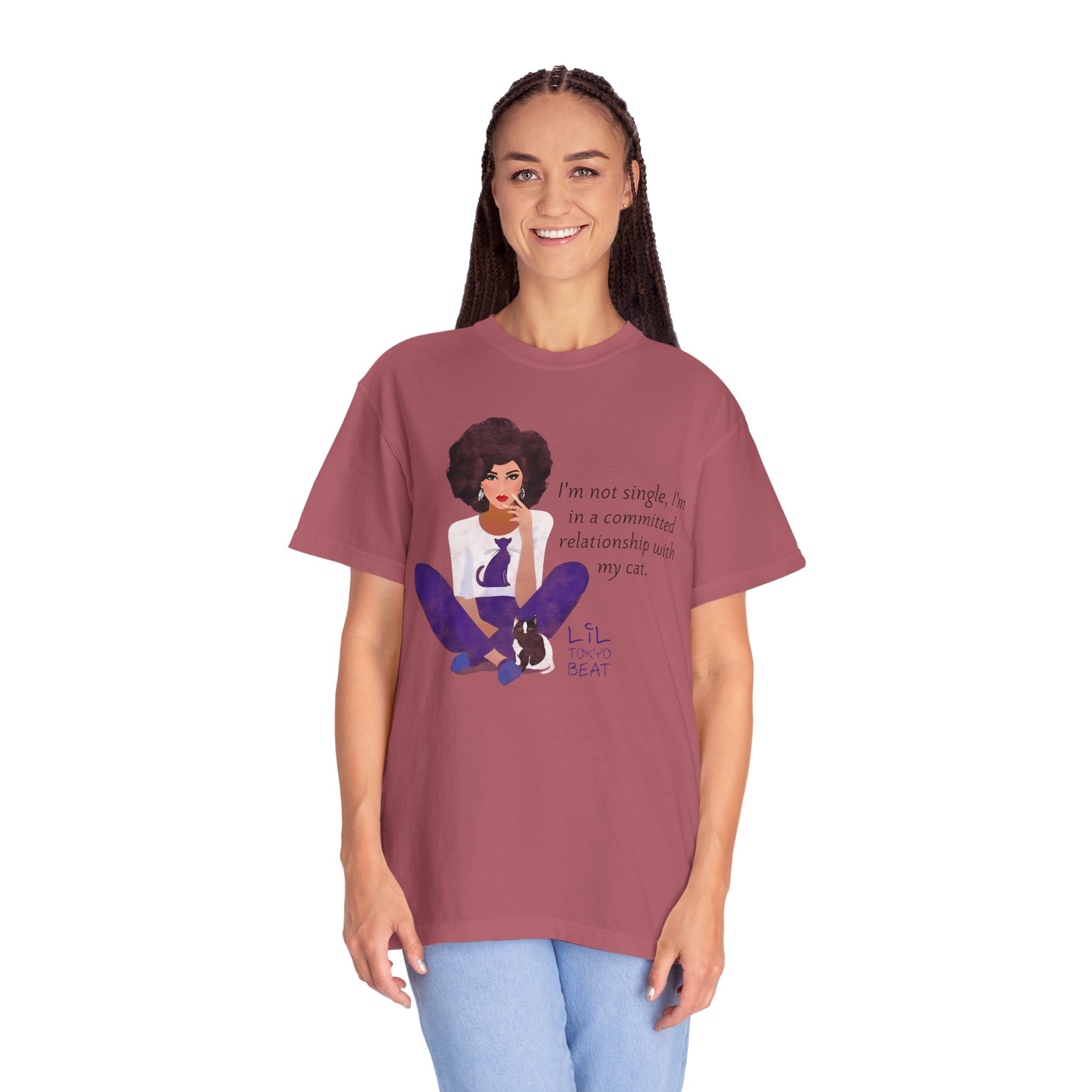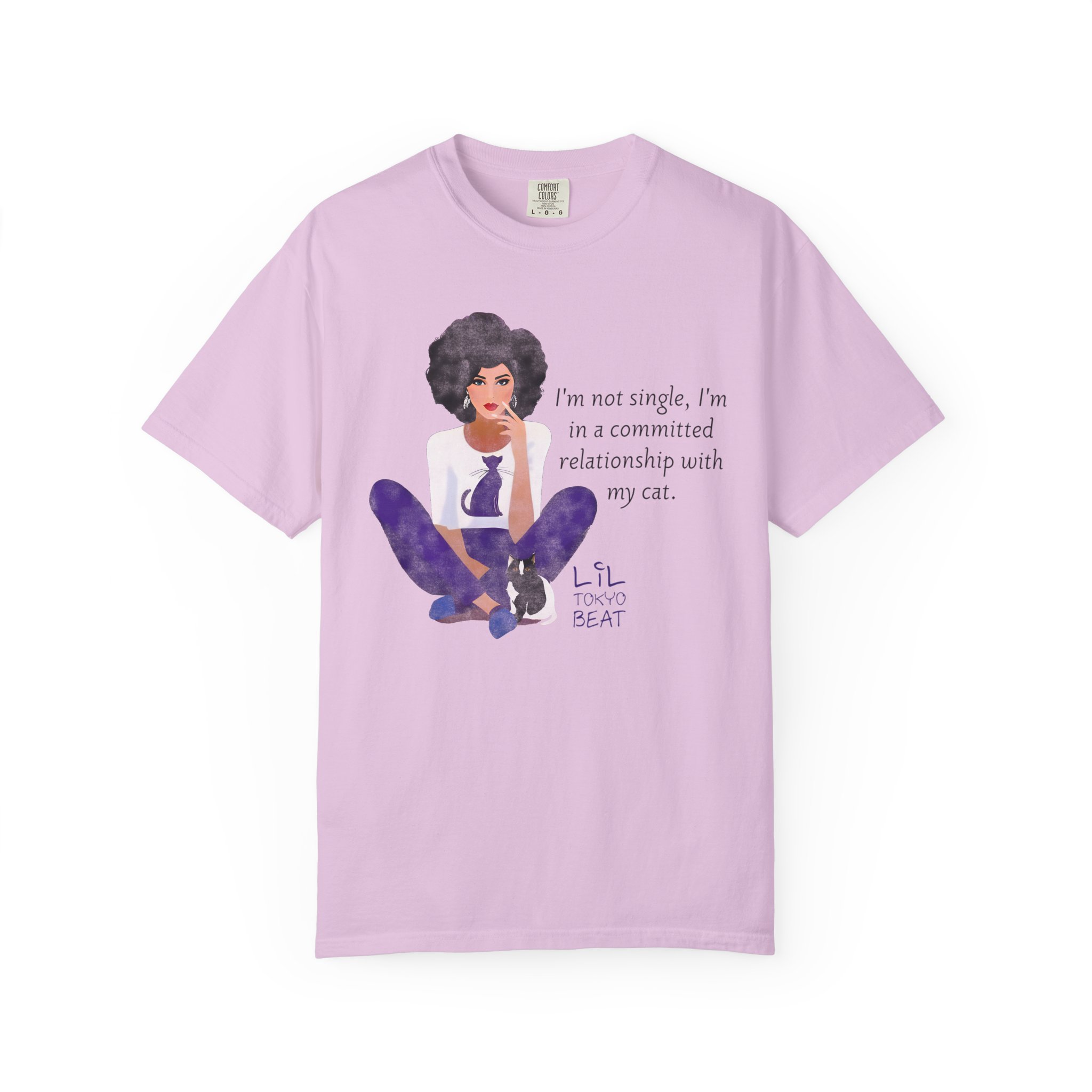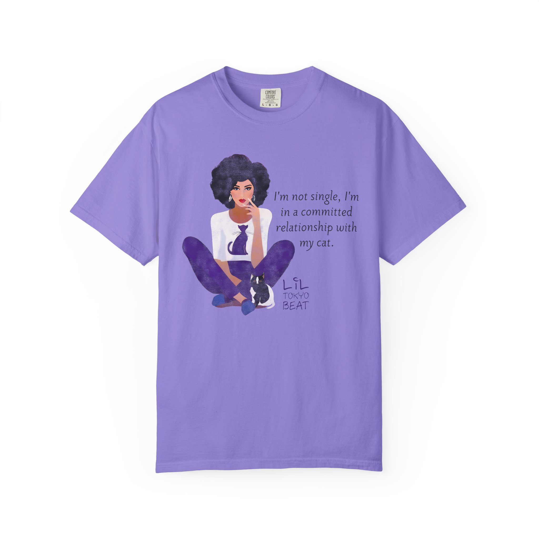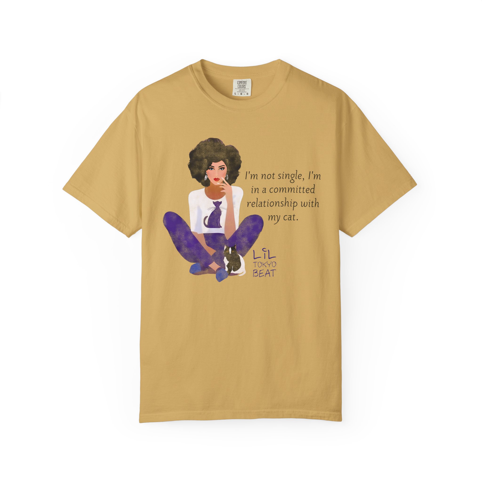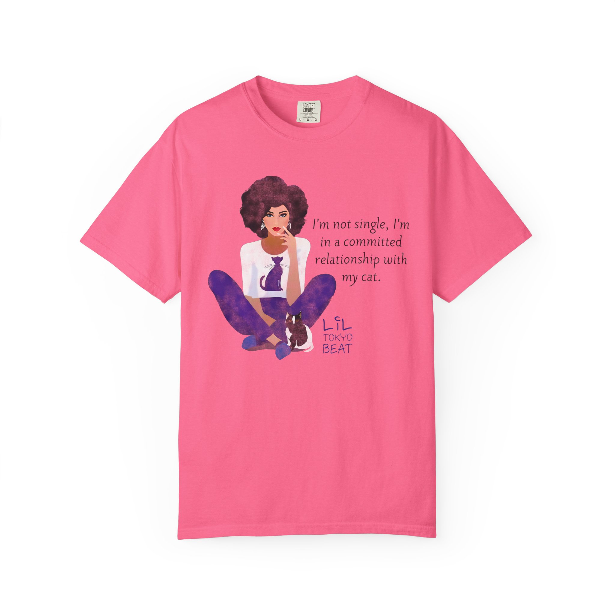 Perfect for every proud cat mom! This hilarious “I’m not single, I’m in a committed relationship with my cat” t-shirt is the ultimate statement piece for cat lovers who know the truth – cats make the best companions! Featuring adorable retro-style artwork of a confident woman with her feline friend. Great gift for cat ladies, single women embracing cat mom life, or anyone who prefers whiskers over drama. Available in multiple colors and sizes. Soft, comfortable cotton blend perfect for casual wear, cat café visits, or showing off your cat parent pride! Product features – Available in multiple sizes from S to 4XL – Double-needle stitching for durability – Garment-dyed fabric for a soft texture – Made with 100% ring-spun US cotton for long-lasting comfort – Available in 58 colors Care instructions – Machine wash: cold (max 30C or 90F) – Do not bleach – Tumble dry: low heat – Iron, steam or dry: low heat – Do not dryclean