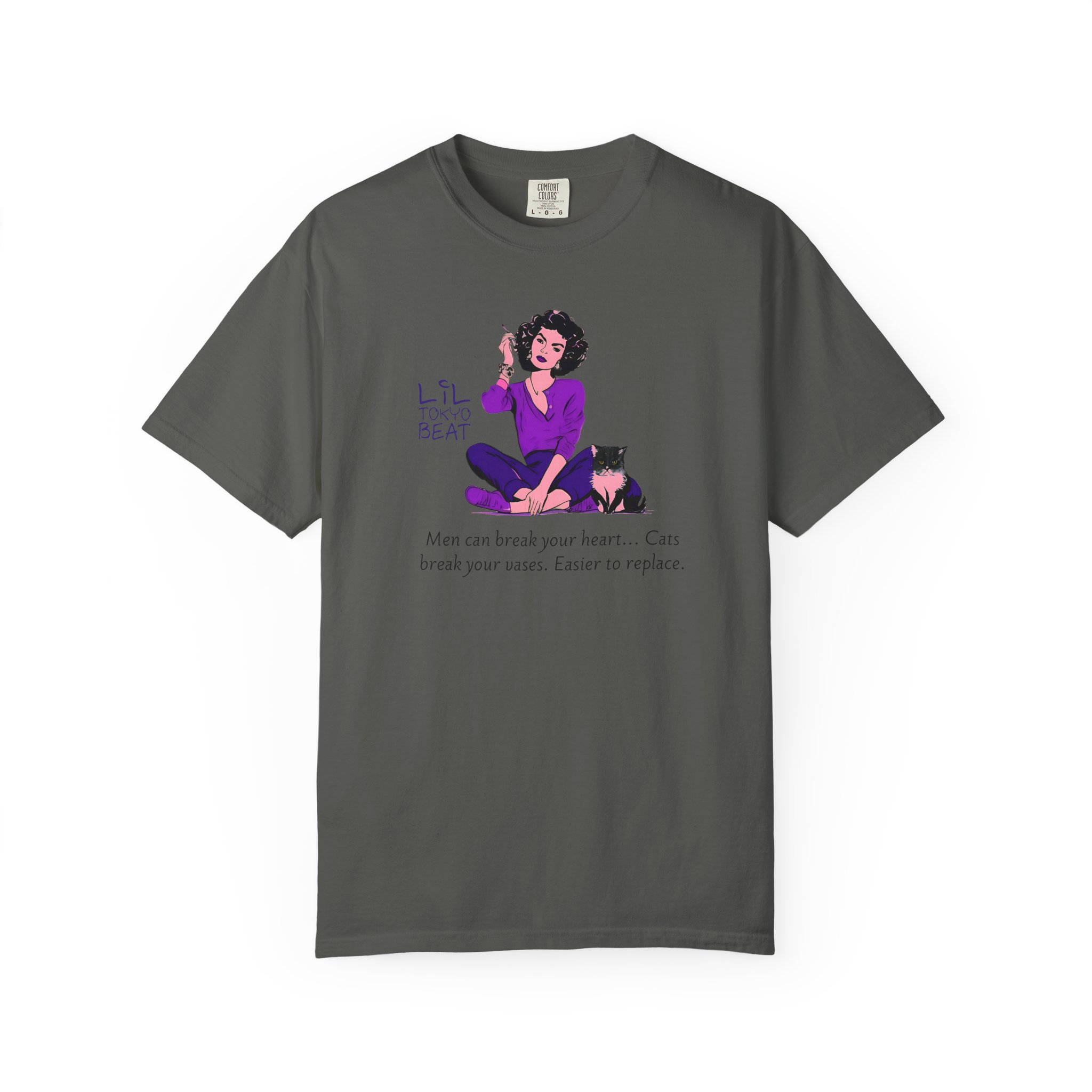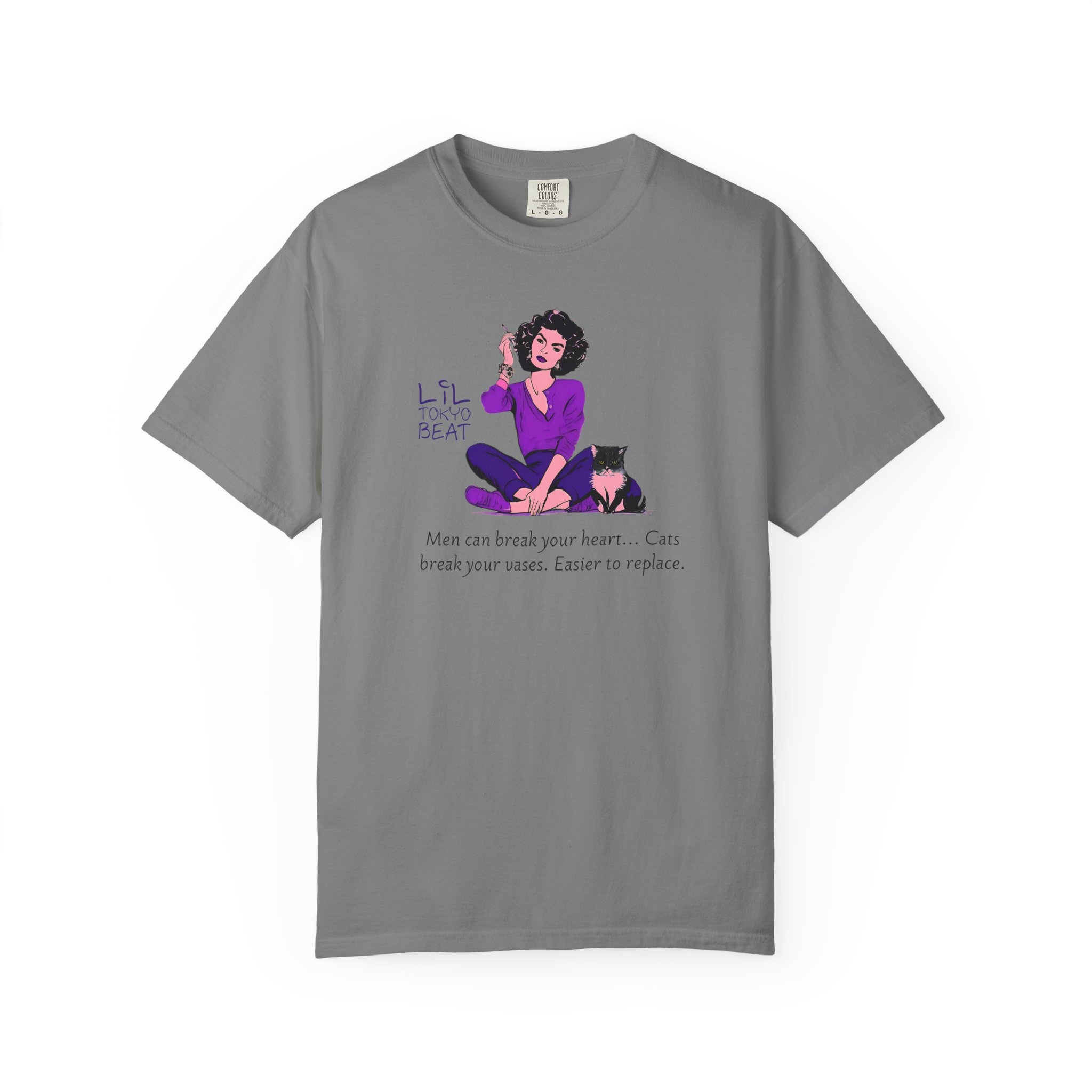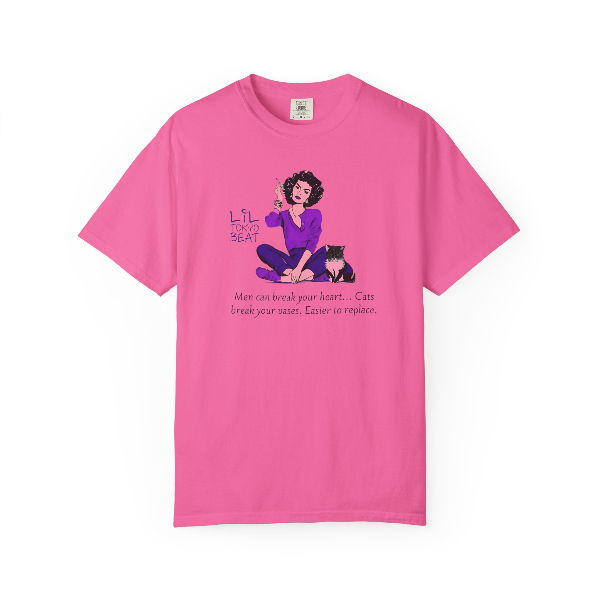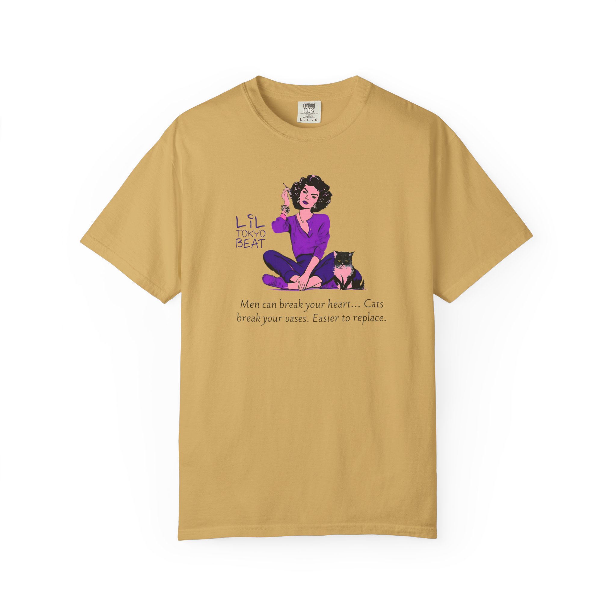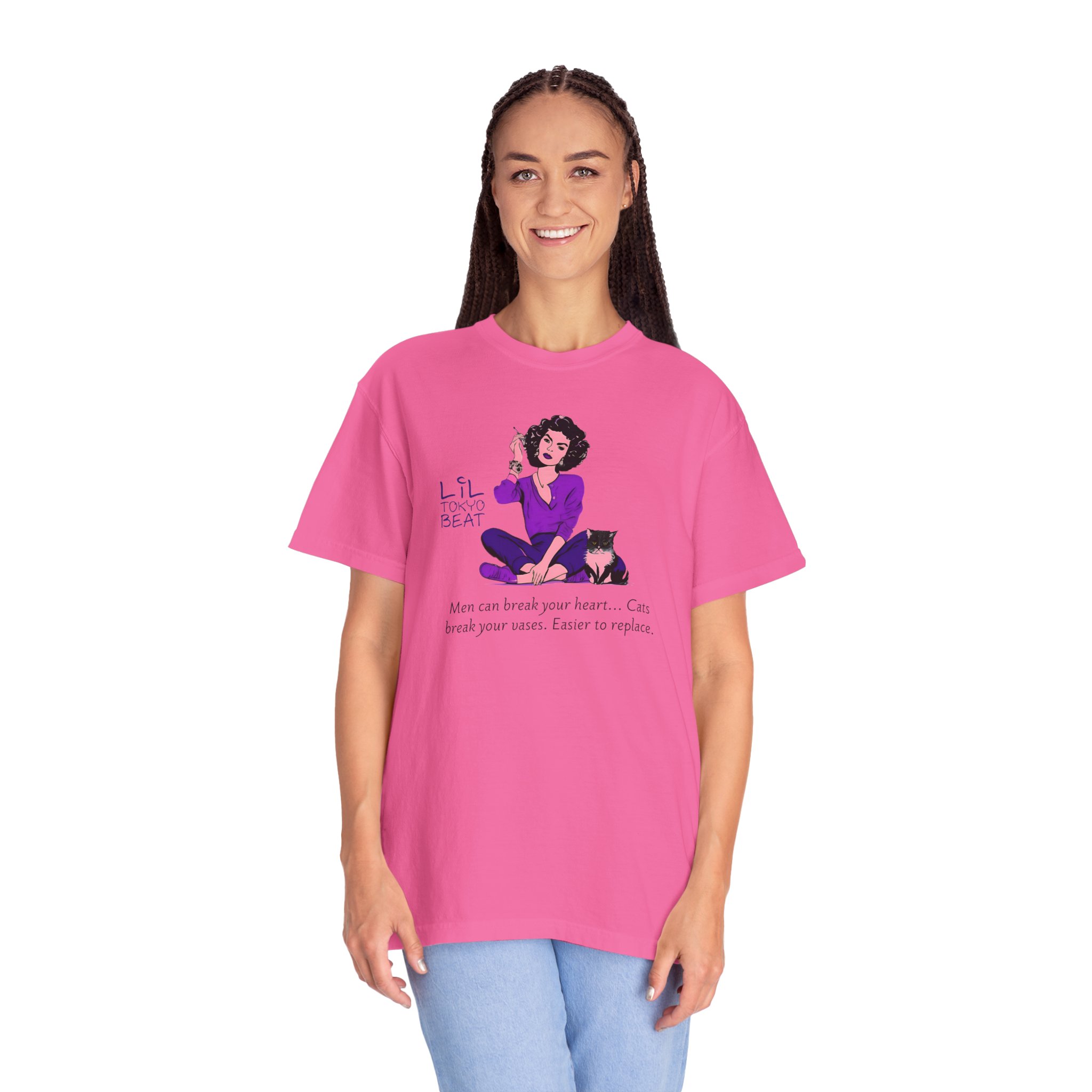 Funny Cat Lover T-Shirt with the quote “Men Break Hearts, Cats Break Vases” for feminists who love cats. This unisex garment-dyed tee is made with high-quality, 100% ring-spun US cotton for long-lasting comfort. The relaxed fit and crew neckline make it perfect for both casual and semi-formal settings, allowing for easy accessorizing. Ideal for cat lovers and feminists, great for everyday wear or as a gift for cat-themed holidays and celebrations. Product features – Available in sizes S to 4XL – Double-needle stitching for durability – Garment-dyed fabric with soft texture – Made with ethically grown US cotton – Available in 58 colors Care instructions – Machine wash: cold (max 30C or 90F) – Do not bleach – Tumble dry: low heat – Iron, steam or dry: low heat – Do not dryclean