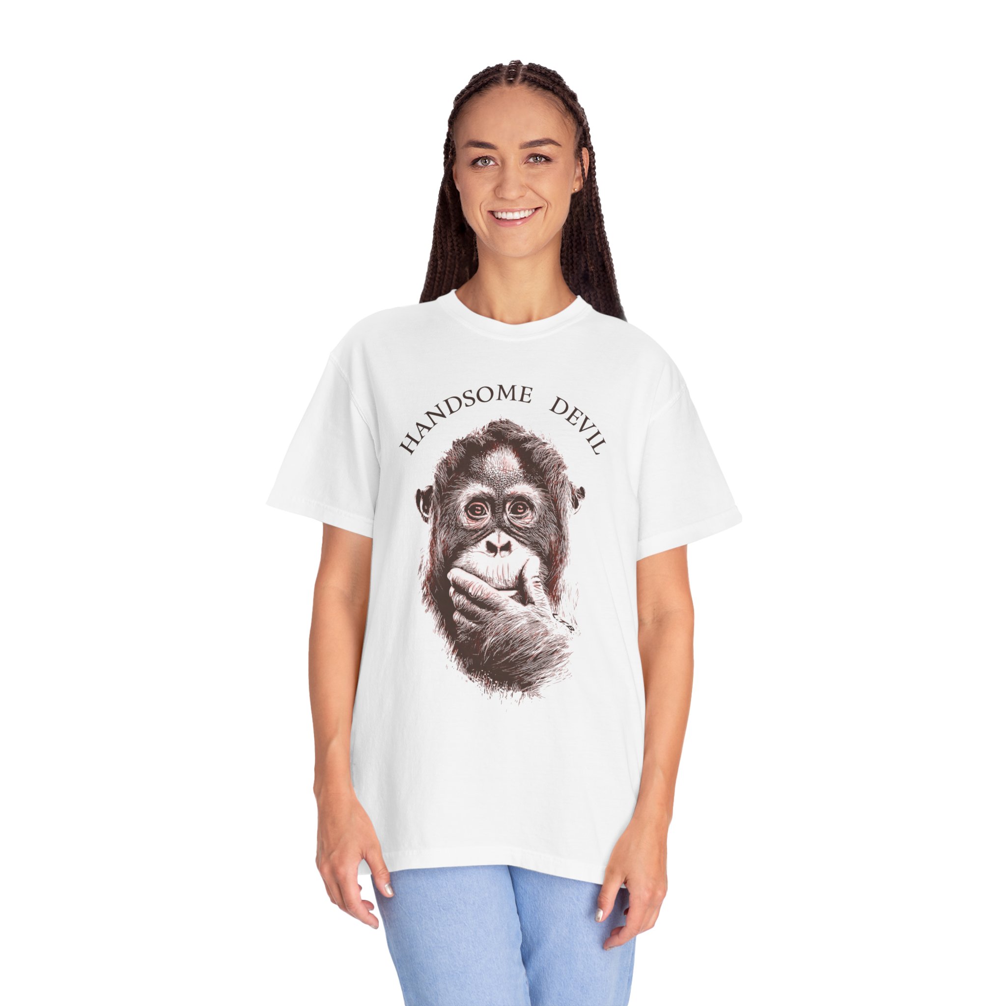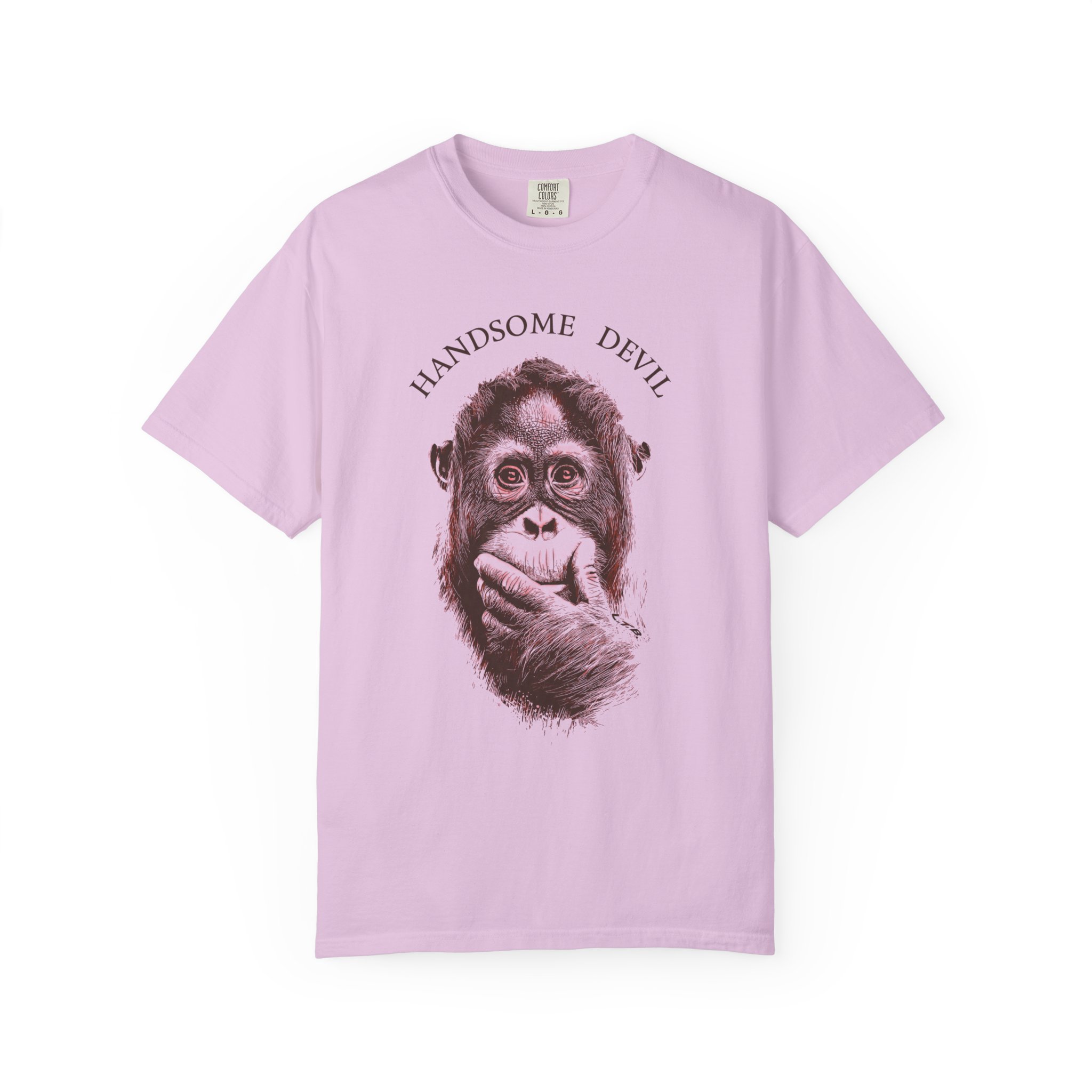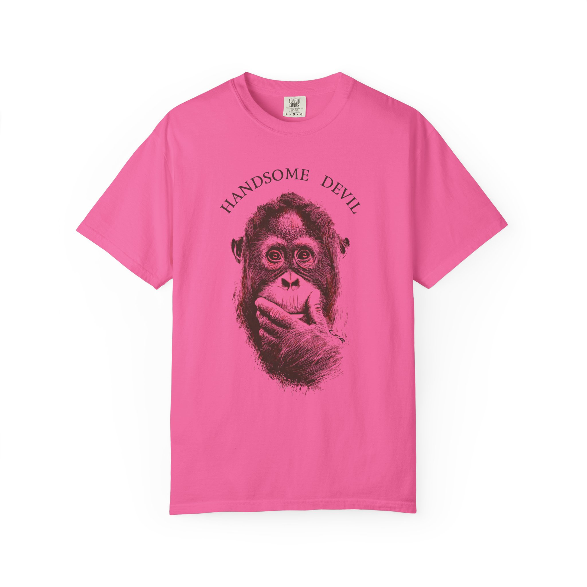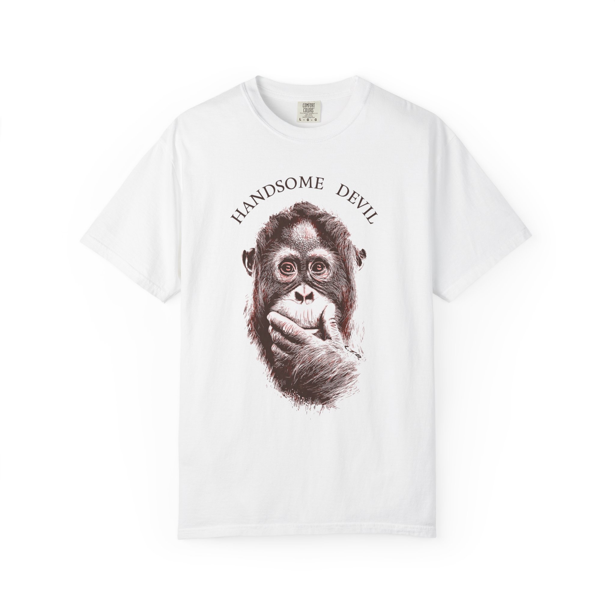 Bring humor, attitude, and artistic flair to your streetwear lineup with this bold graphic T-shirt from Lil Tokyo Beat. The design features a detailed illustration of an orangutan in a thoughtful pose, paired with the playful phrase “HANDSOME DEVIL,” creating a fun contrast between wise expression and cheeky personality. The clean linework and expressive shading give the artwork a modern pop‑art feel, perfect for fans of quirky illustration, animal‑themed fashion, and designs that blend humor with style. Whether worn for casual hangs, creative days, weekend outings, or everyday streetwear, this tee embodies the Lil Tokyo Beat philosophy—Kool. Artful. Timeless.—and continues the brand’s mission as A New Voice in Tee Culture.