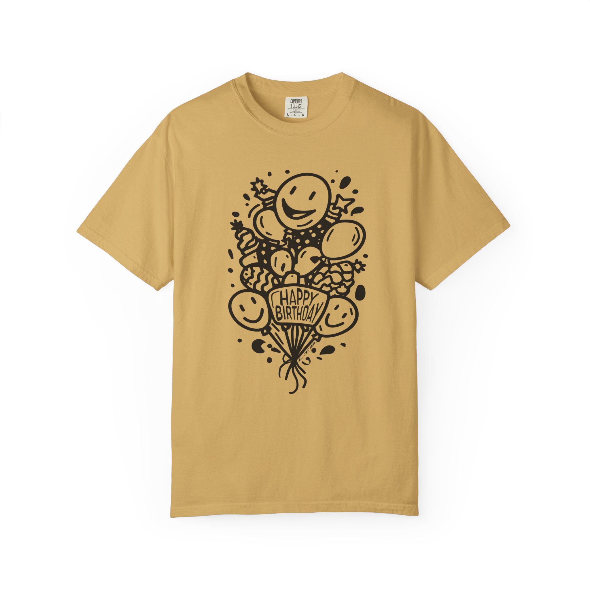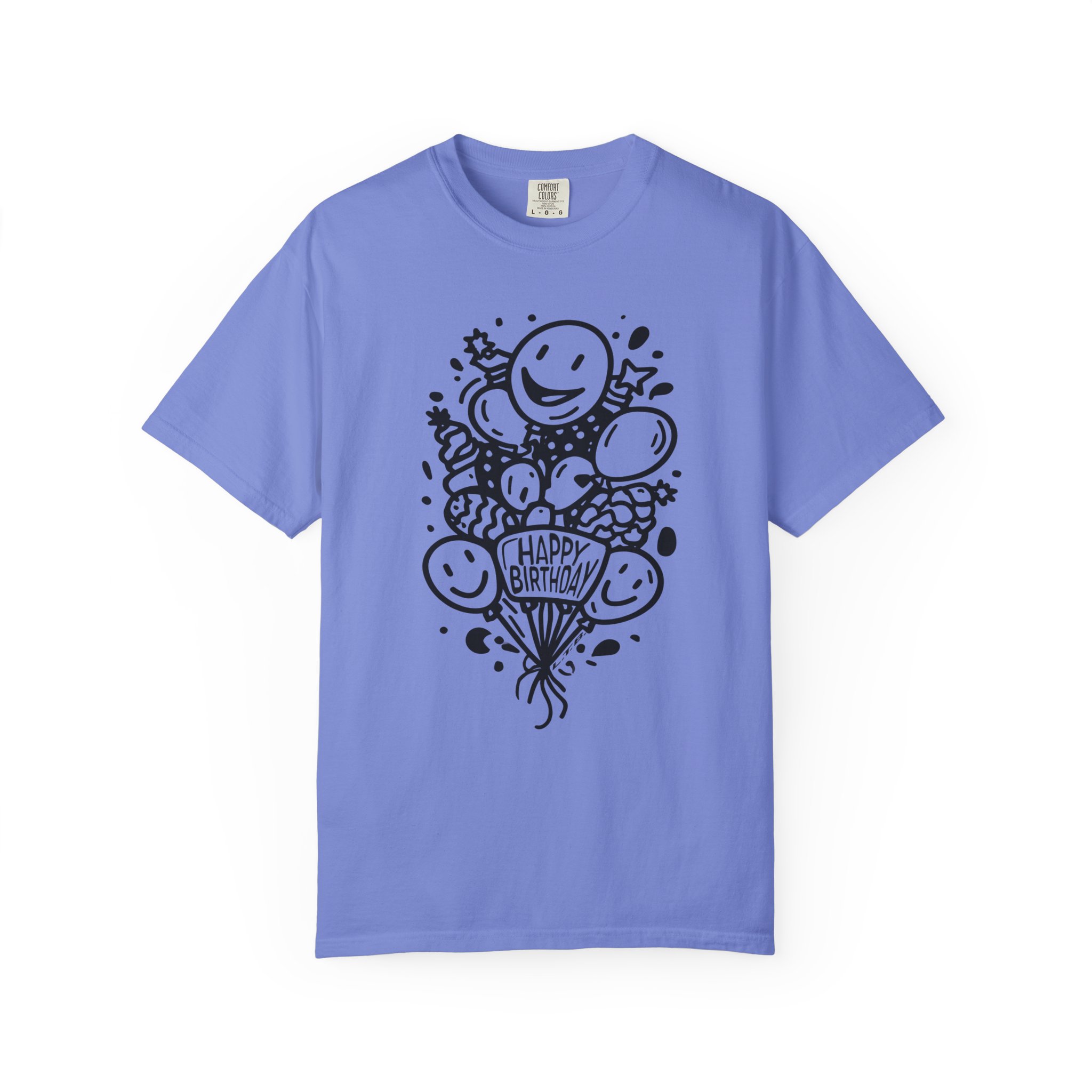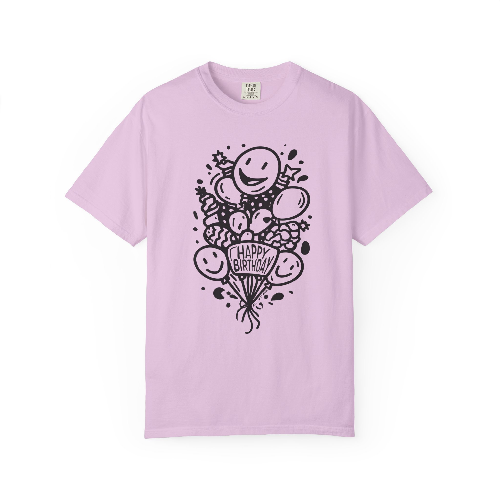 This playful Happy Birthday graphic tee features cheerful balloon illustrations and clean black line art design for a timeless, minimal party vibe. The hand-drawn style keeps it modern while staying fun and lighthearted — perfect for birthday celebrations, casual parties, or surprise gift moments.