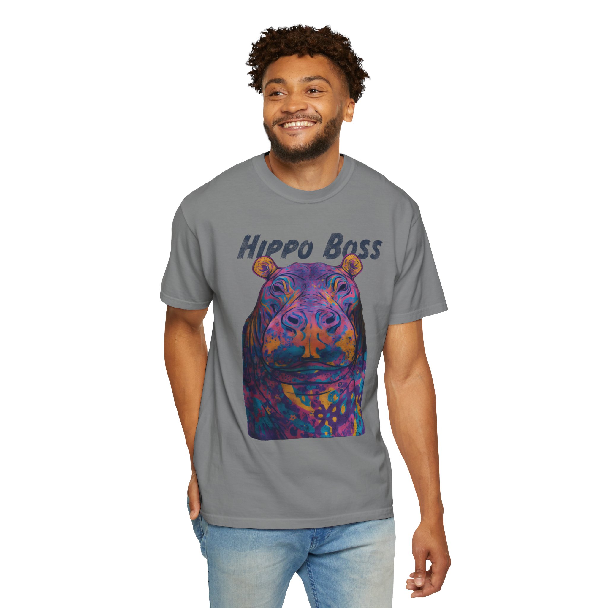 This heavyweight garment-dyed tee brings playful character and laid-back comfort to every wear. The relaxed fit and soft, post-dye texture make it feel lived-in from the first wear while the bold, colorful hippo artwork reads like a statement piece — confident, a little cheeky, and unmistakably fun. Wear it to slow weekend mornings, casual nights with friends, or anytime you want an effortless top with personality. The sewn-in label and robust double-needle seams mean it stands up to regular wear, and the tubular construction keeps the silhouette clean and streamlined. Available in many colors and sizes, it blends artful graphics with durable everyday design.