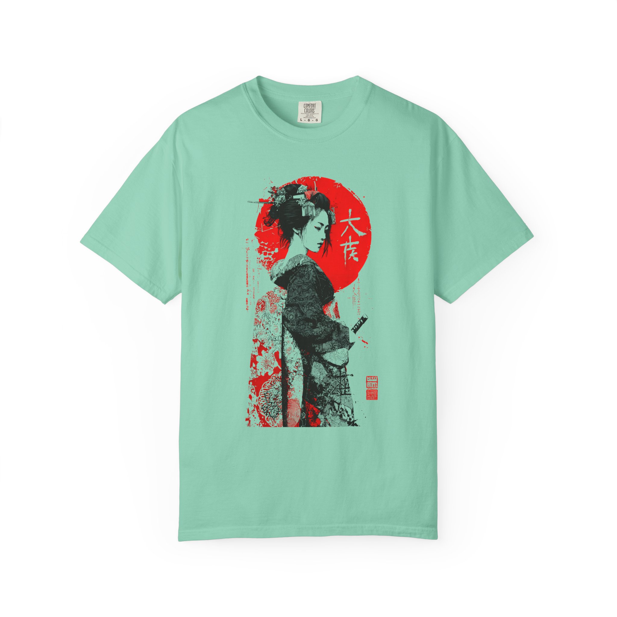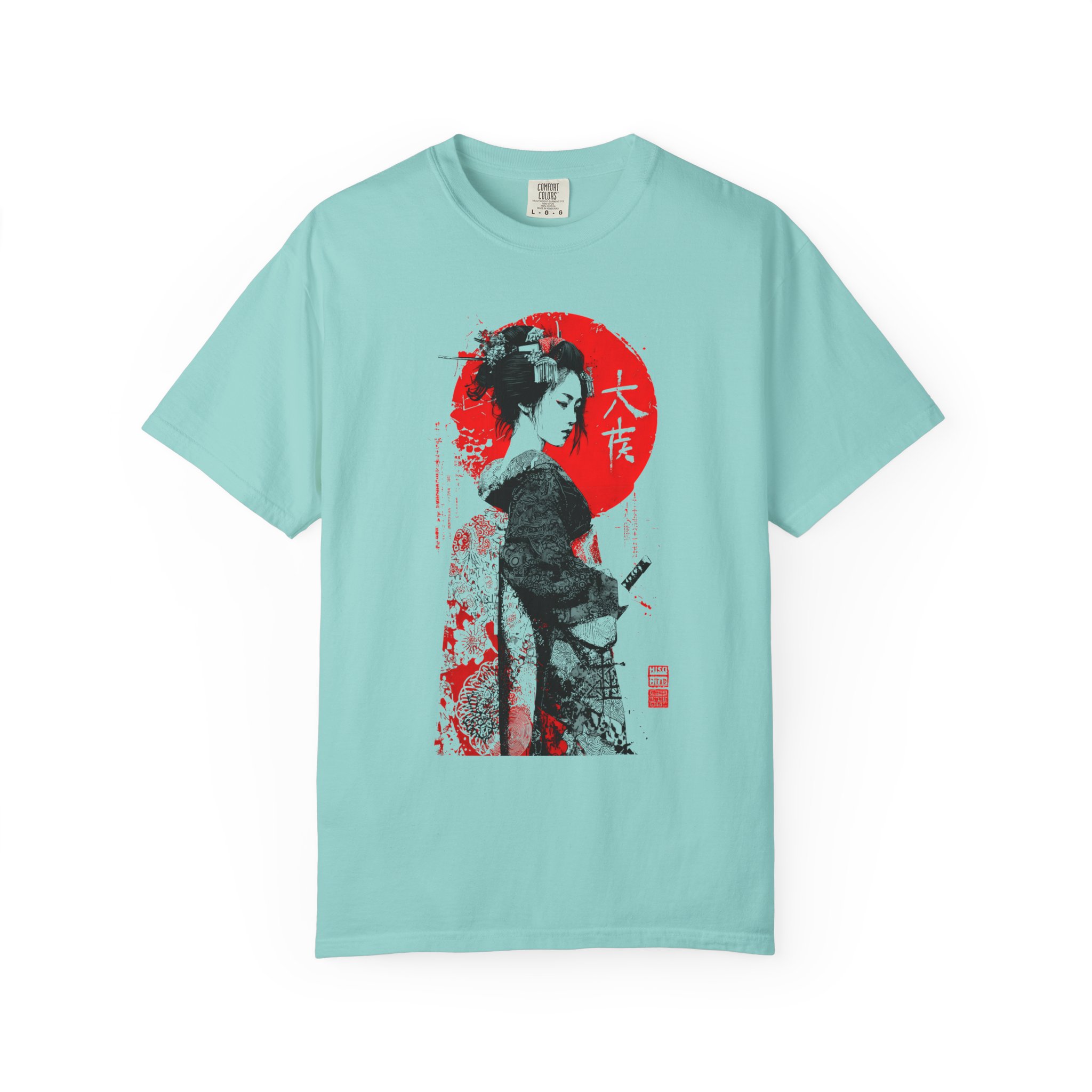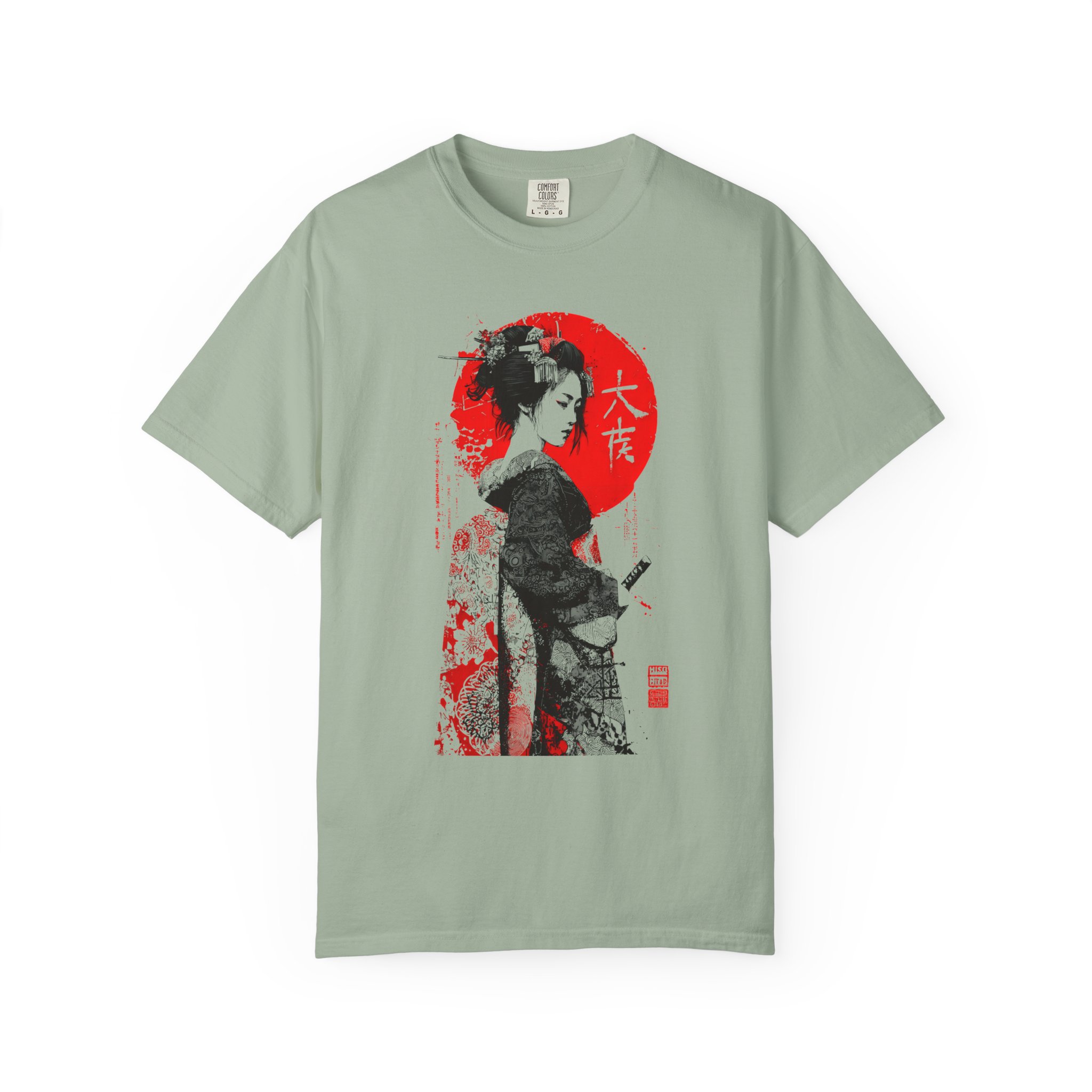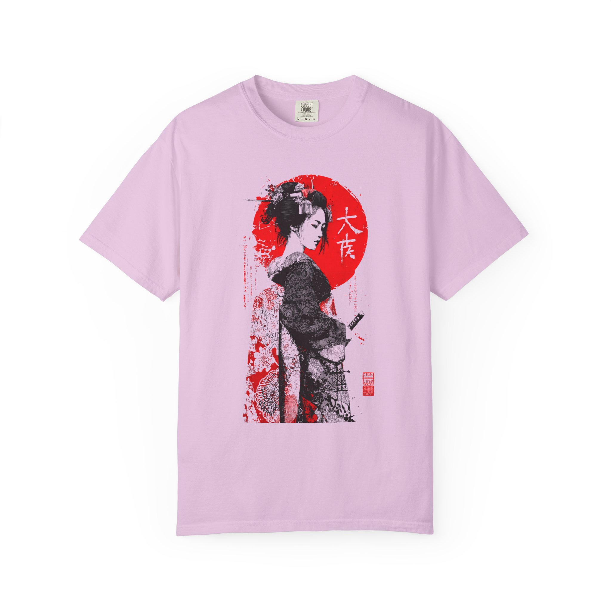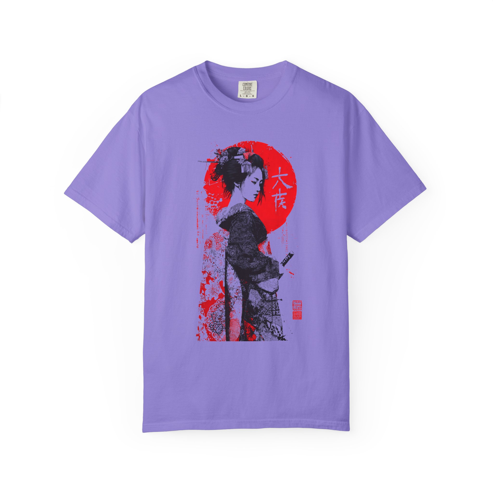 This relaxed-fit garment-dyed tee brings a quiet, cinematic moment to everyday wear. This ink-style Japanese-inspired portrait T-shirt features bold black linework contrasted against a striking red sun backdrop. The minimalist composition draws from traditional ink illustration aesthetics while maintaining a modern, expressive edge. Subtle texture details and balanced negative space give the artwork depth and quiet intensity without referencing any specific era or identity. Designed for lovers of monochrome art, Japanese visual culture, and contemporary streetwear, this piece functions as wearable art with timeless appeal. The heavyweight ring-spun cotton and garment-dye process create a lived-in softness that settles naturally into your wardrobe—comfortable for long days of wandering city streets or evenings at a low-lit gallery. It pairs with worn denim, layered under a jacket, or worn alone to let the artwork speak. The shirt feels thoughtful and understated, for someone who appreciates craft, subtle storytelling, and clothes that get better with time.