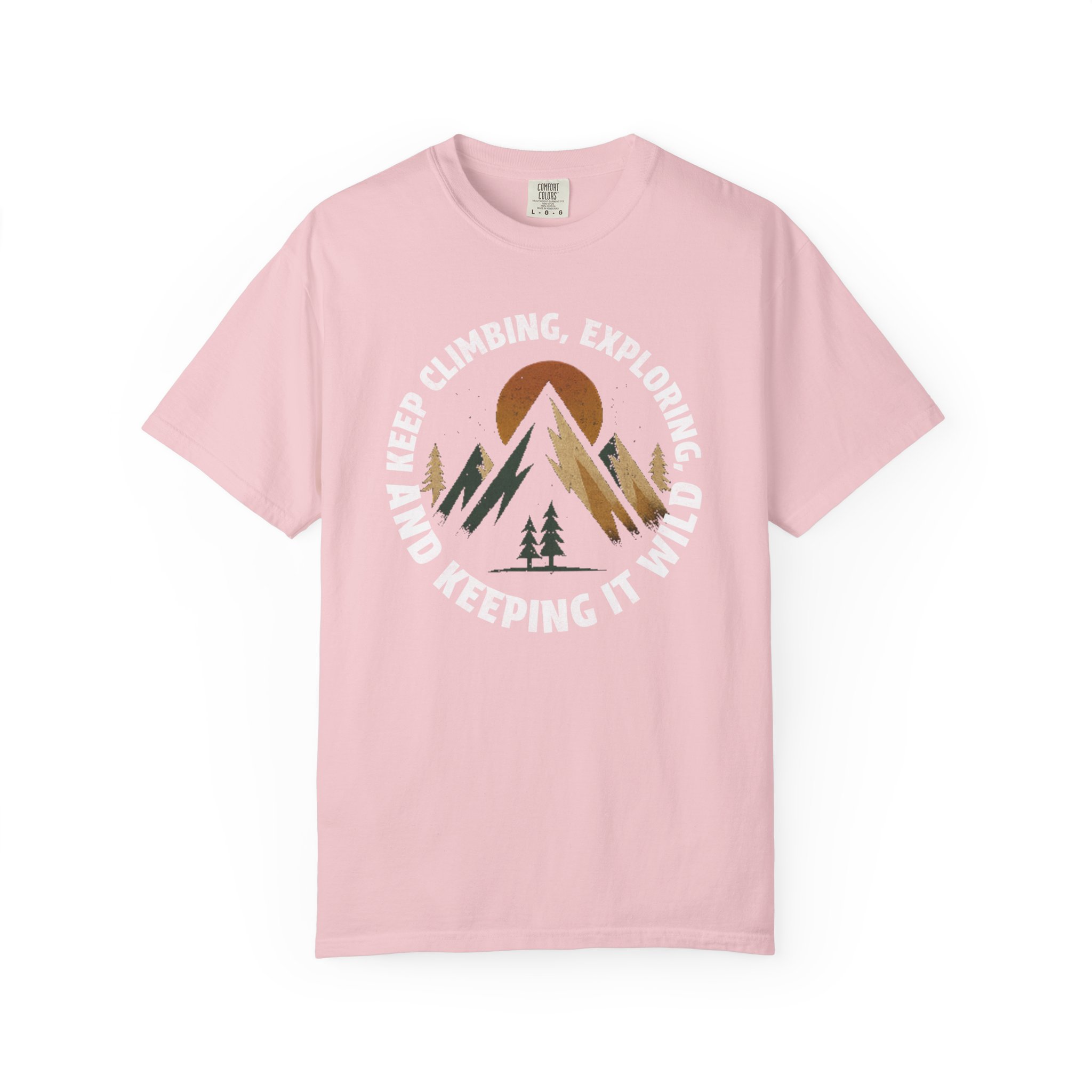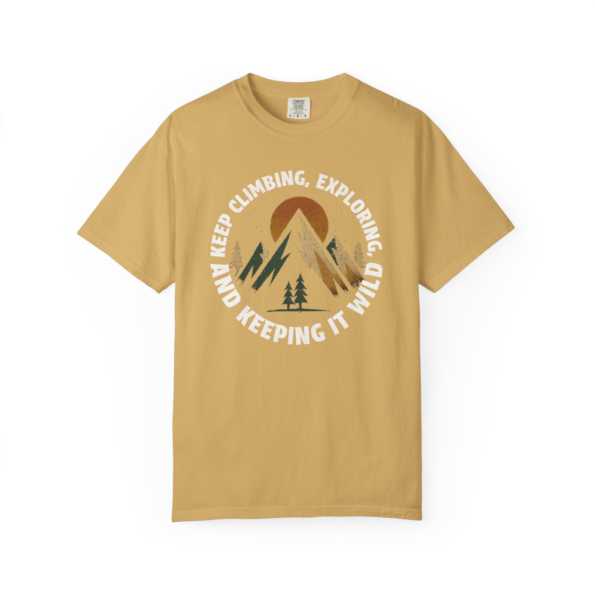 Sunlit trails and early-morning summits — this garment-dyed tee carries that worn-in trail comfort straight into your everyday. A relaxed, heavyweight cut drapes casually while the soft, washed color and vintage mountain graphic read like a map of afternoons spent climbing and exploring. It sits comfortably through long drives to trailheads, cool evenings by a campfire, or quick coffee runs before a dawn hike. Stitched for durability and pre-shrunk for dependable fit, it slowly becomes the shirt you reach for when you want to feel grounded and ready to roam.