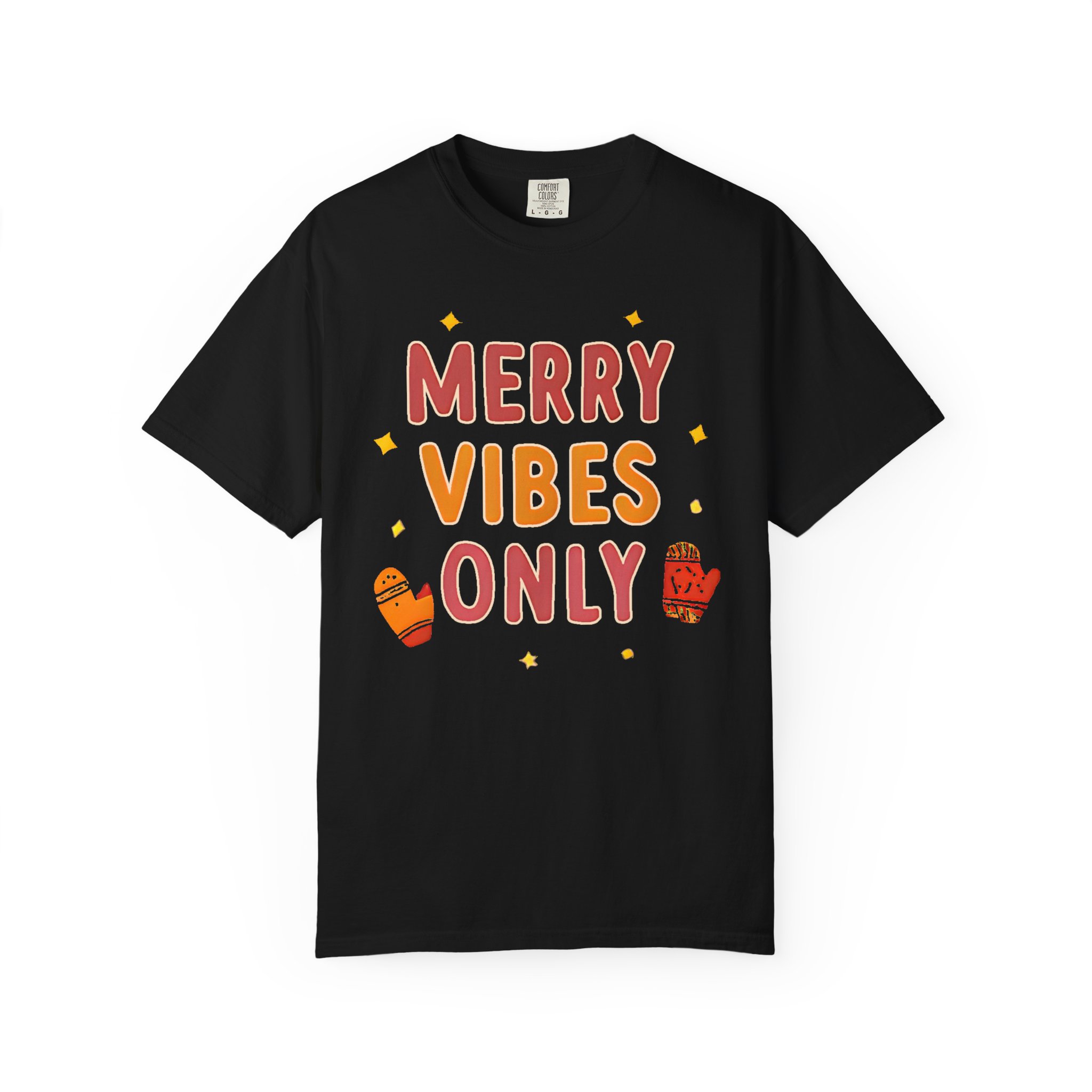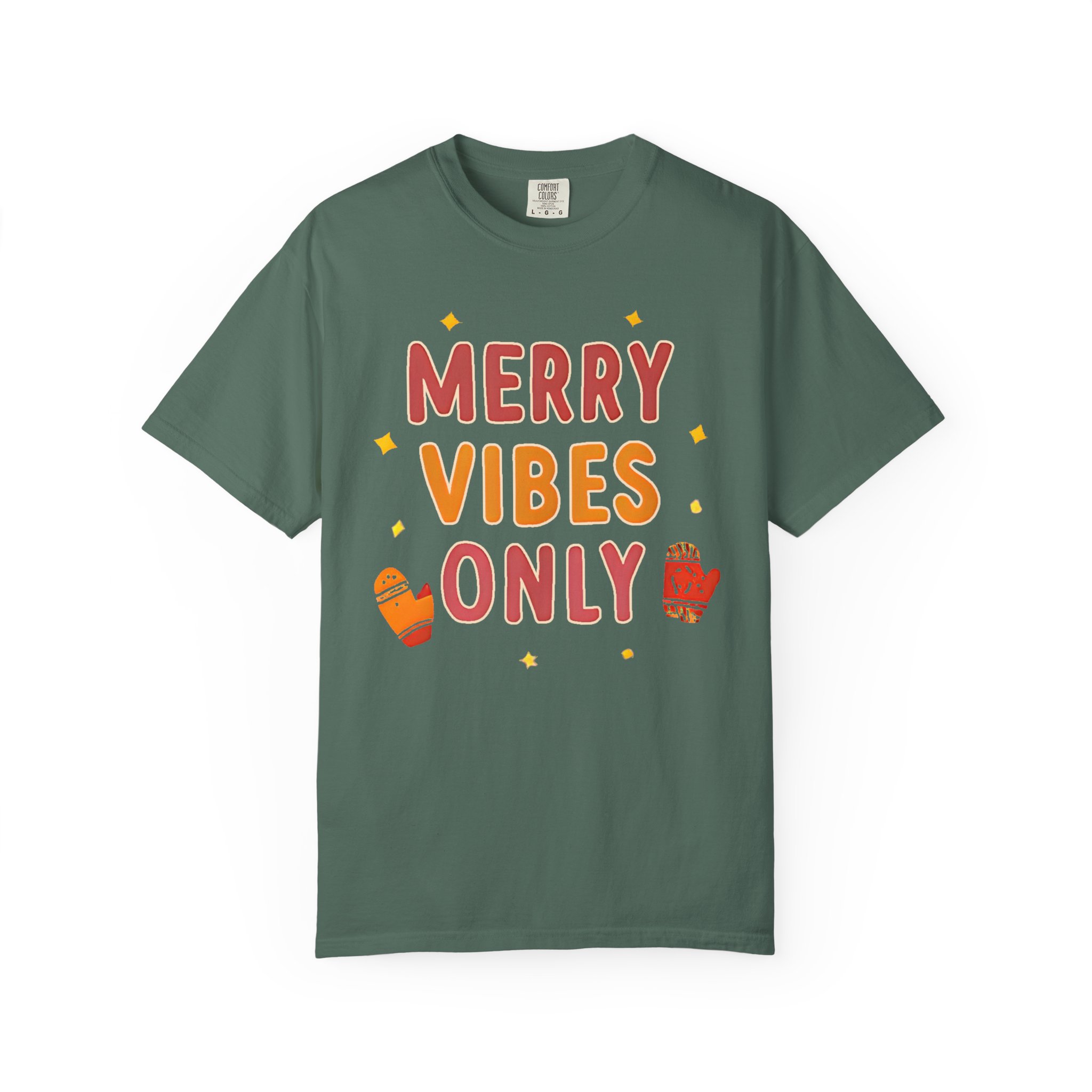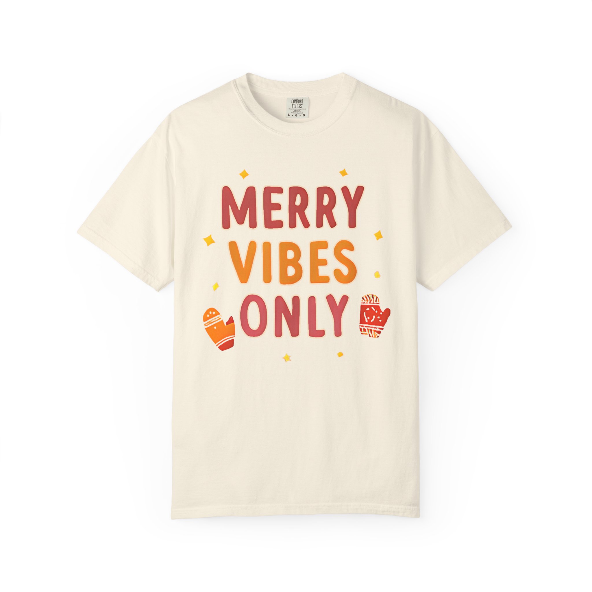 Soft, relaxed, and warmly festive — this garment-dyed tee brings quiet holiday cheer without shouting. The hand-lettered “Merry Vibes Only” artwork, sprinkled with tiny stars and cozy mitten accents, feels like a friendly nudge to slow down, sip something warm, and enjoy the small moments. The heavyweight 100% ring-spun cotton drapes with a relaxed fit and a lived-in softness from the post-construction dye. Wear it on a chilly morning wrapping presents, while wandering a neighborhood light walk, or layered under a cardigan at a low-key family gathering. It’s the kind of shirt that doesn’t try too hard — it simply sets a warm, easy mood and becomes a go-to during the season.