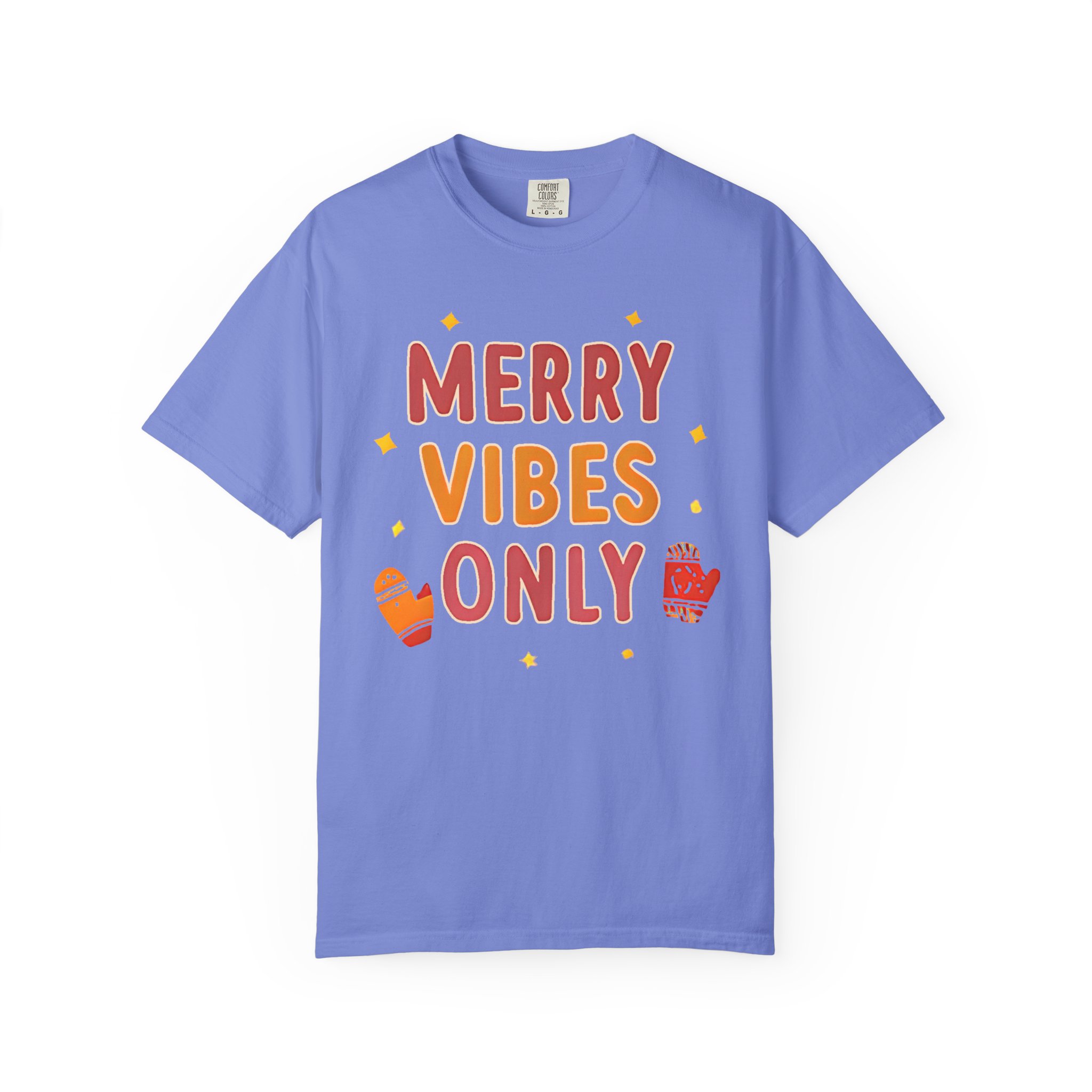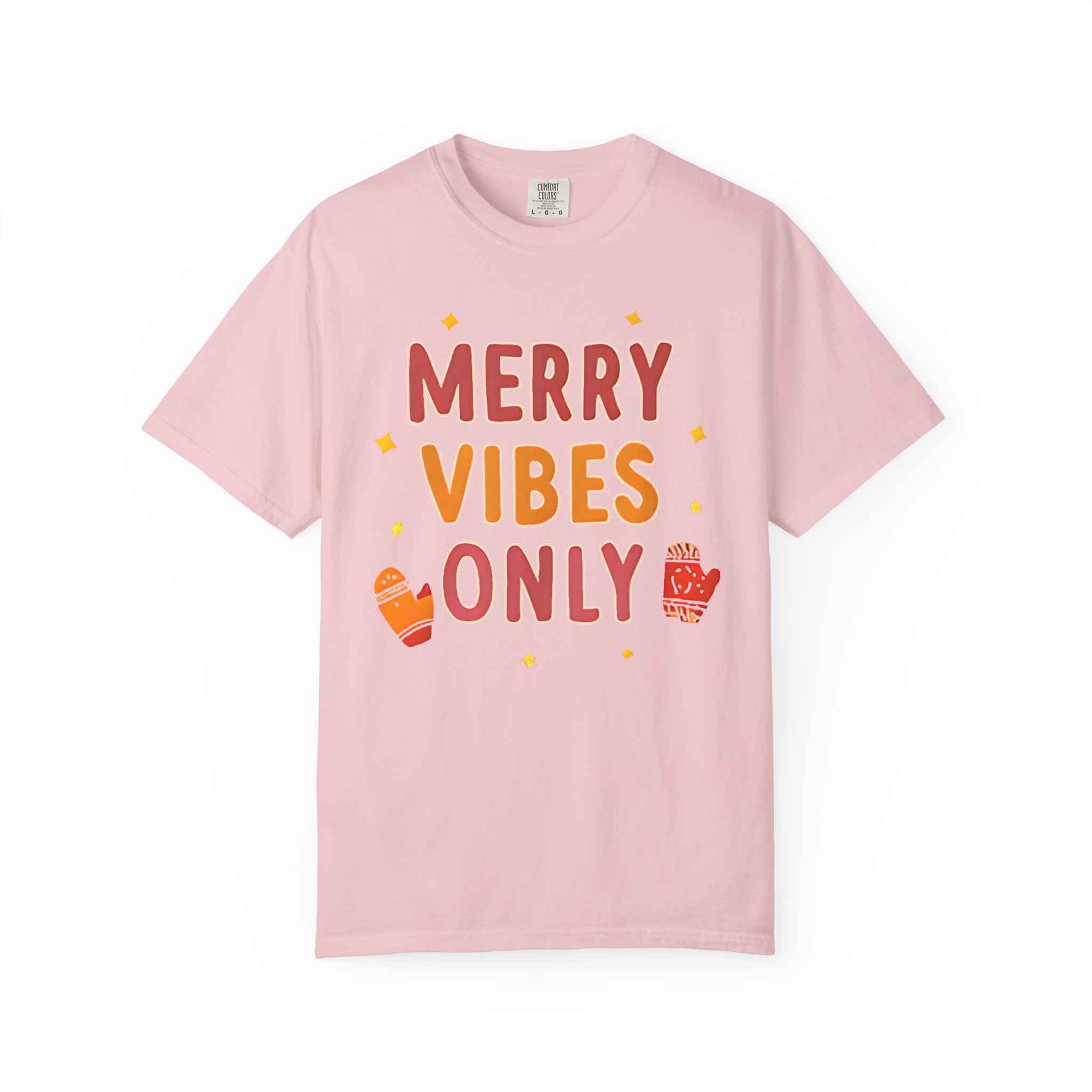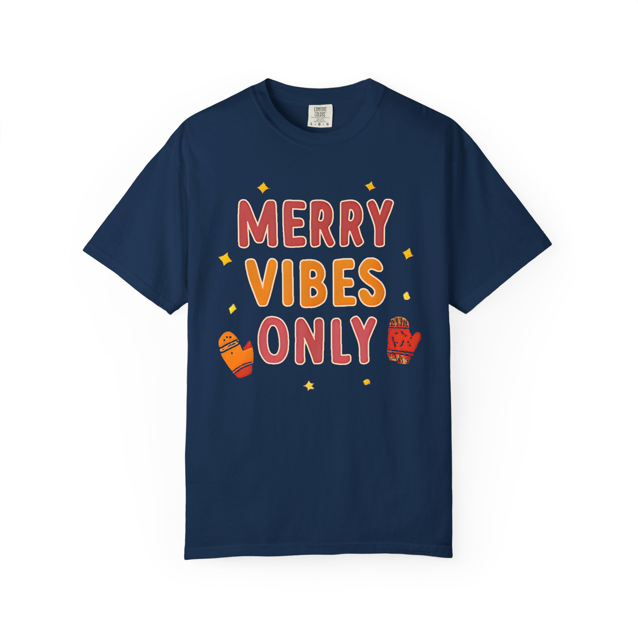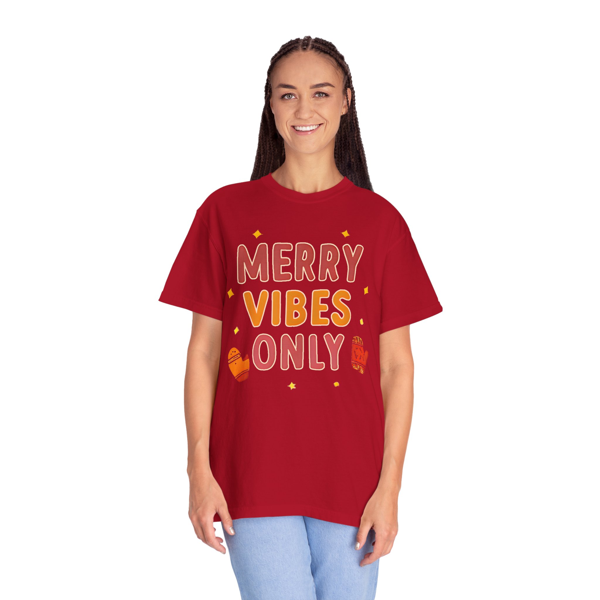 Soft, relaxed, and warmly festive — this garment-dyed tee brings quiet holiday cheer without shouting. The hand-lettered “Merry Vibes Only” artwork, sprinkled with tiny stars and cozy mitten accents, feels like a friendly nudge to slow down, sip something warm, and enjoy the small moments. The heavyweight 100% ring-spun cotton drapes with a relaxed fit and a lived-in softness from the post-construction dye. Wear it on a chilly morning wrapping presents, while wandering a neighborhood light walk, or layered under a cardigan at a low-key family gathering. It’s the kind of shirt that doesn’t try too hard — it simply sets a warm, easy mood and becomes a go-to during the season.
