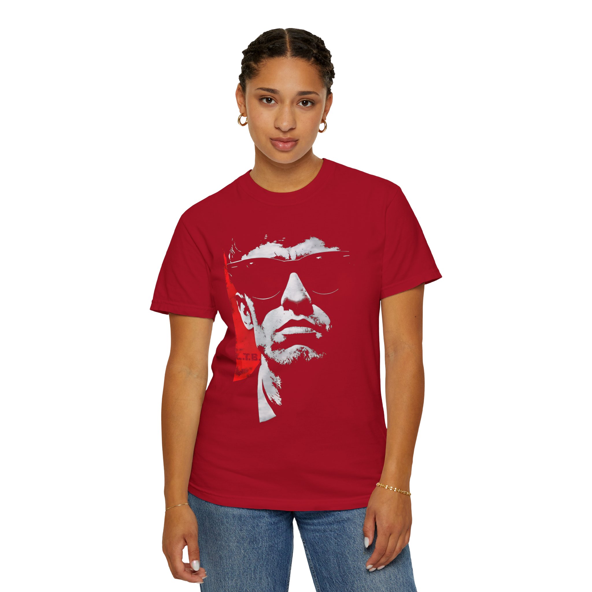 Striking, minimal, and charged with attitude, this modern sunglasses portrait T-shirt features a high-contrast black-and-white face set against a bold red accent. The graphic composition blends street-art energy with noir-inspired styling, creating a powerful visual statement that feels both contemporary and timeless. The sharp lighting, cropped framing, and confident expression give the portrait a cinematic edge, making this tee perfect for fans of urban art, minimalist fashion, and bold character graphics. The limited color palette keeps the design clean while letting the mood and expression take center stage. Created under the Lil Tokyo Beat philosophy, this piece reflects the K.A.T. spirit—Kool, Artful, Timeless—where modern edge, strong identity, and graphic clarity meet in wearable art.