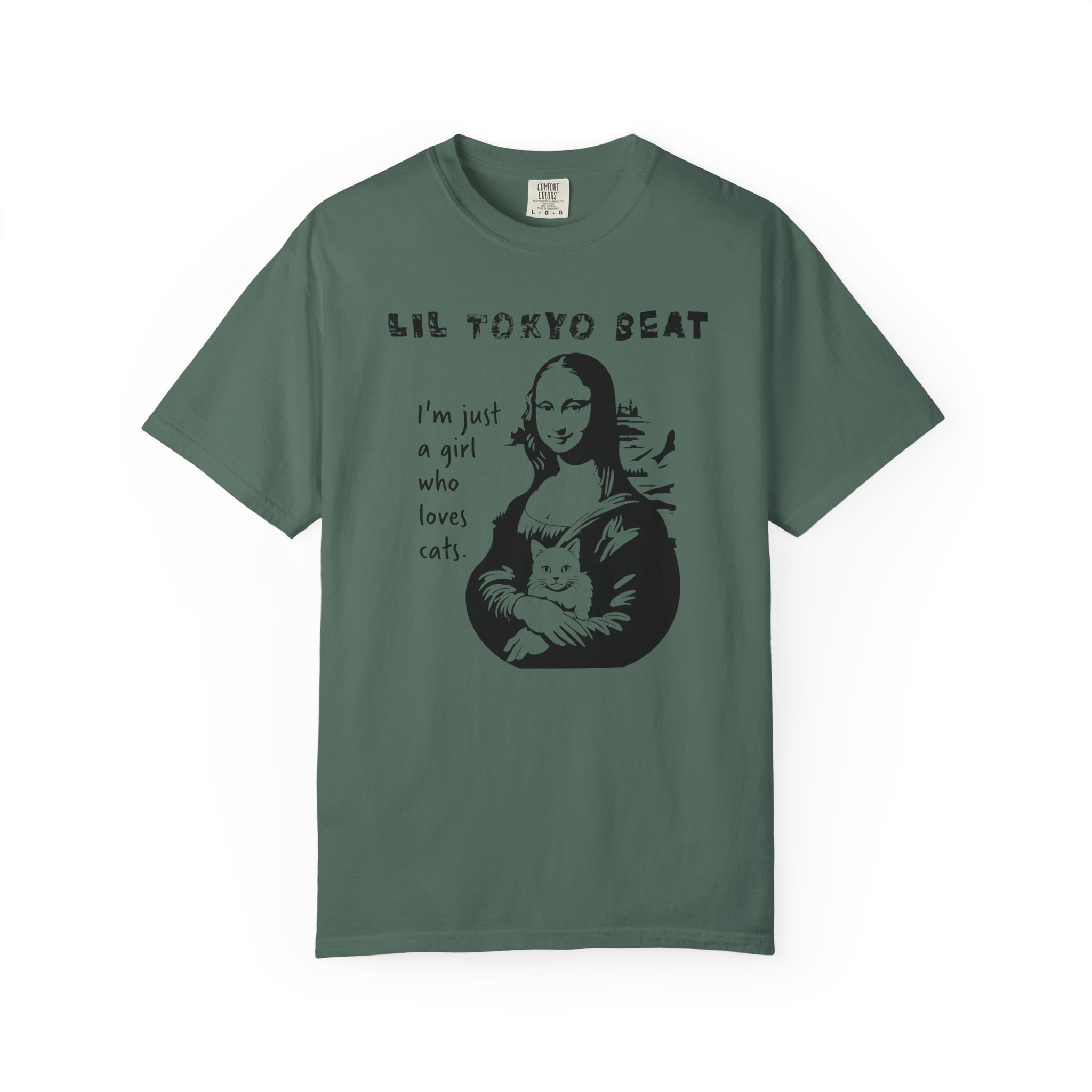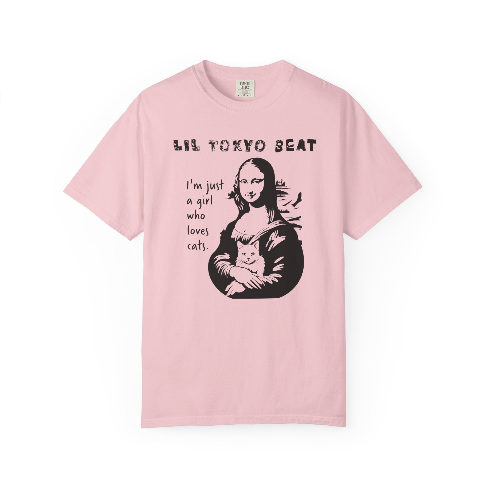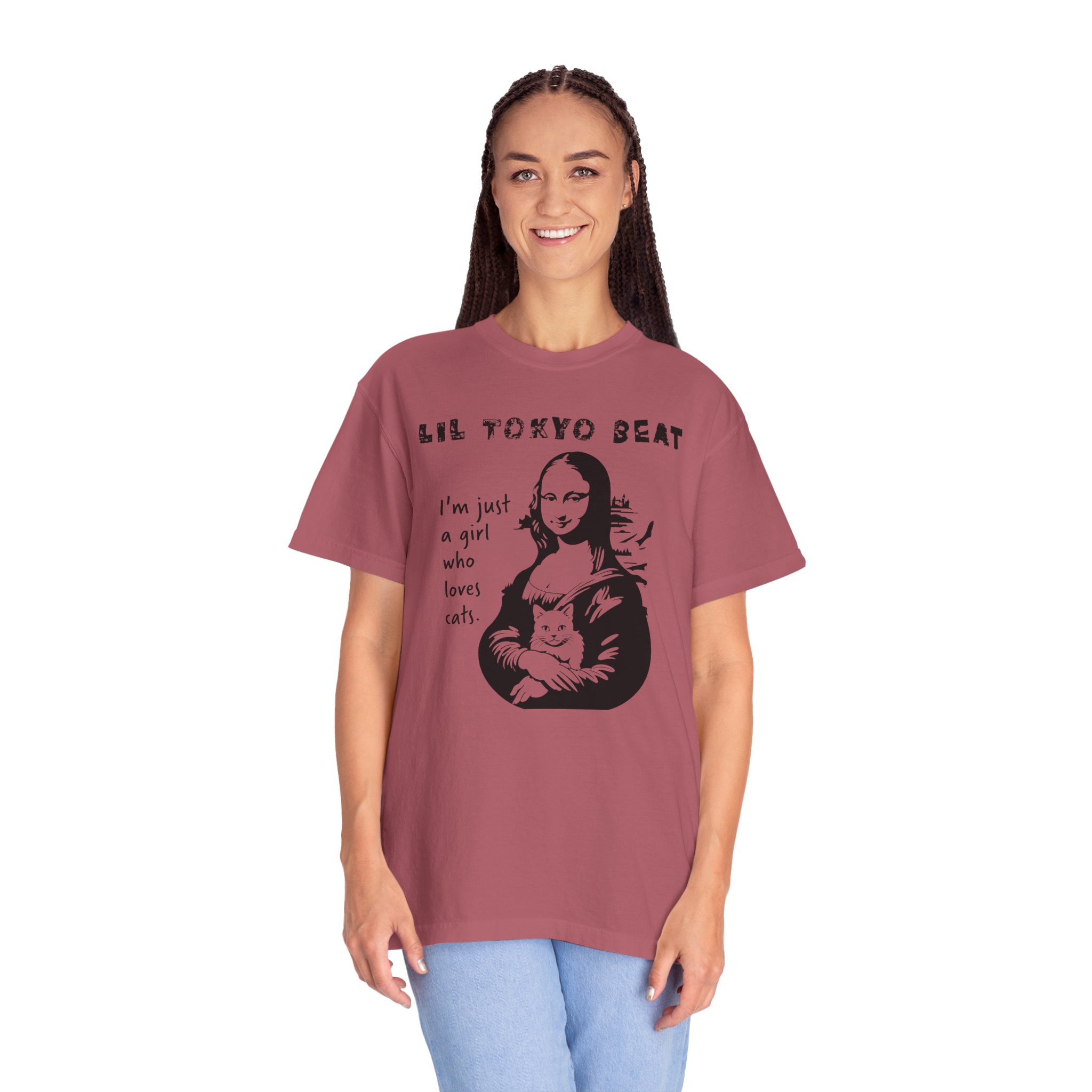 This Mona Lisa Cat Lover T-Shirt is perfect for anyone who adores cats. With the quote ‘Just a Girl Who Loves Cats,’ it exudes a fun and quirky vibe, making it a great addition to any cat lover’s wardrobe. This t-shirt is relevant for cat-themed holidays, cat lovers’ birthdays, and casual everyday wear. Product features – Available in multiple sizes from S to 4XL – Double-needle stitching for durability – Garment-dyed fabric for softness – Made with high-quality US cotton – Relaxed fit and classic crew neckline for comfort and style Care instructions – Machine wash: cold (max 30C or 90F) – Do not bleach – Tumble dry: low heat – Iron, steam or dry: low heat – Do not dryclean
