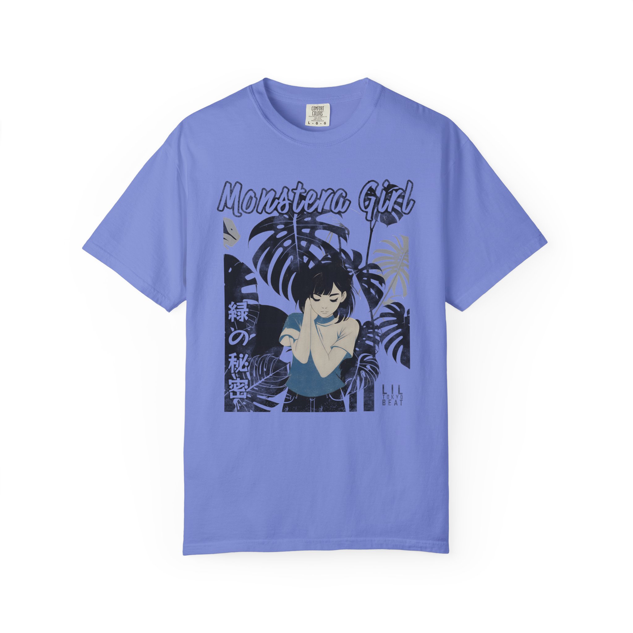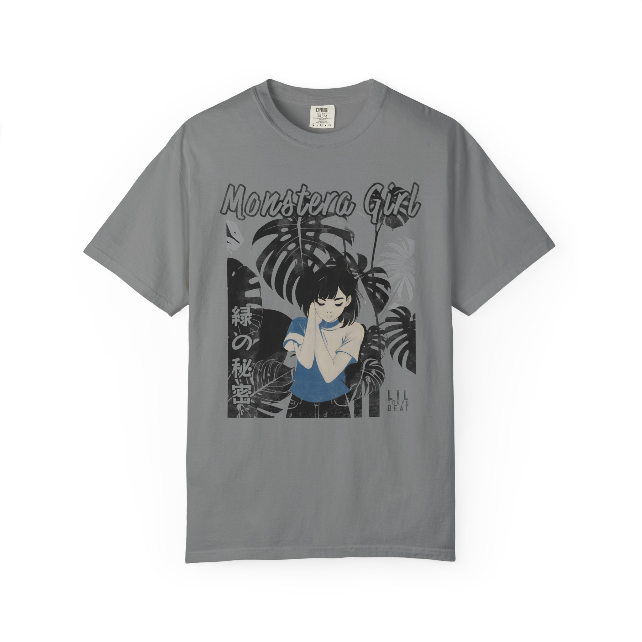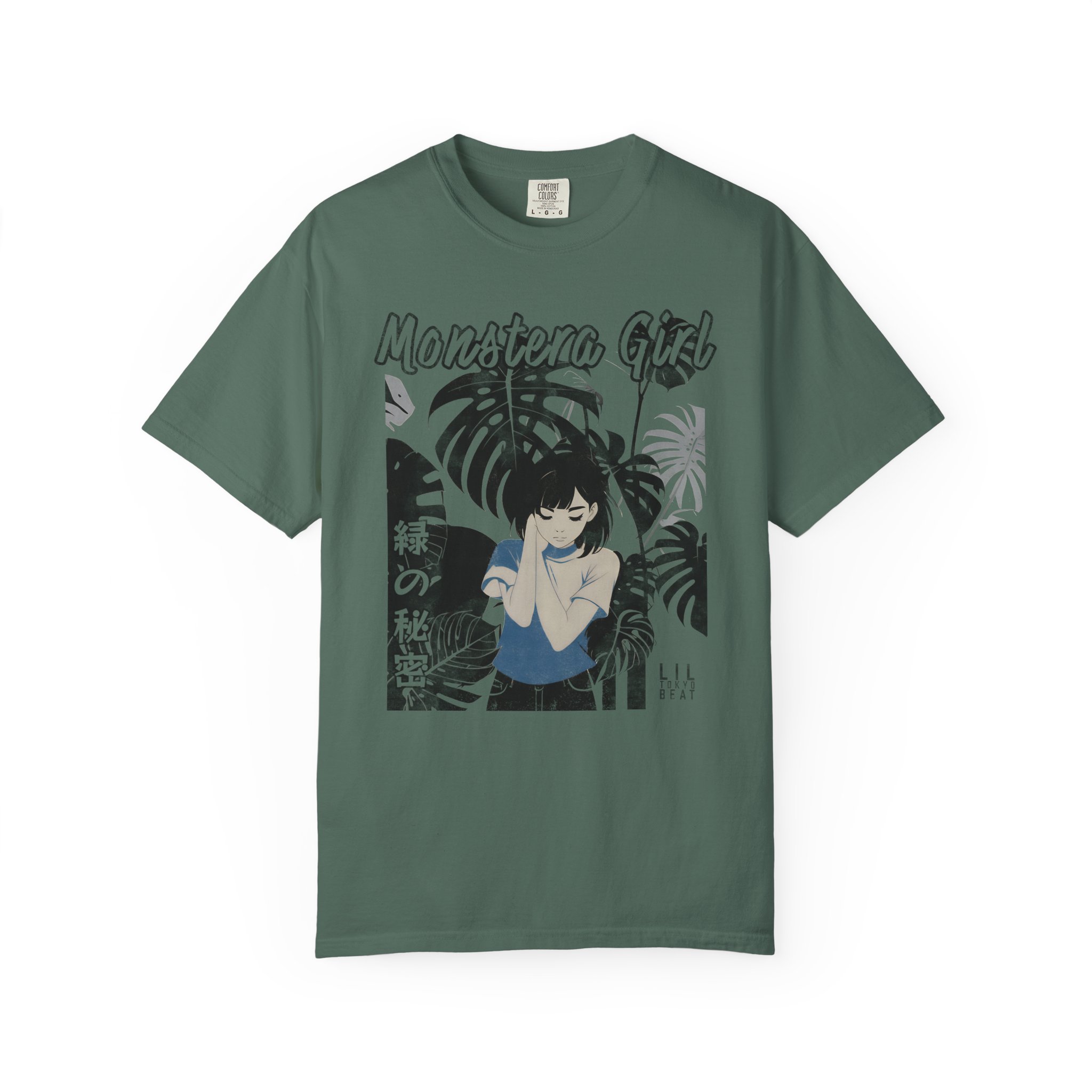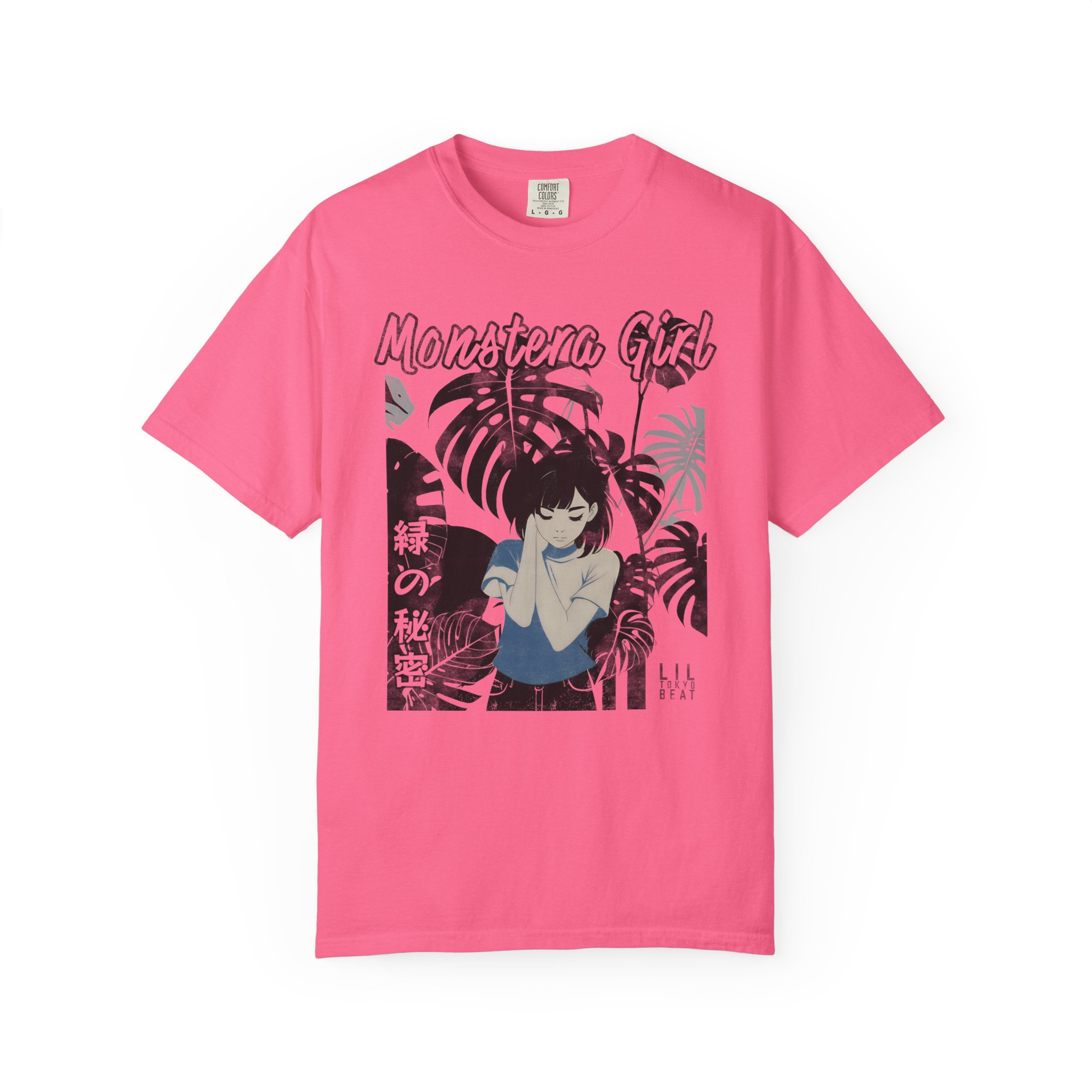 The artwork of Monstera Girl Tee has has nature and emotion combined style