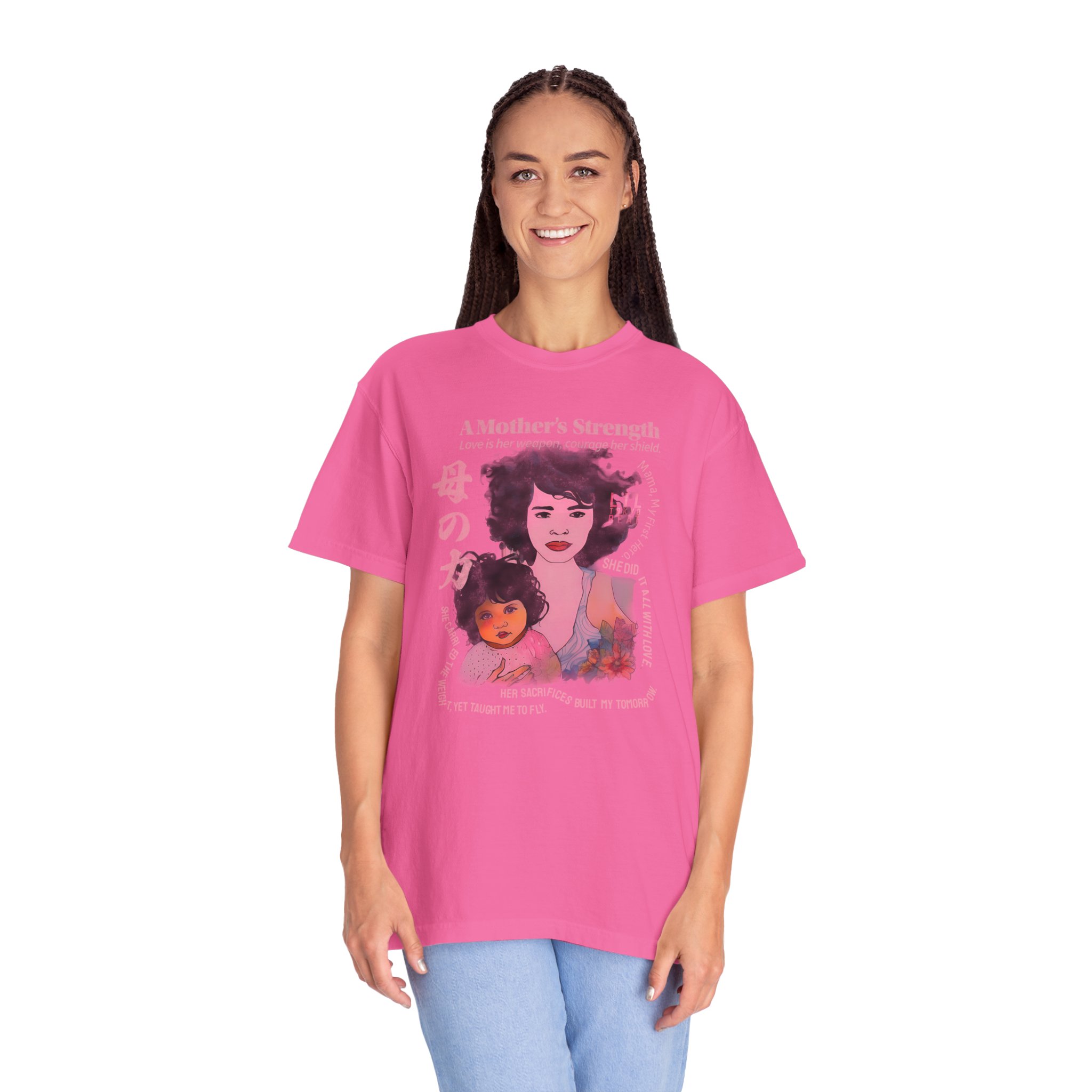 Celebrate the unshakable power of motherhood with our “A Mother’s Strength” t-shirt. Featuring the bold phrase “Love is her weapon, courage her shield,” this tee honors the resilience, sacrifice, and unconditional love that defines mothers everywhere. Whether she’s a single mom holding it all together, or a mother guiding her children with quiet strength, this shirt speaks volumes. Perfect as a Mother’s Day gift, birthday gift, or everyday wear for proud moms who inspire with their courage. Soft, durable, and fashion-forward, this empowering tee blends meaning with style—making it more than clothing, but a statement of love and strength. Product features – Available in sizes S to 4XL – Double-needle stitching for durability – Without side seams for a sleek look – Garment-dyed fabric for softness – Made of 100% ring-spun US cotton Care instructions – Machine wash: cold (max 30C or 90F) – Do not bleach – Tumble dry: low heat – Iron, steam or dry: low heat – Do not dryclean