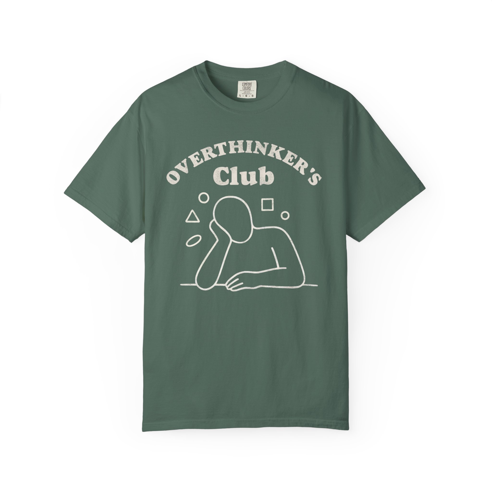 Soft, slightly lived-in tee with a quiet, witty design for anyone who spends evenings turning thoughts over. The garment-dyed fabric gives a muted, vintage look and a soft hand that invites you to roll sleeves and settle into reflection. The simple line-art “Overthinker’s Club” graphic sits across the chest—subtle, relatable, and a little ironic—so this shirt slips easily into everyday wear: coffee runs, late-night brainstorming, or slow weekend reading. Relaxed and durable, it wears like an old favorite while holding up to frequent wash-and-wear life.