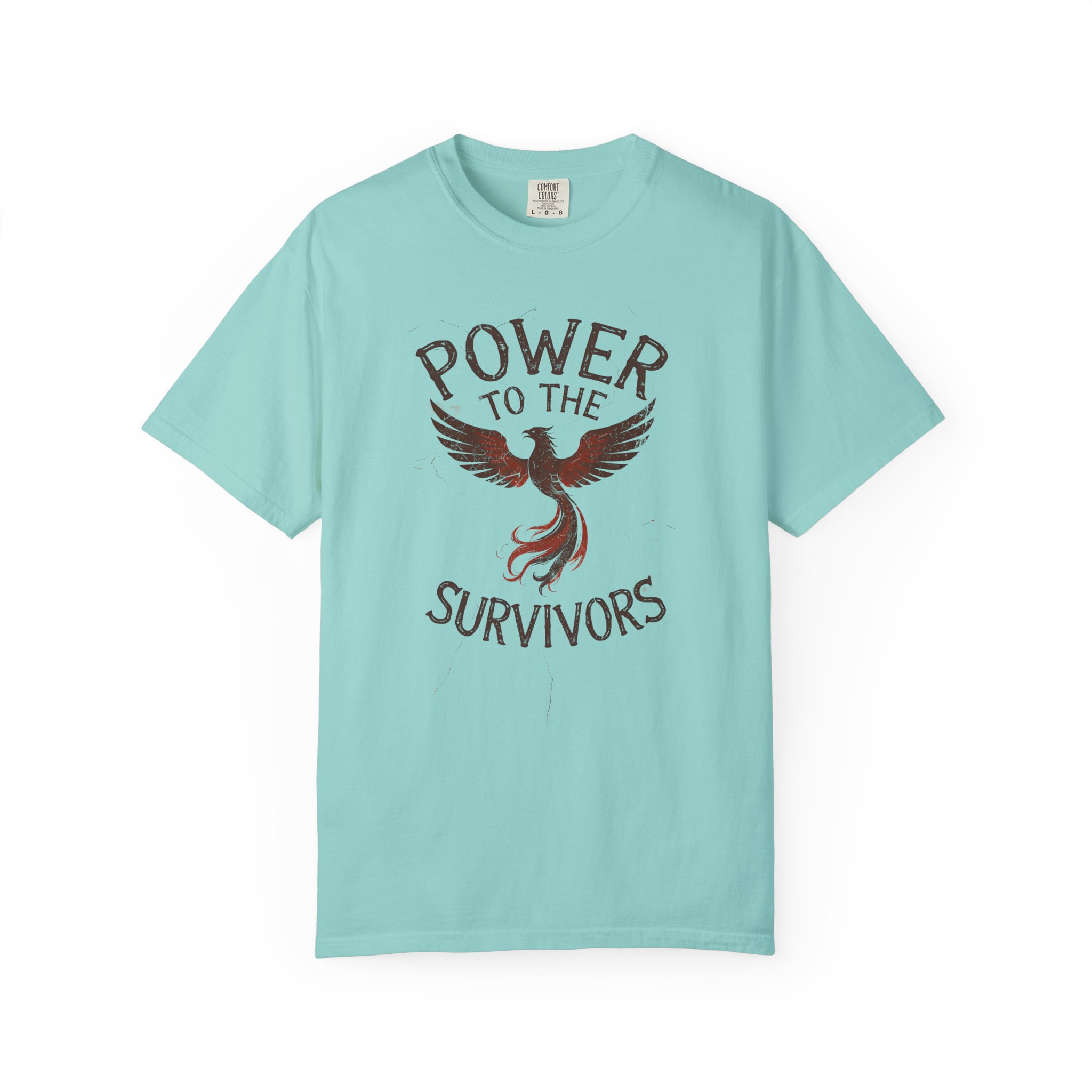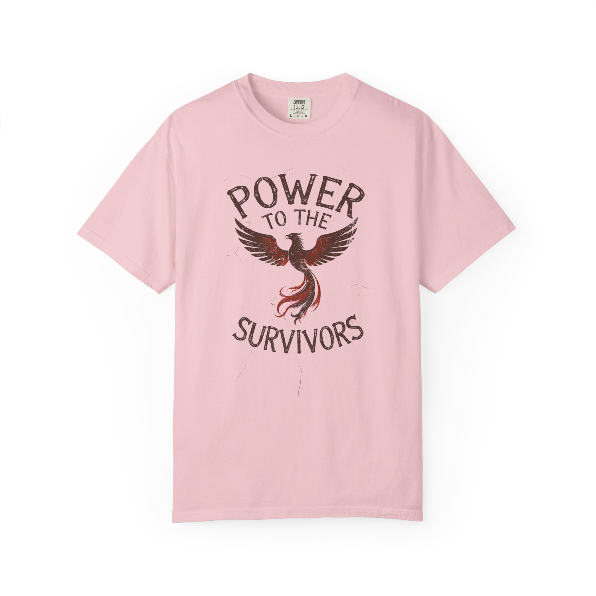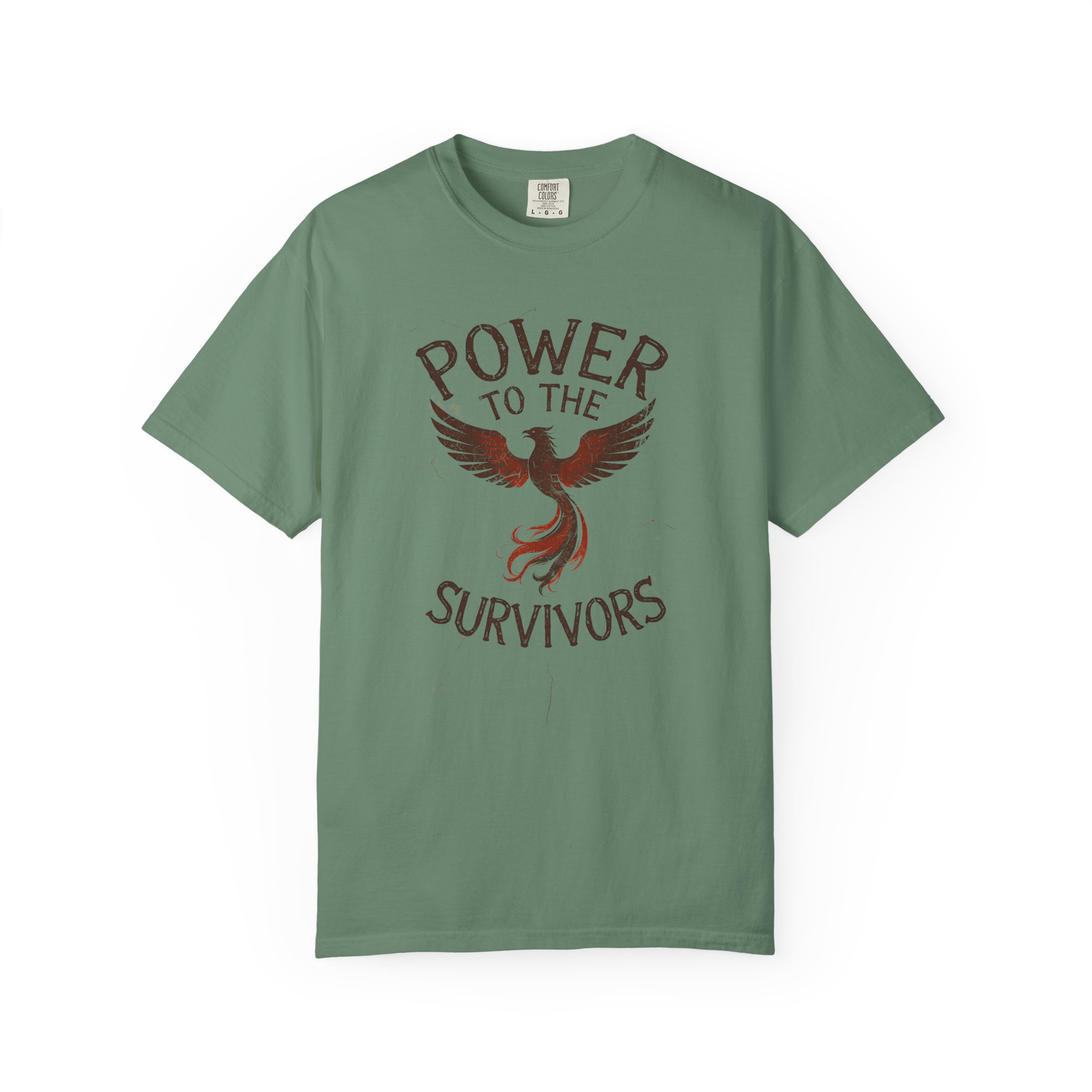 The Power to the Survivors tee by Lil Tokyo Beat captures the spirit of resilience through a bold, vintage-distressed phoenix design in deep crimson and earth tones. Wings spread wide, rising from ashes, this artwork speaks to fighters, overcomers, and anyone rewriting their story.