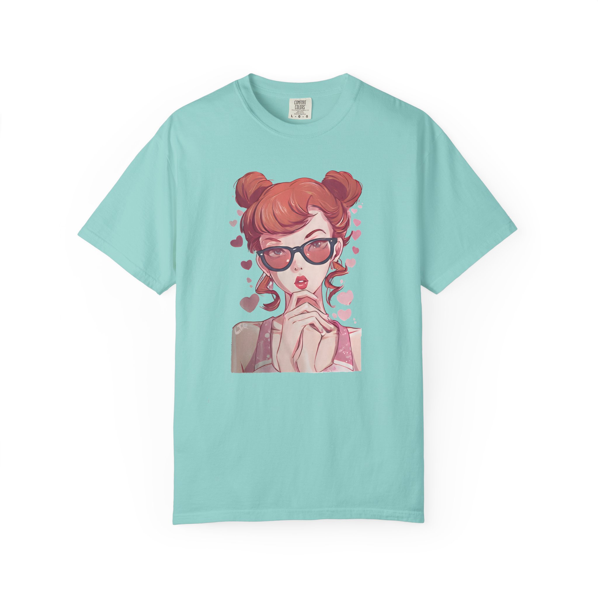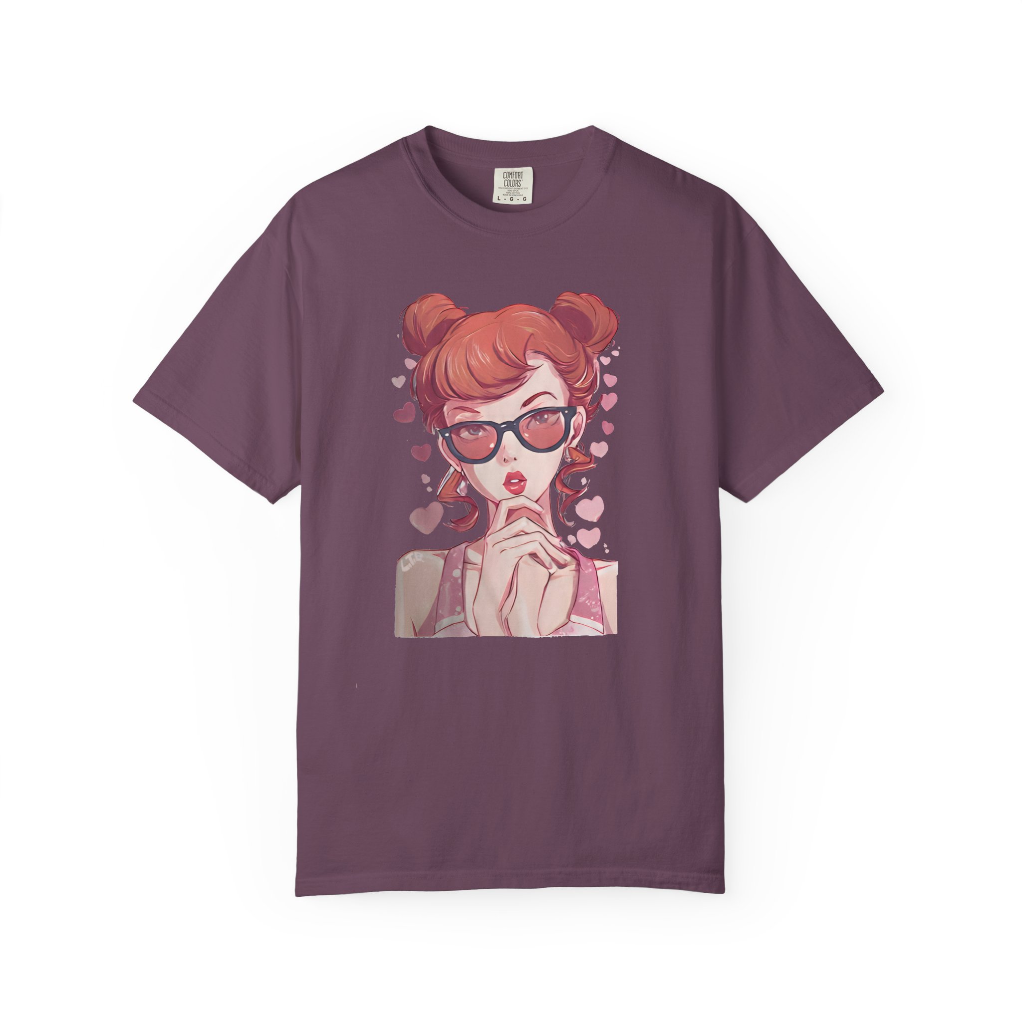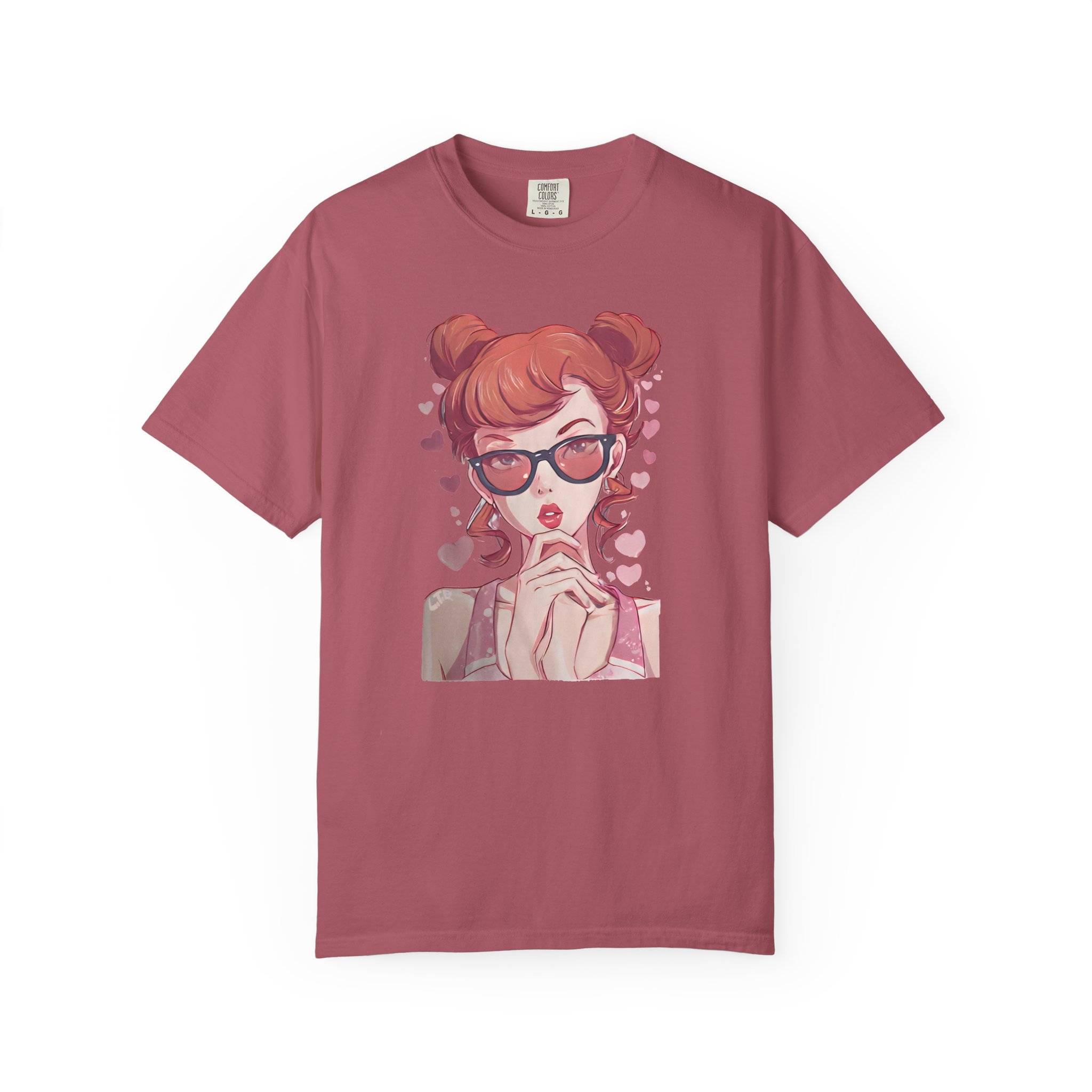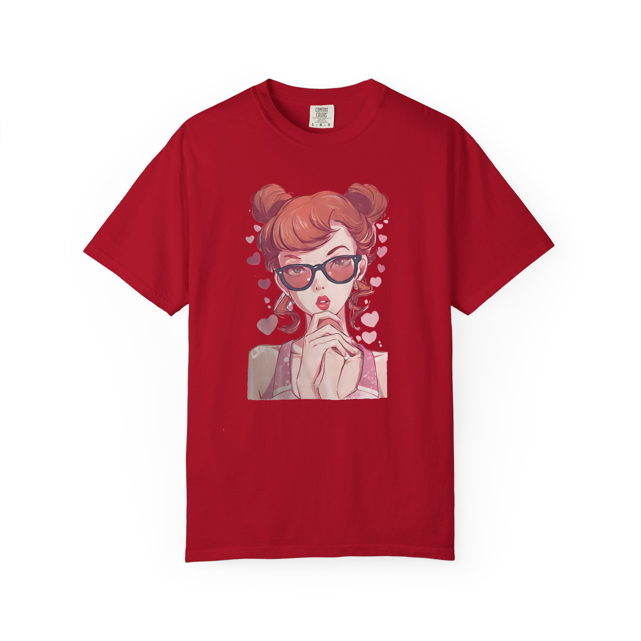 Be the first to review “Red-Haired Anime Girl with Sunglasses | Kawaii Heart Graphic T-Shirt”