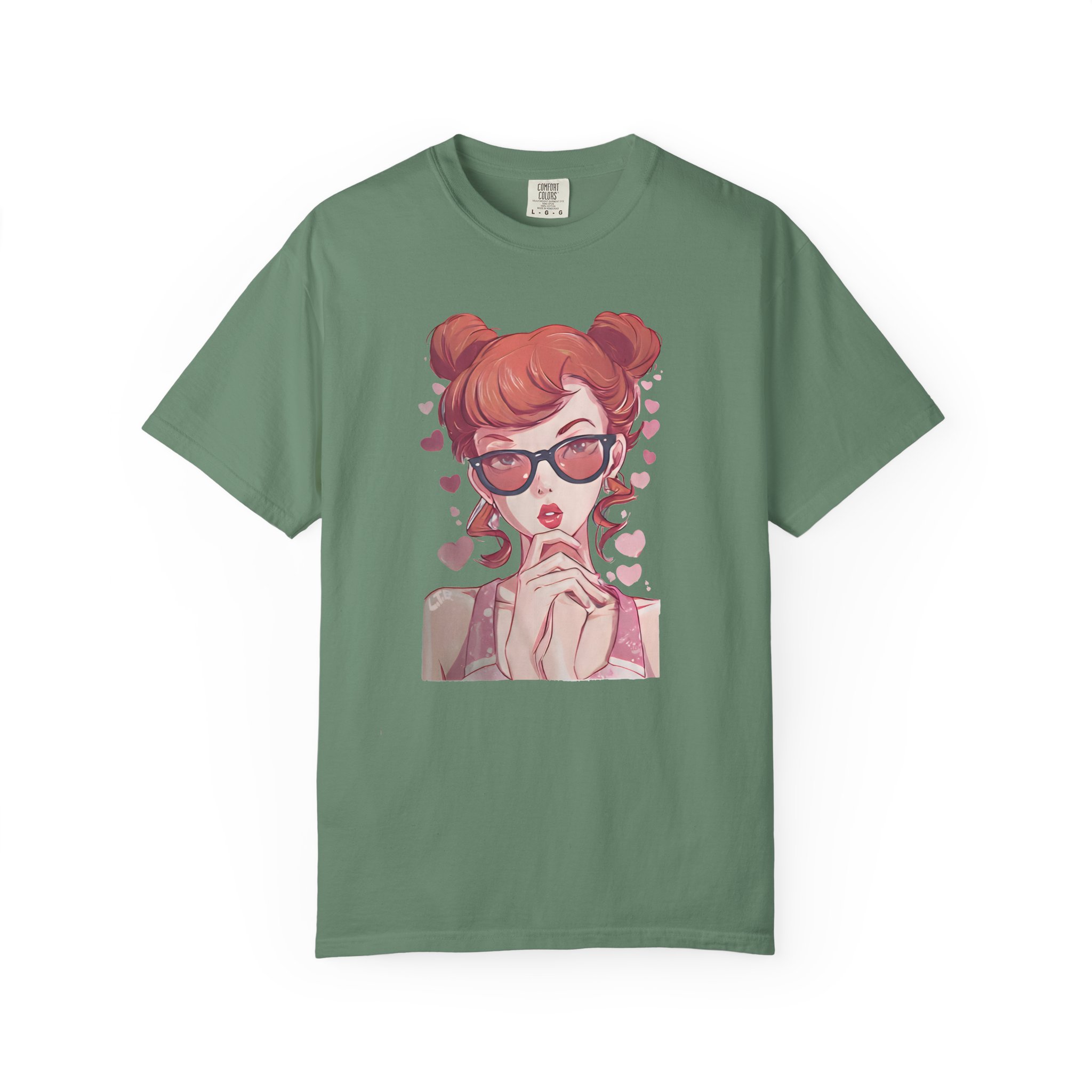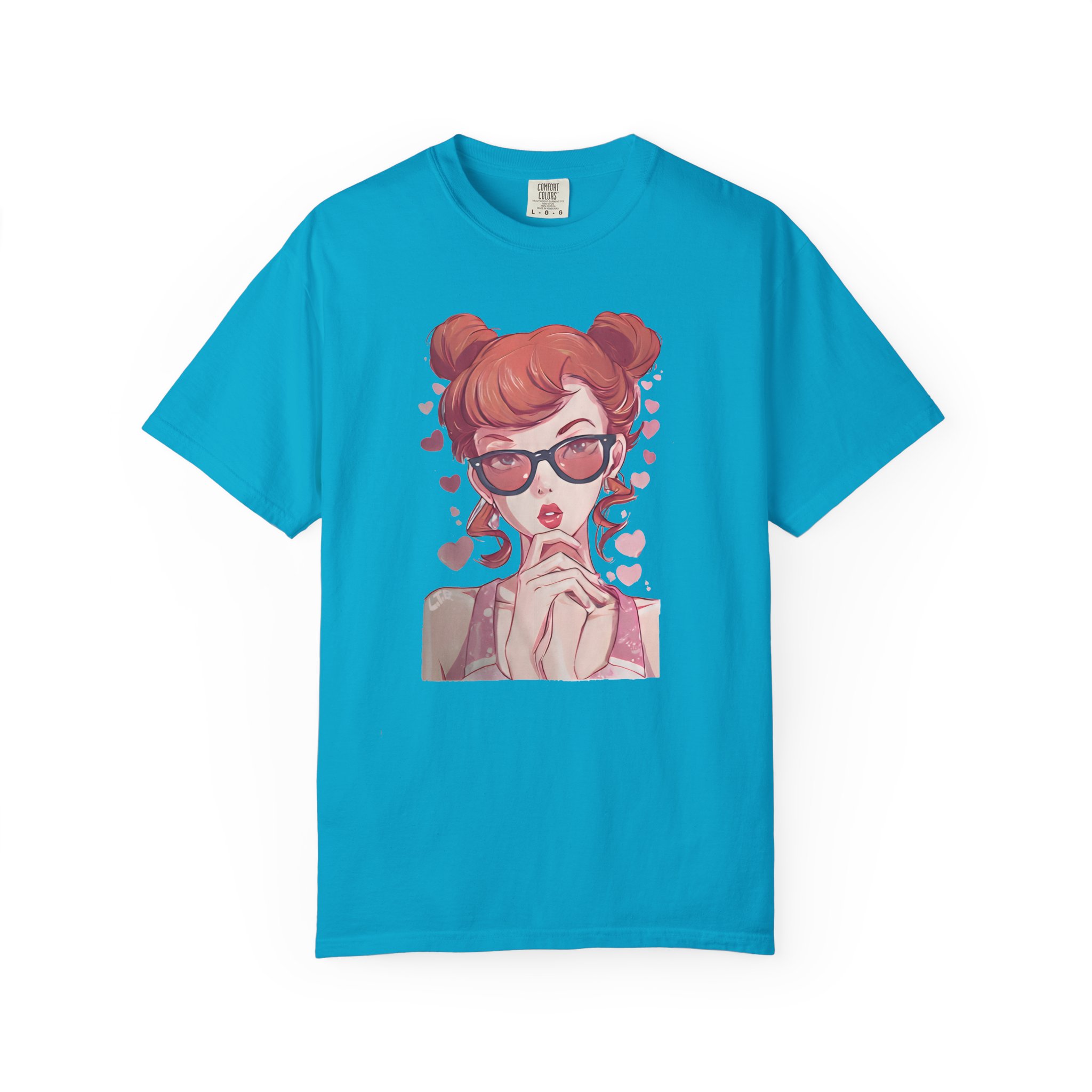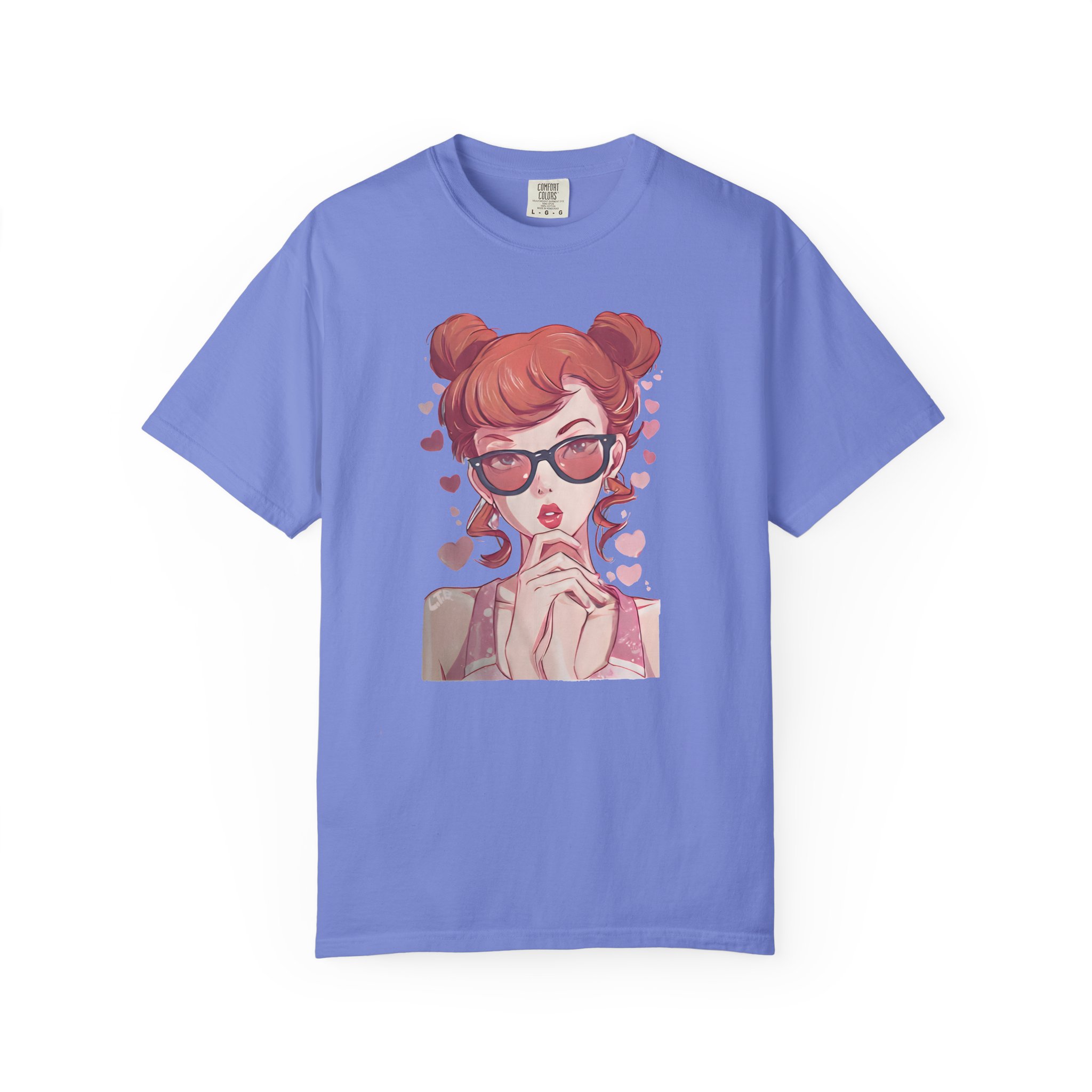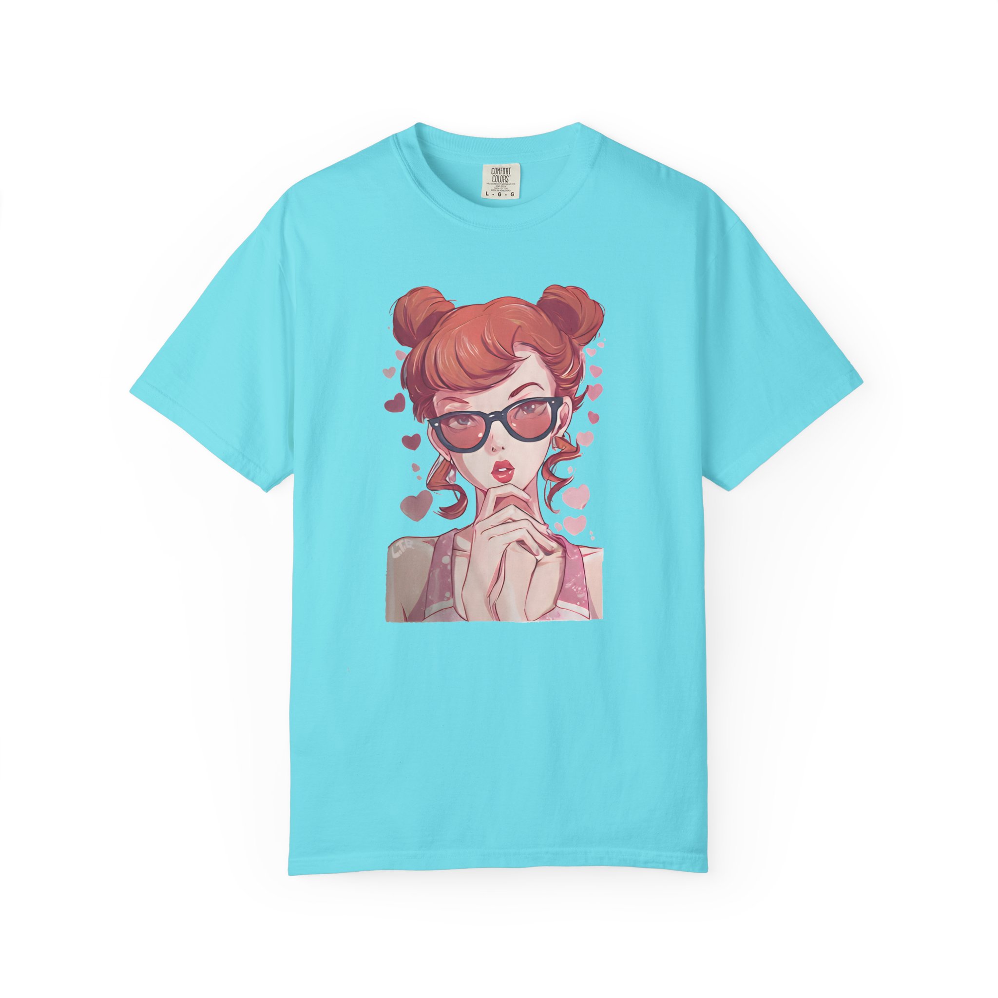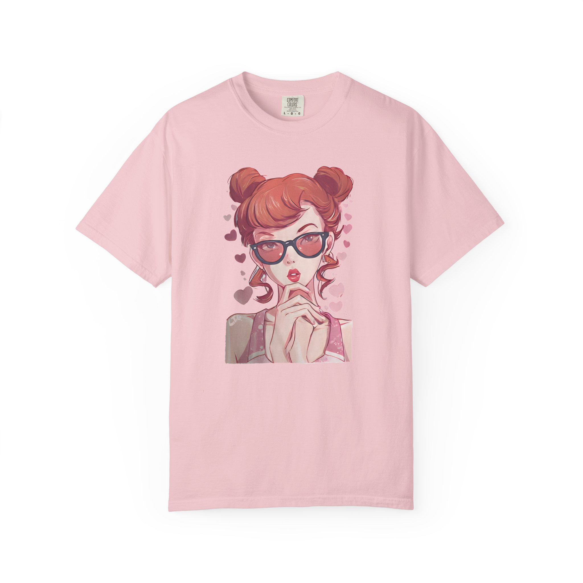 Be the first to review “Red-Haired Anime Girl with Sunglasses | Kawaii Heart Graphic T-Shirt”