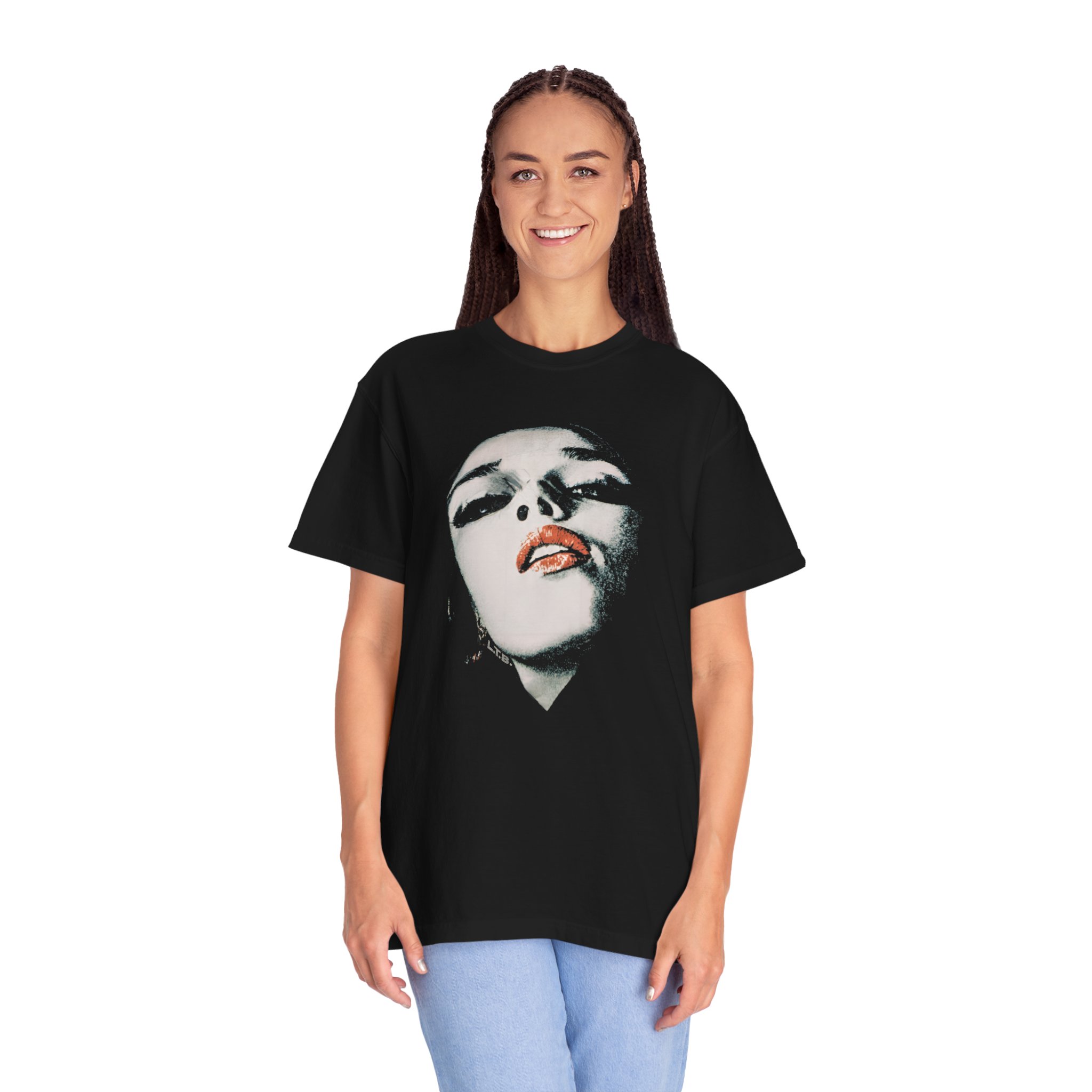 Make a statement with this bold glam portrait t-shirt featuring a dramatic high-contrast feminine face and striking red lips. Designed with a fashion-editorial feel, this artwork blends fine-art portraiture with modern streetwear attitude. The intense upward angle, grainy texture, and minimalist composition create a powerful, cinematic mood that feels both vintage and contemporary. Perfect for lovers of fashion art, edgy portrait graphics, and statement tees, this Lil Tokyo Beat original delivers wearable confidence and artistic edge. This piece captures the K.A.T. spirit — Kool. Artful. Timeless. A new voice in tee culture — bringing gallery-level attitude into everyday style.