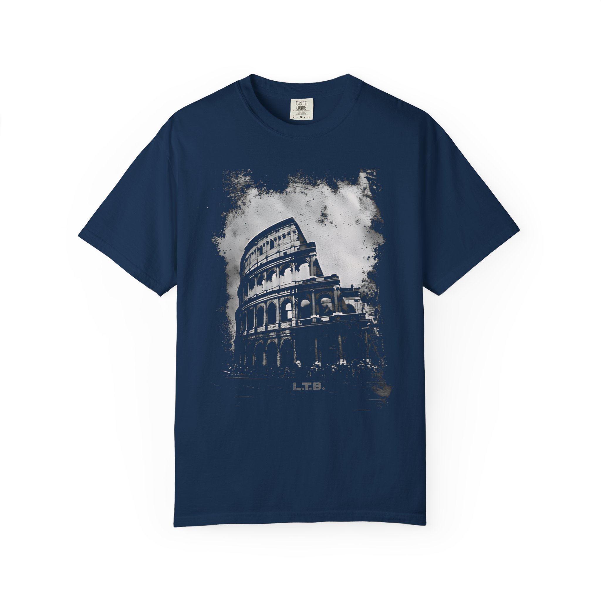 Be the first to review “Roman Colosseum Grunge Tee — Timeless Black & White Street Art Shirt”