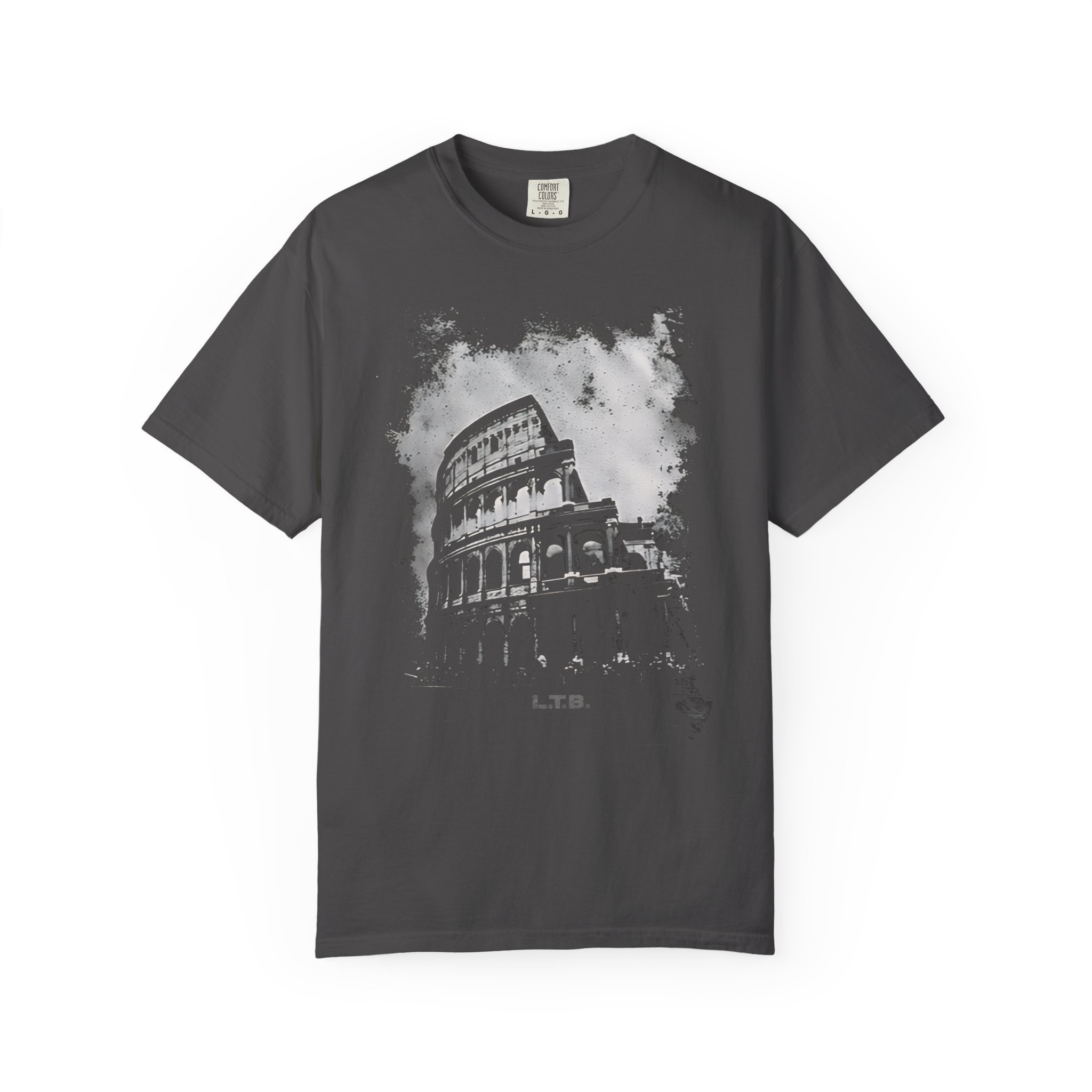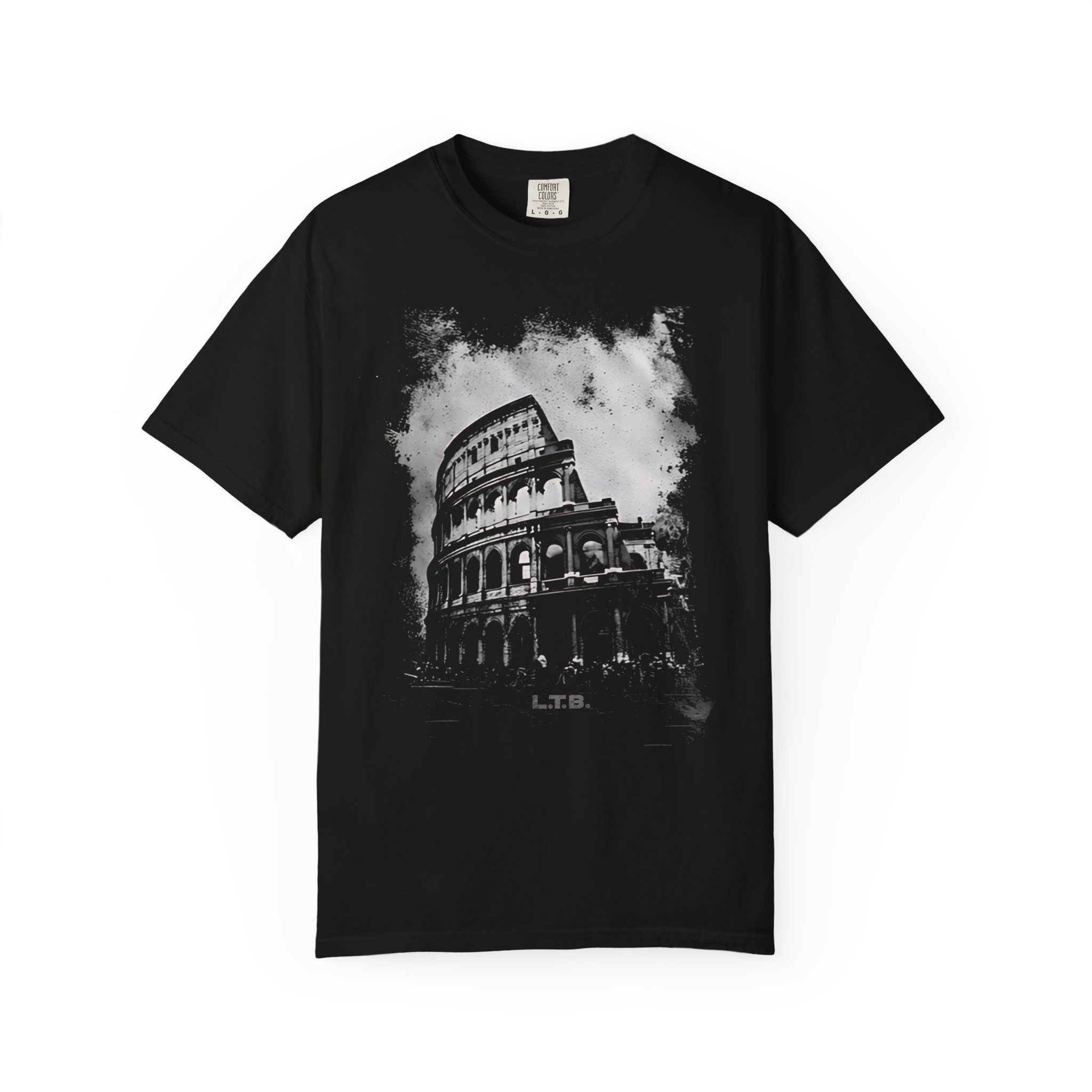 Roman Colosseum Grunge Tee — Timeless Black & White Street Art Shirt
